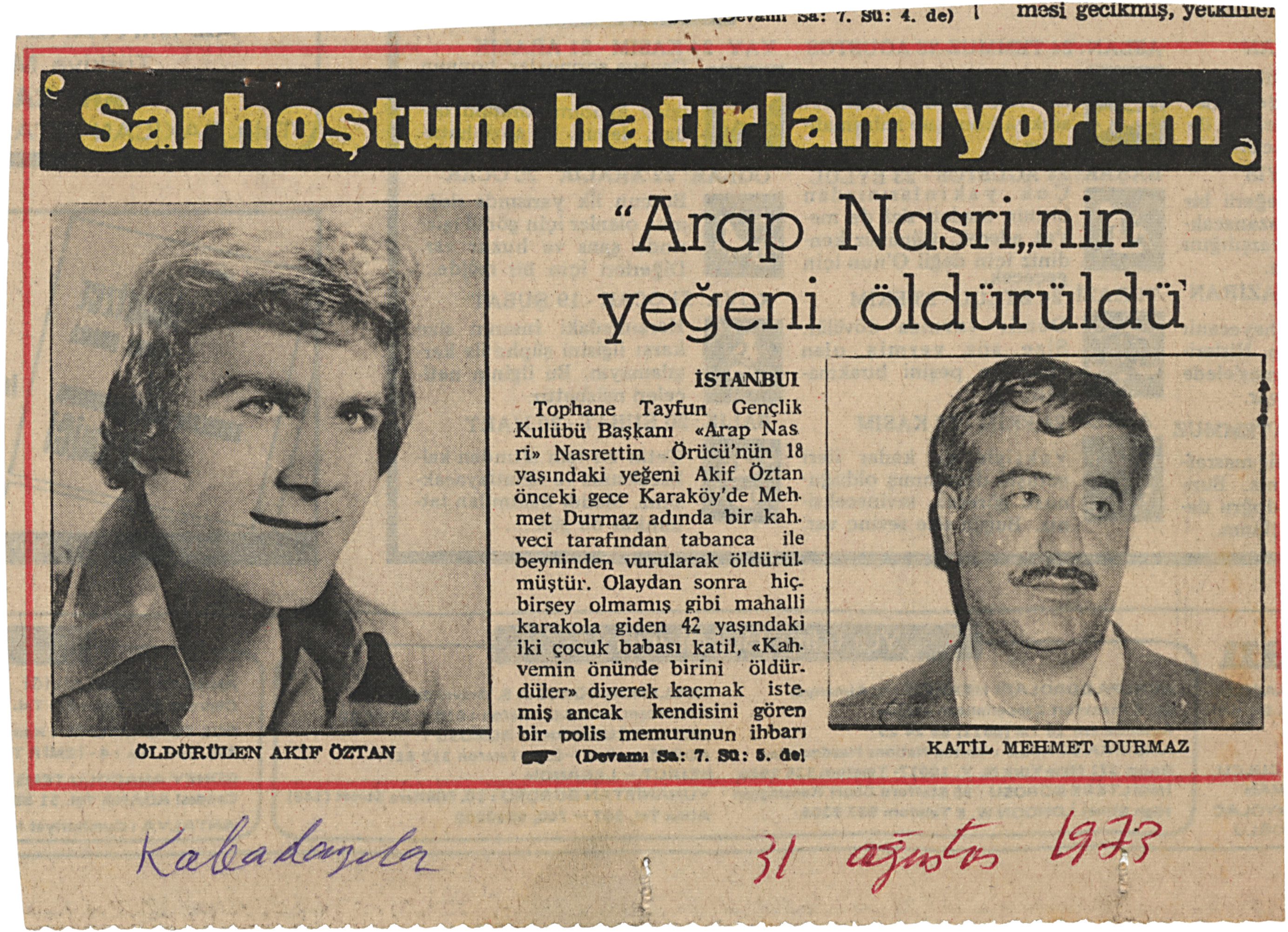 "Arap Nasri'nin yeğeni öldürüldü" başlıklı kupür