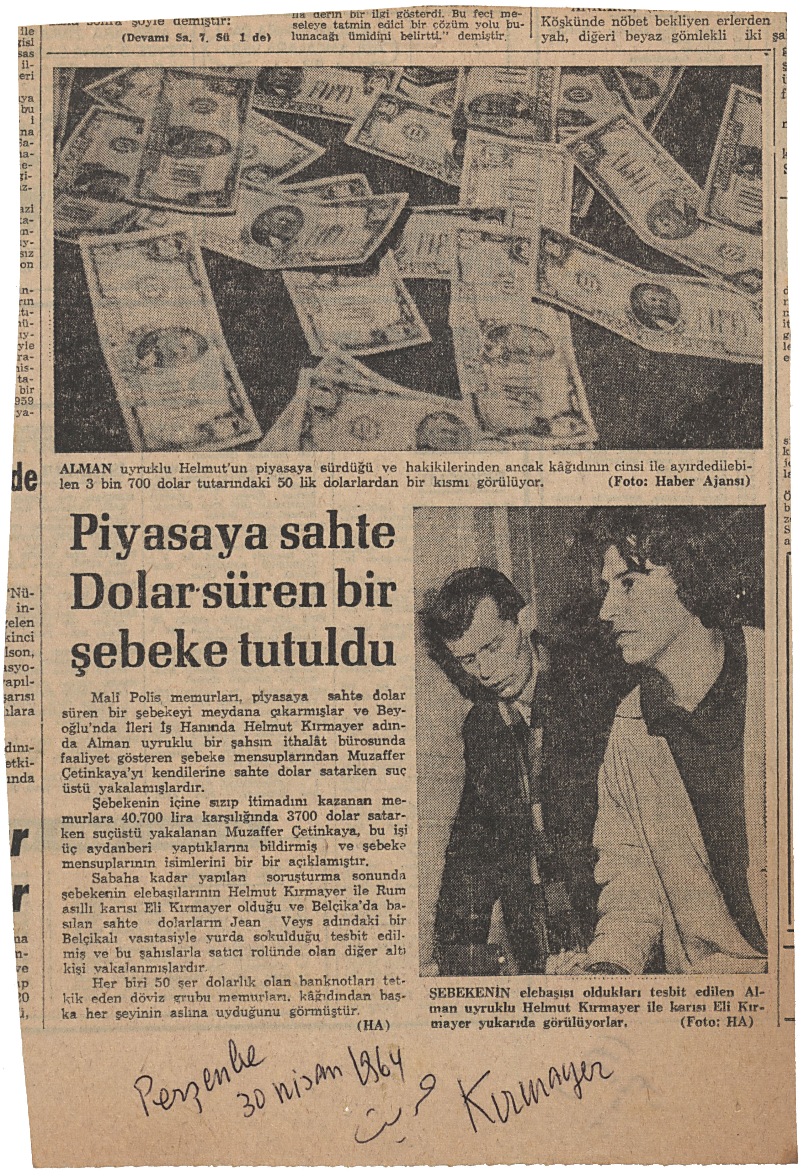 "Piyasaya sahte Dolar süren bir şebeke tutuldu" başlıklı kupür