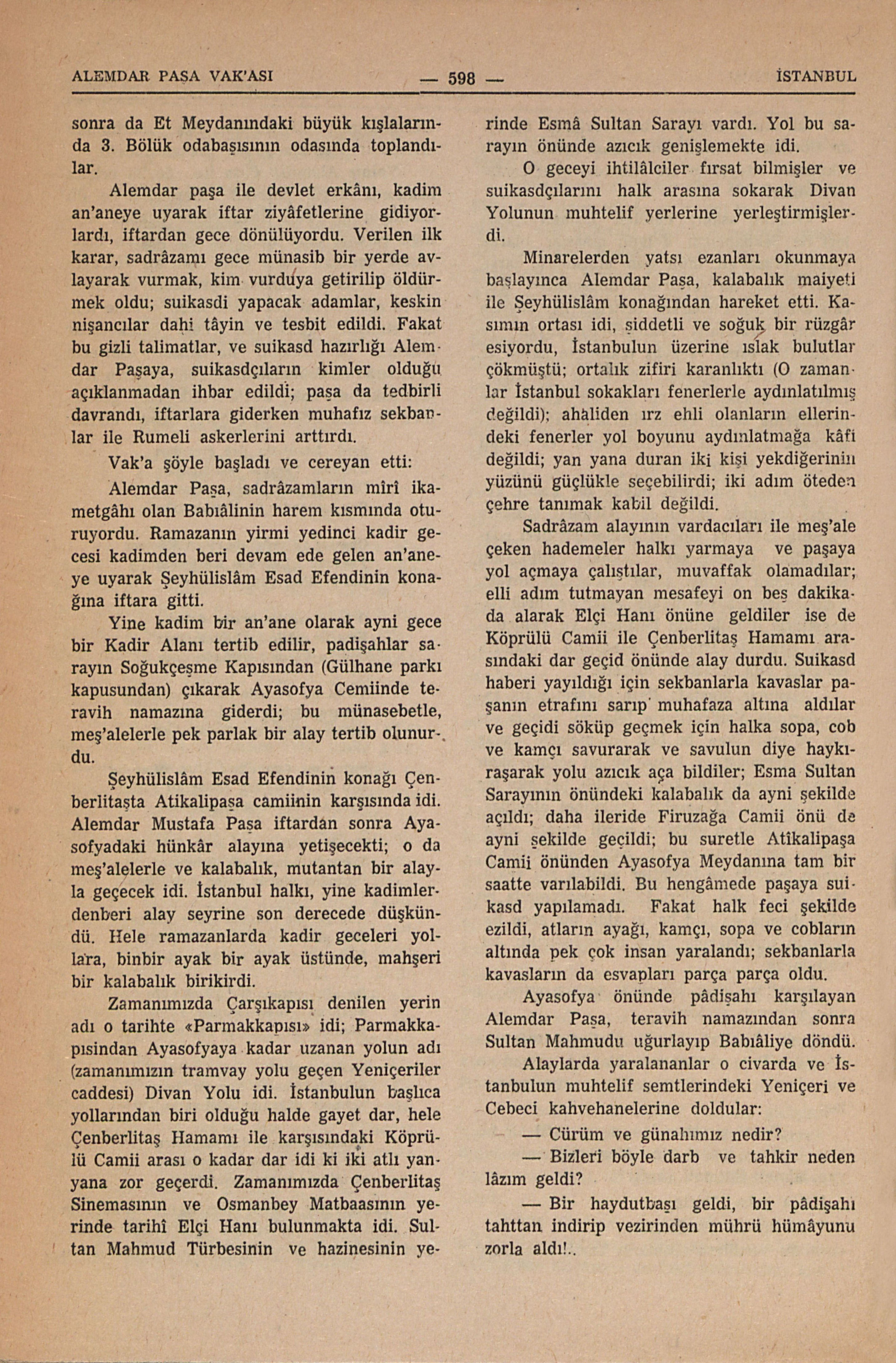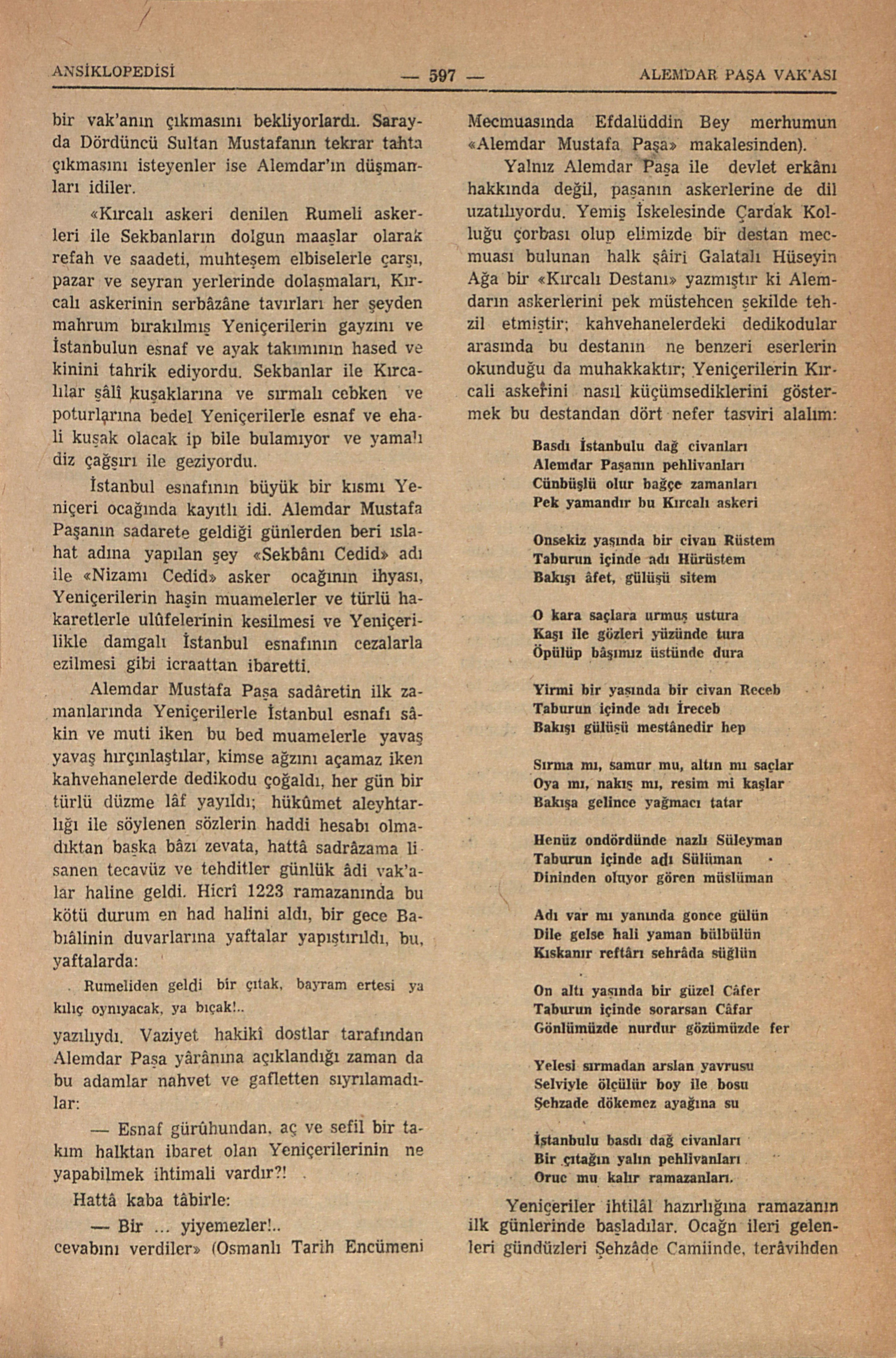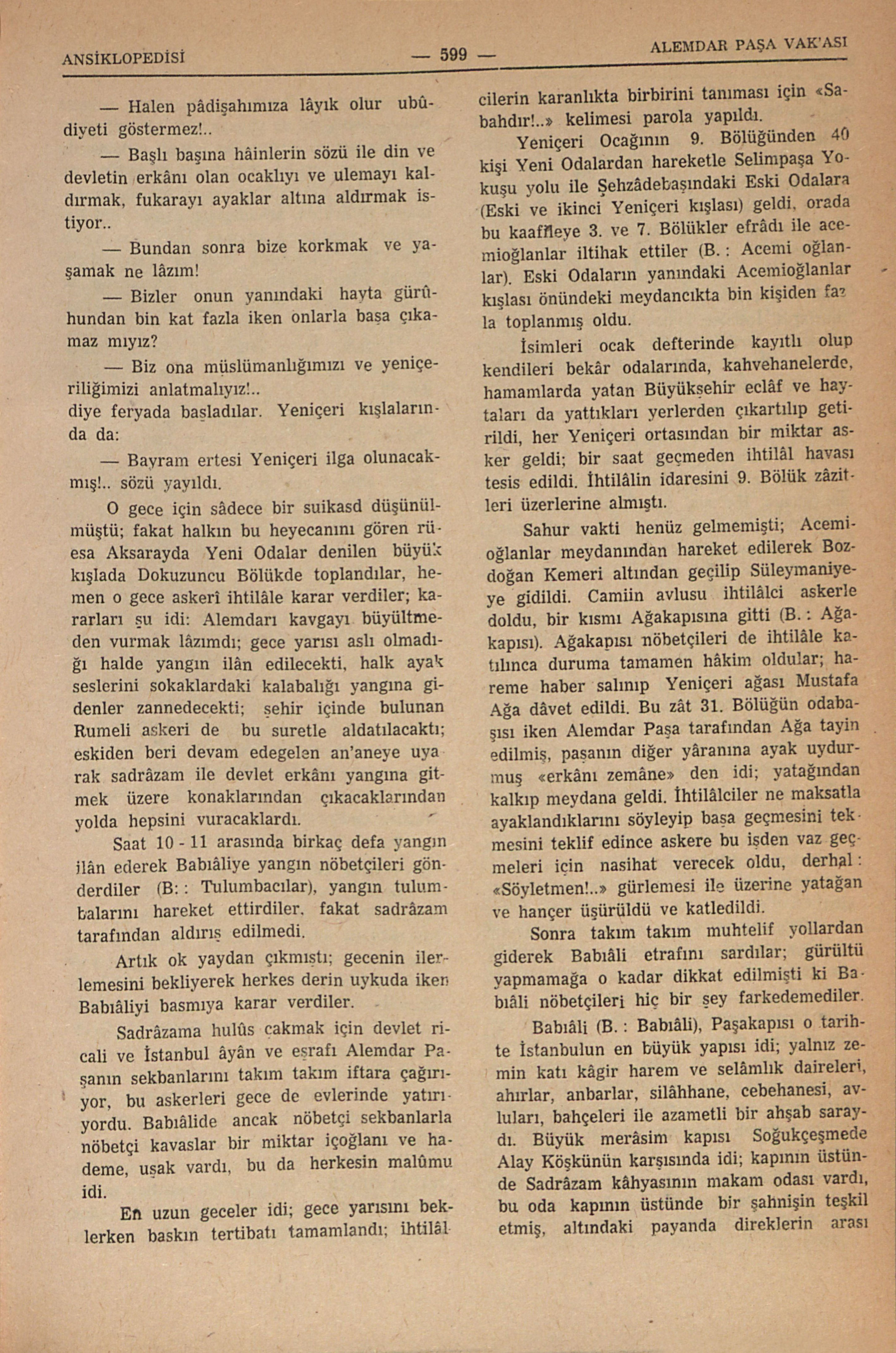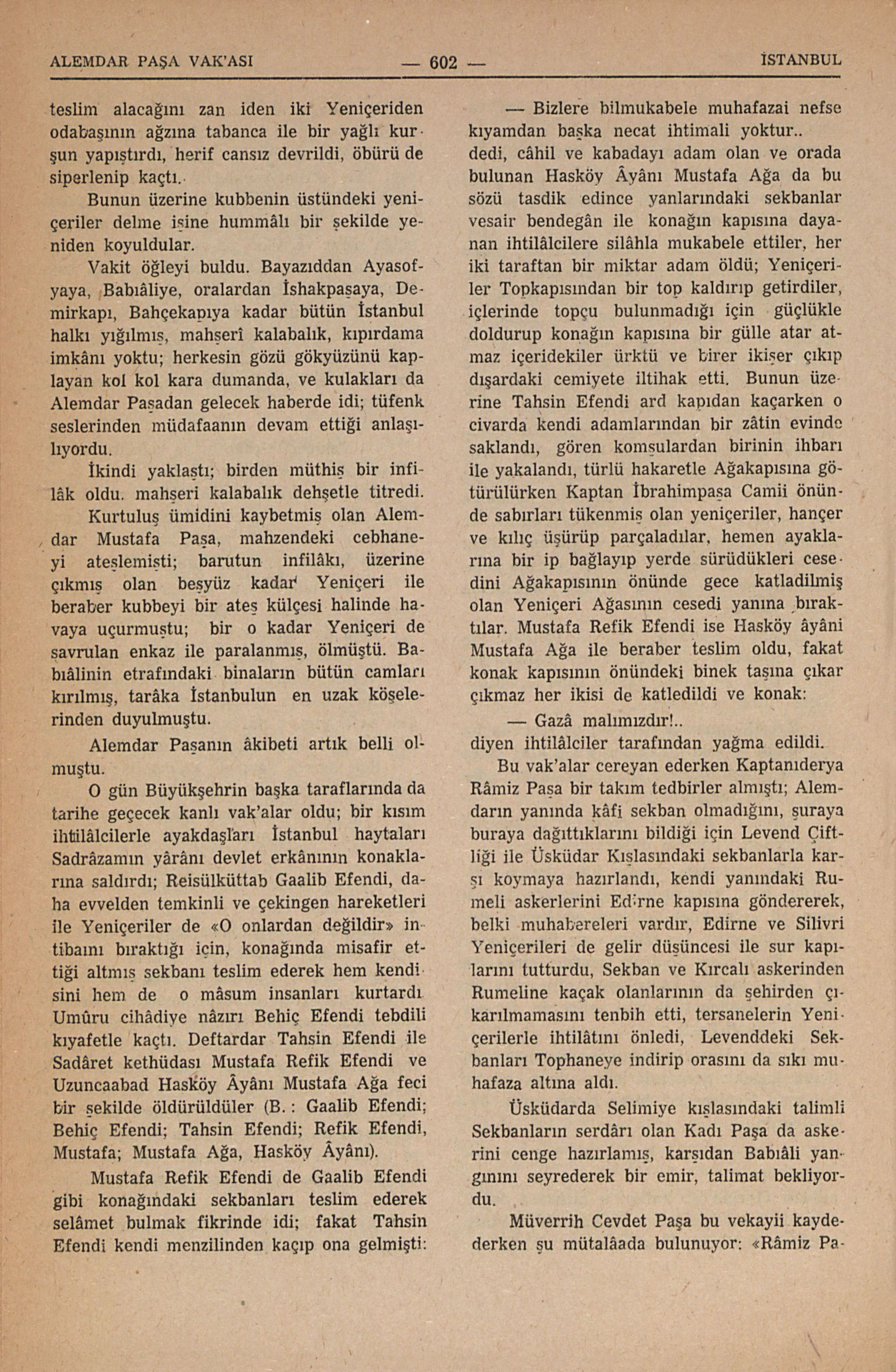 cevabını verdiler» (Osmanlı Tarih Encümeni Mecmuasında Efdalüddin Bey merhumun «Alemdar Mustafa Paşa» makalesinden).