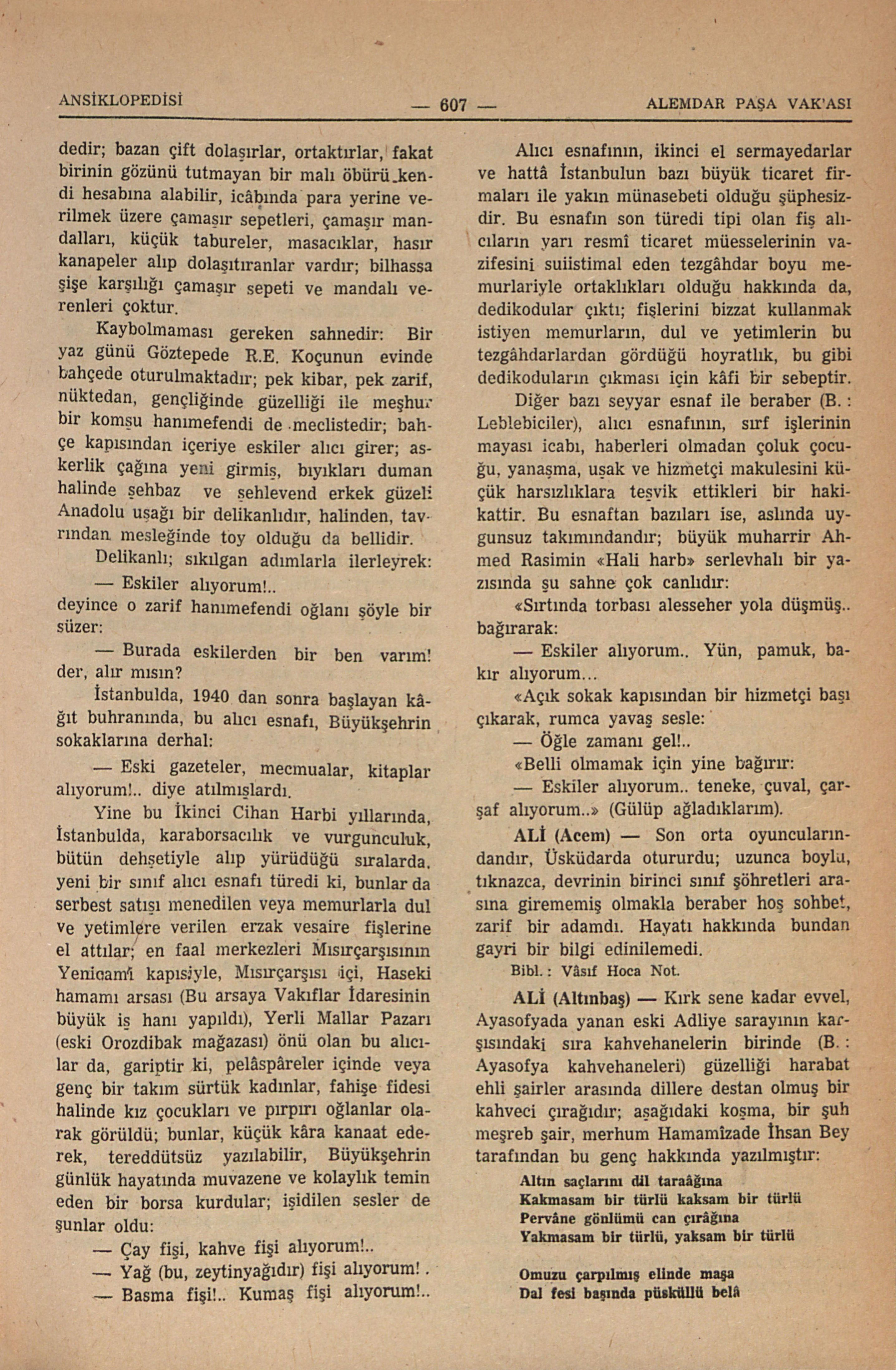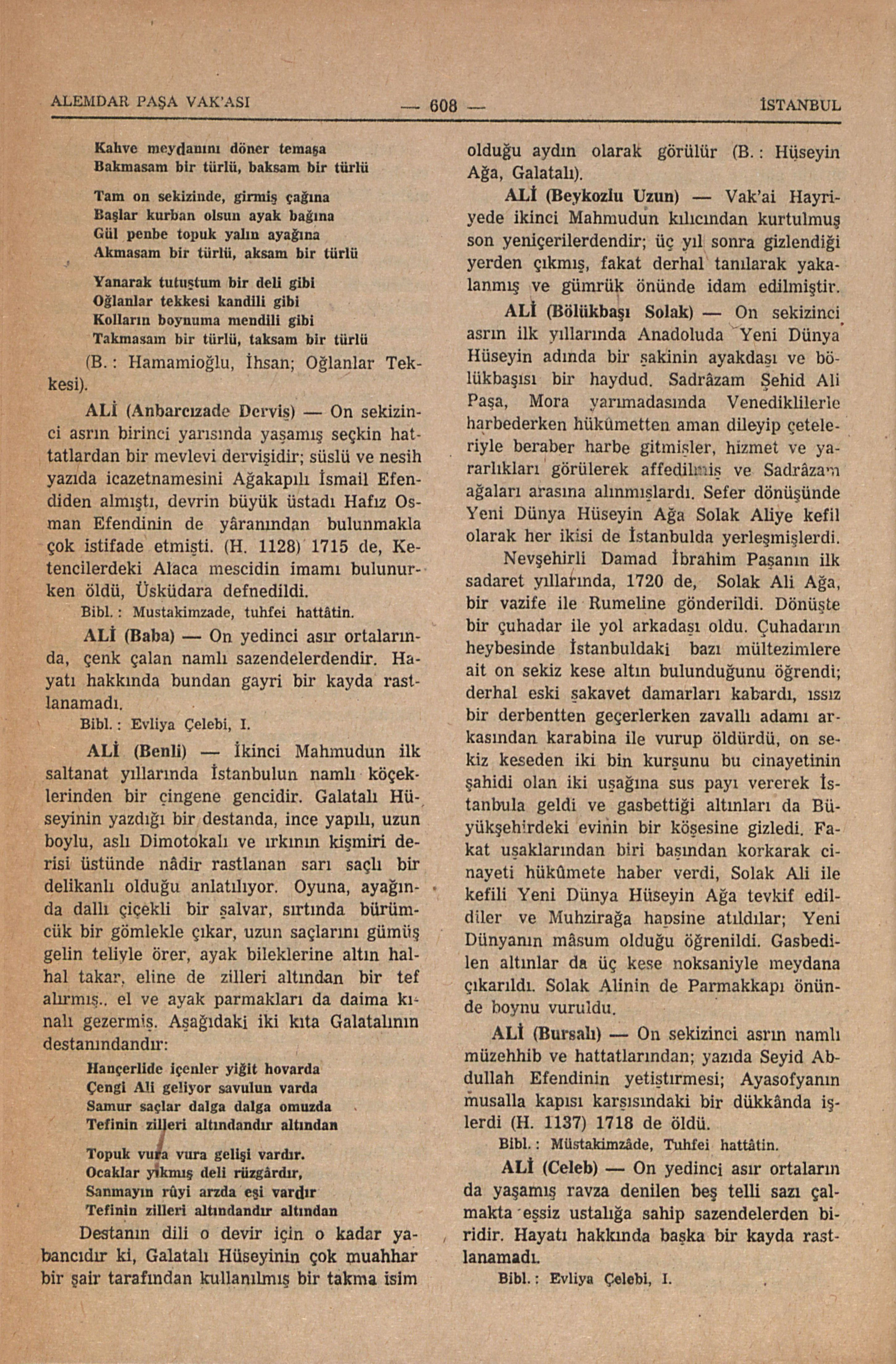 Kırk sene kadar evvel, Ayasofyada yanan eski Adliye sarayının karşısındaki yanan eski Adliye sarayının karşısındaki sıra kahvehanelerin birinde (B. : Ayasofya kahvehaneleri) güzelliği harabat ehli şairler arasında dillere destan olmuş bir kahveci çırağıdır; aşağıdaki koşma, bir şuh meşreb şair, merhum Hamamîzade İhsan Bey tarafından bu genç hakkında yazılmıştır: