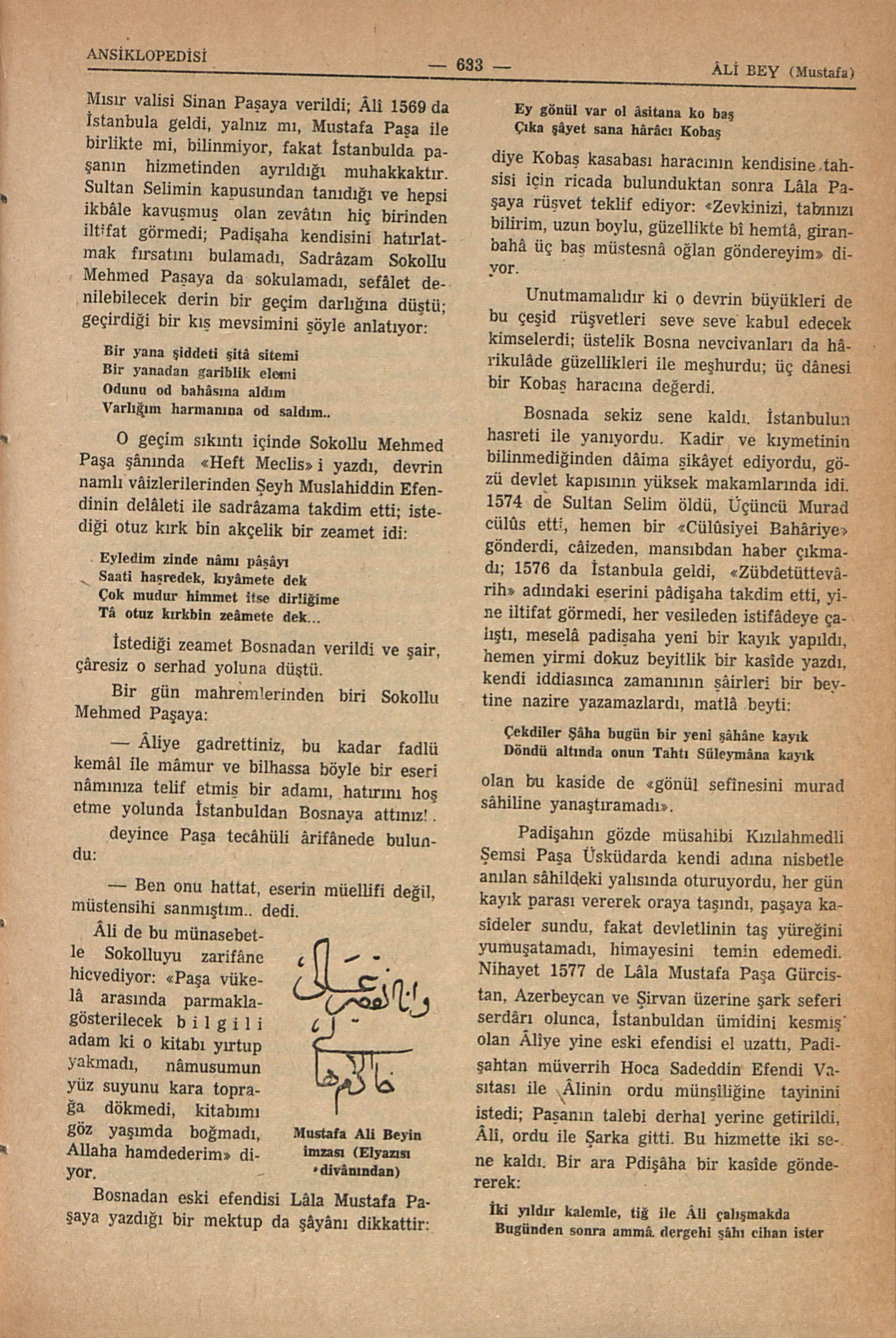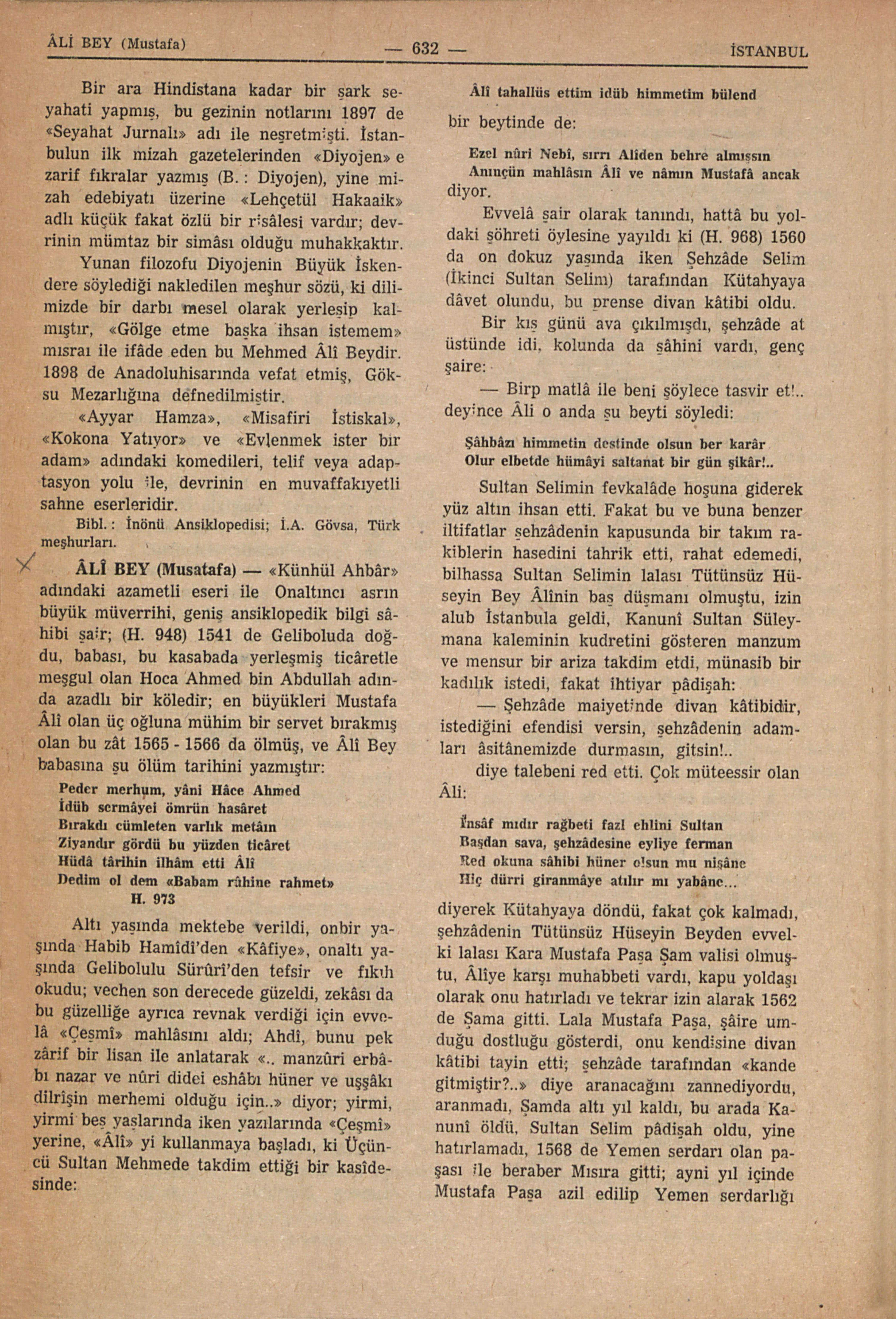 Anınçün mahlâsın Âlî ve nâmın Mustafâ ancak