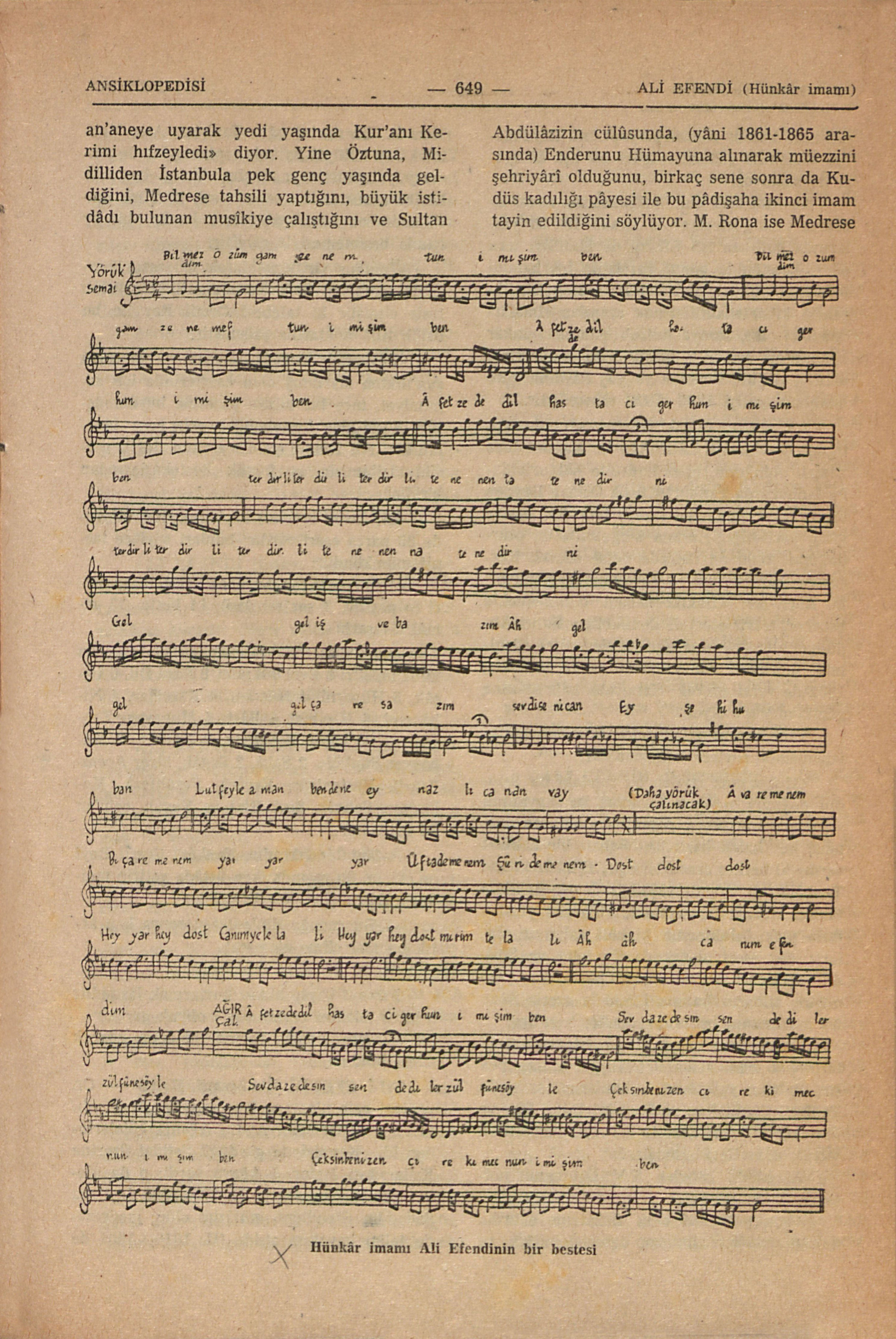 ALİ EFENDİ (Hünkâr imamı Tanbûri)