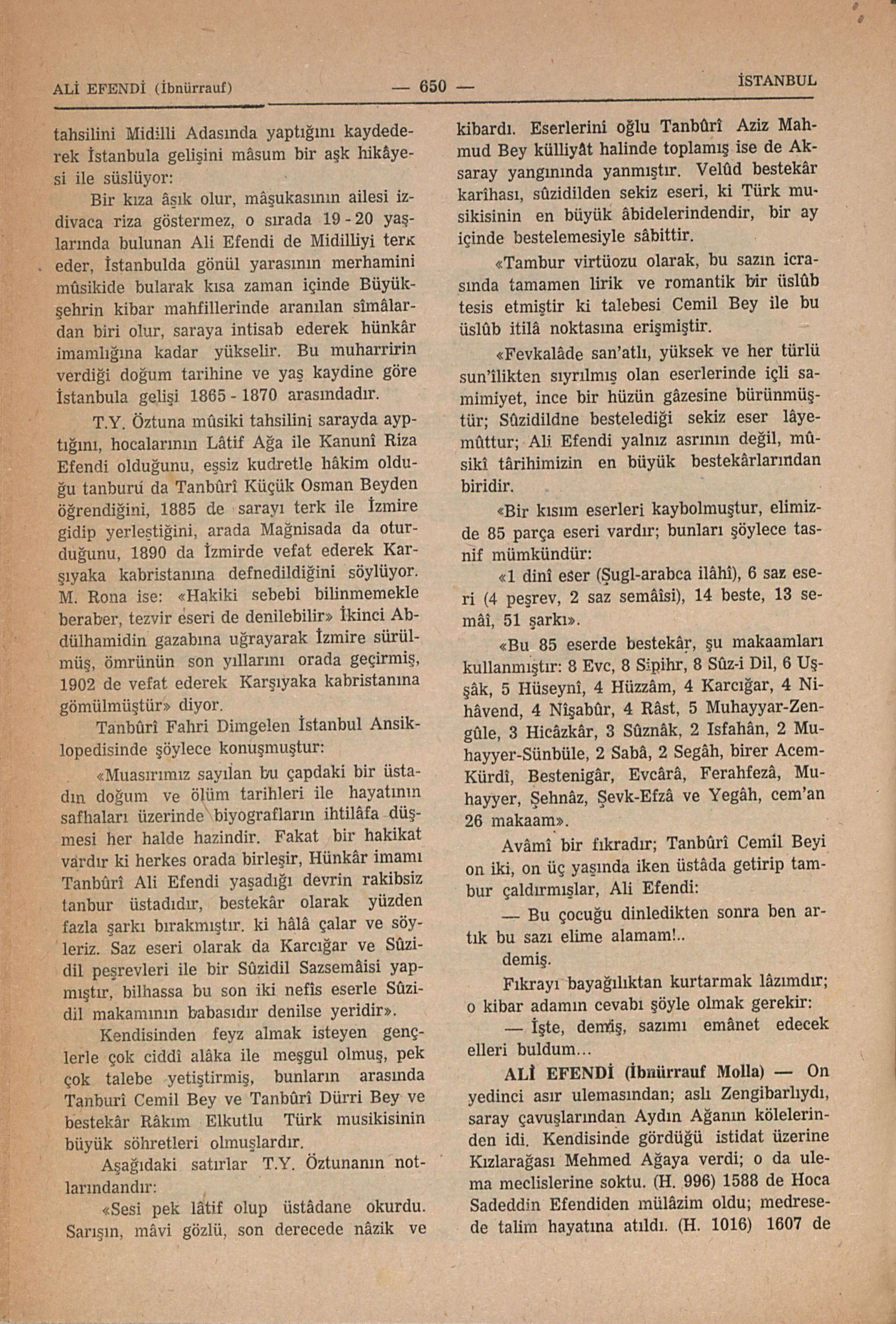 Aşağıdaki satırlar T.Y. Öztunanın notlarındandır: