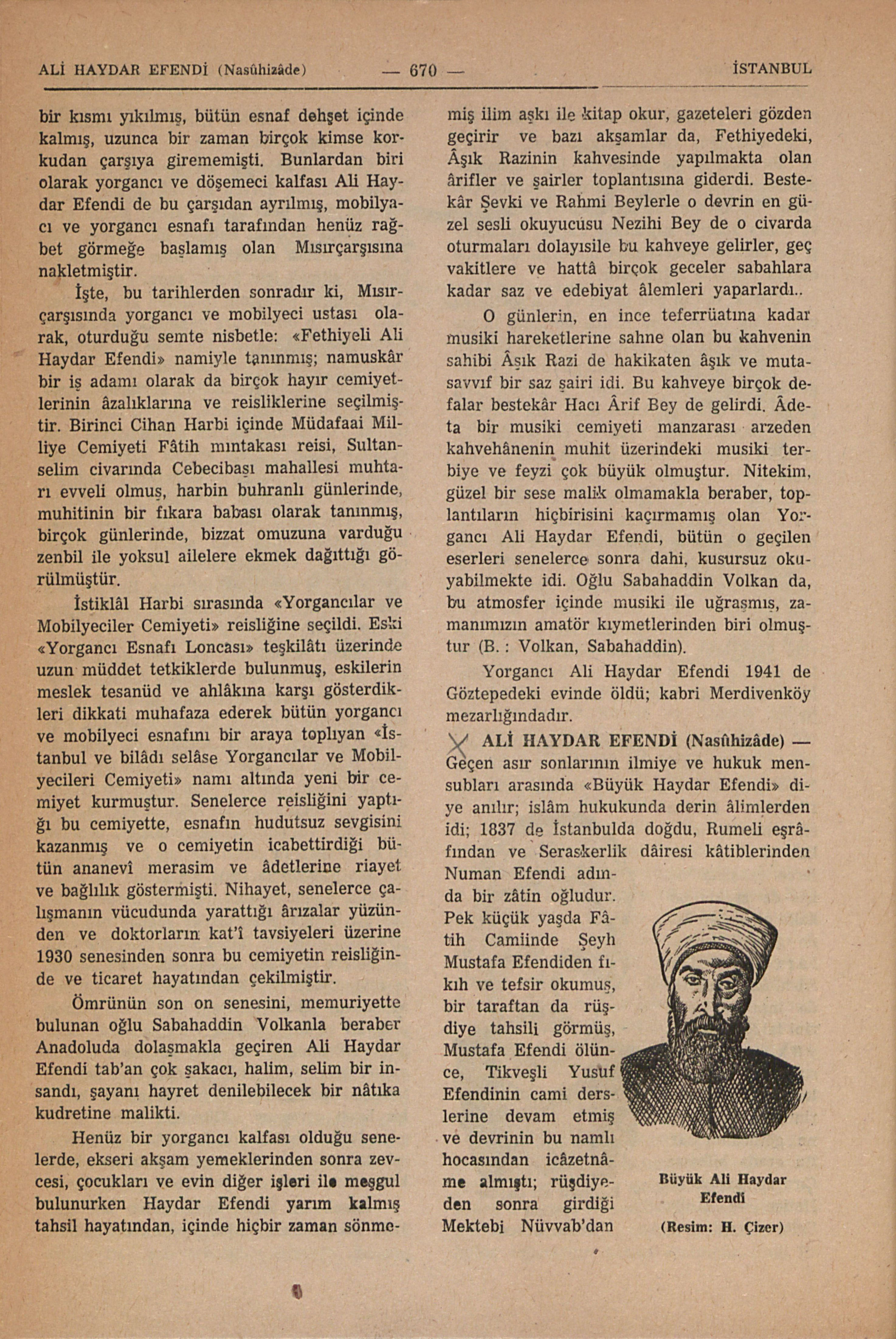İstanbul esnafının ananevî hususiyetleri ile son efendi simalarından biri, «Yorgancı, döşemeci ve mobilyacı esnafı cemiyeti” nin son reisi; 1867 - 1868 senelerinde İstanbulda doğmuştur; babası Trabzonlu Halil İbrahim Ağa yelkenin son devrinde gemici idi.