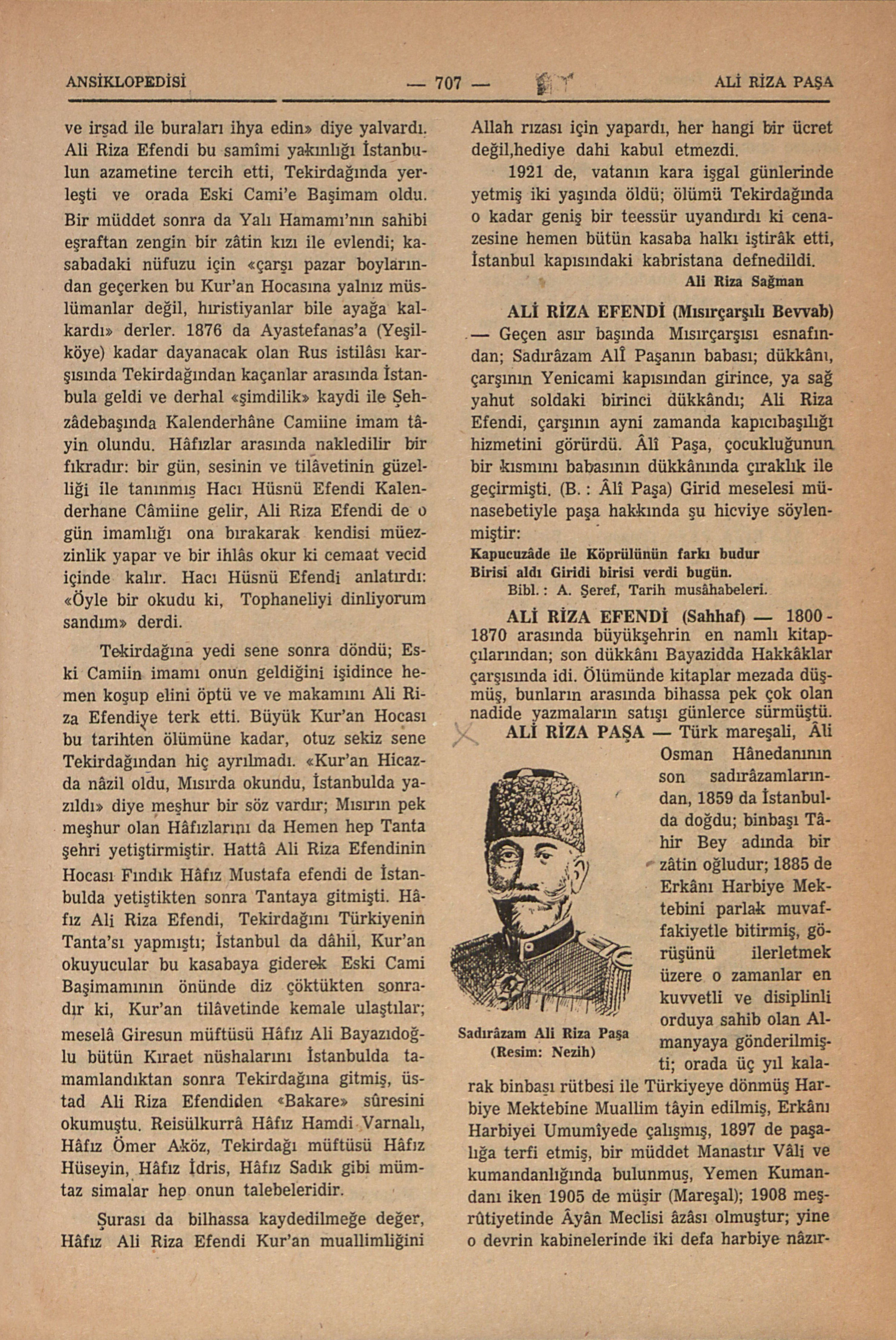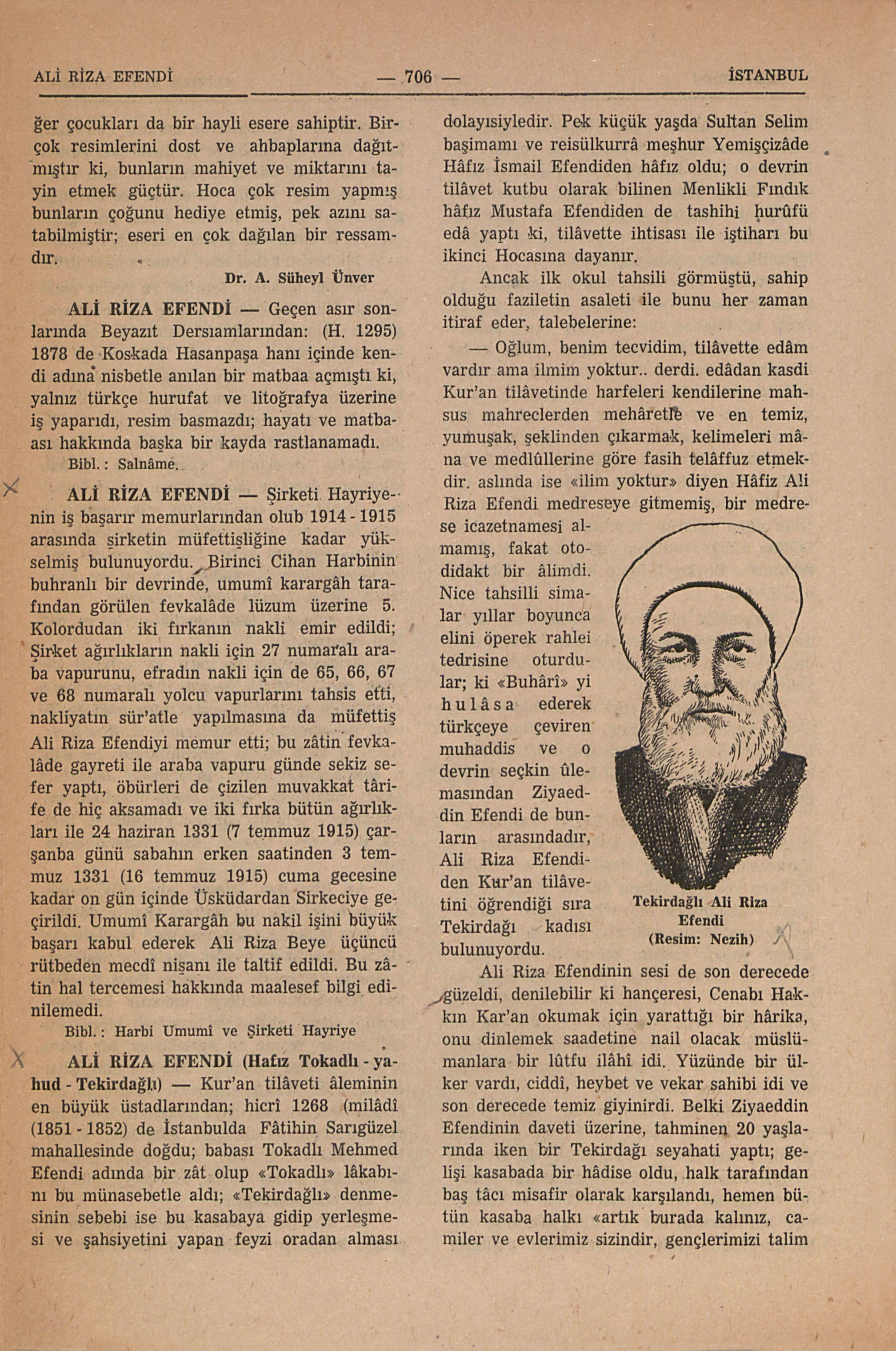 ALİ RİZA EFENDİ (Hafız Tokadlı - yahud - Tekirdağlı)