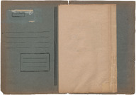 Piece of paper with a printed capital G is glued to the folder. Typewriting and pen on paper. Index numbers, marks and additions are written with pen.