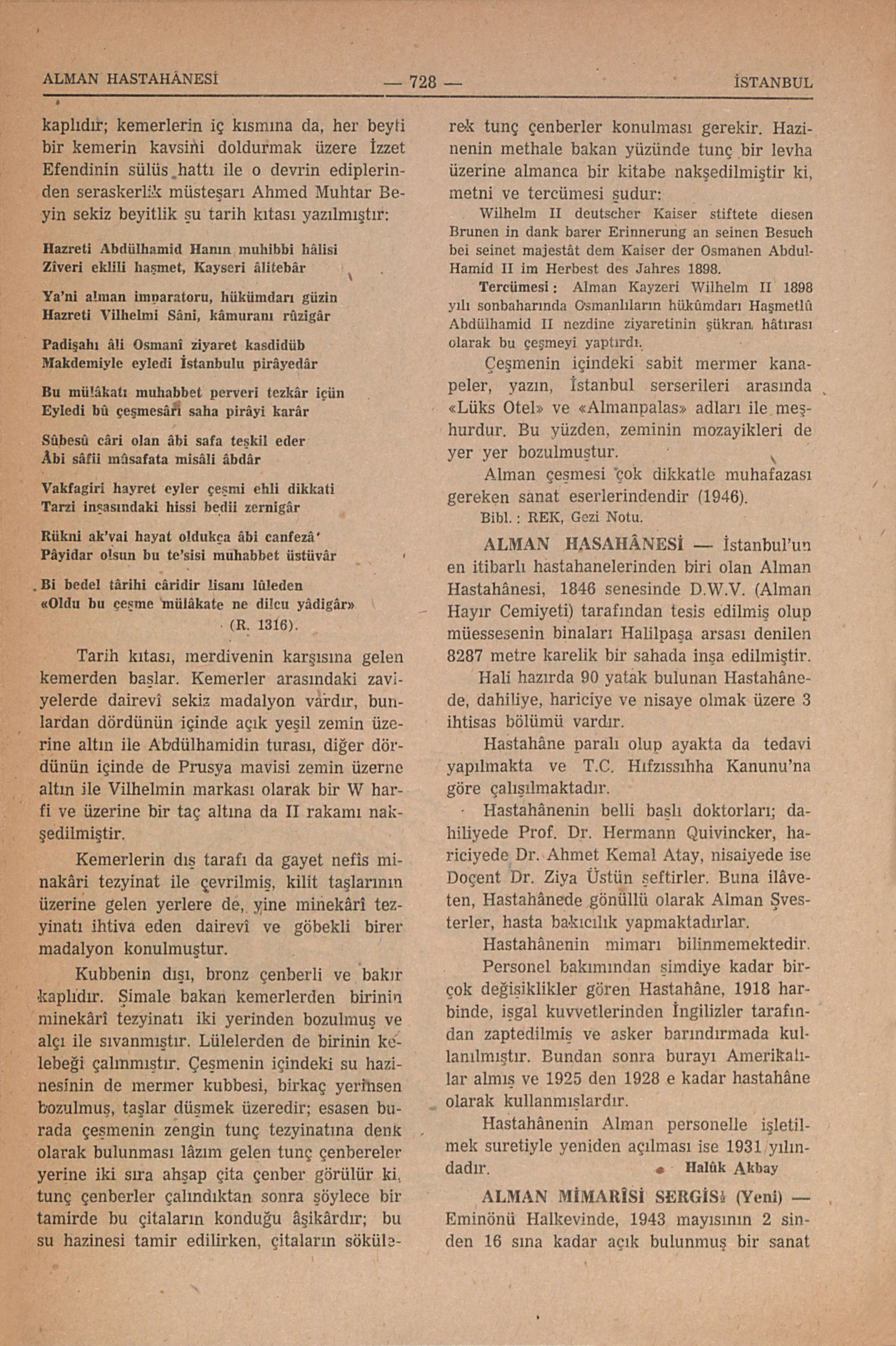 Alman çeşmesi çok dikkatle muhafazası gereken sanat eserlerindendir (1946).