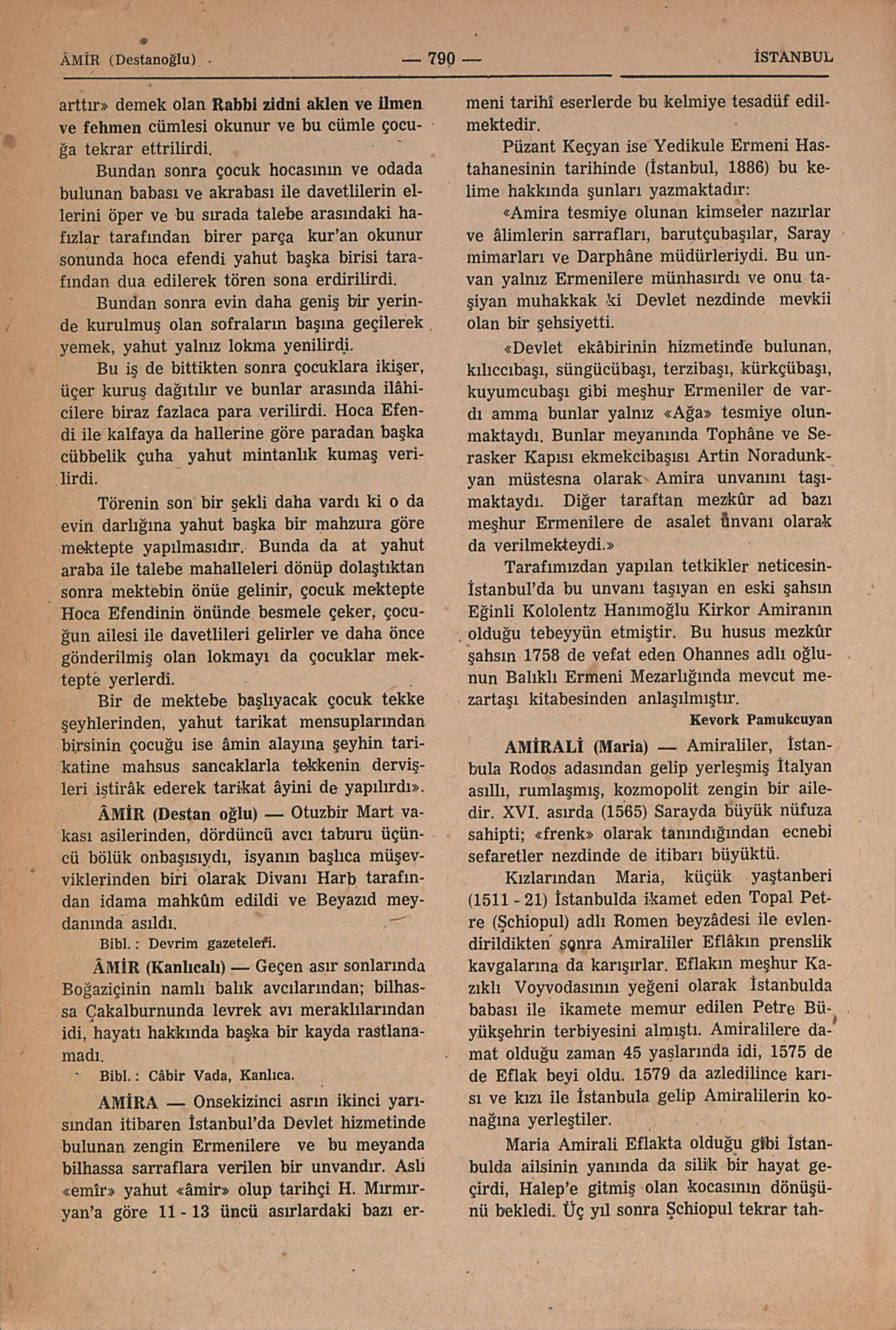 Amirali adında İstanbulda hâlen bir aile mevcut ise de mevzuubahis Amiraliler ile ilgili tesbi...