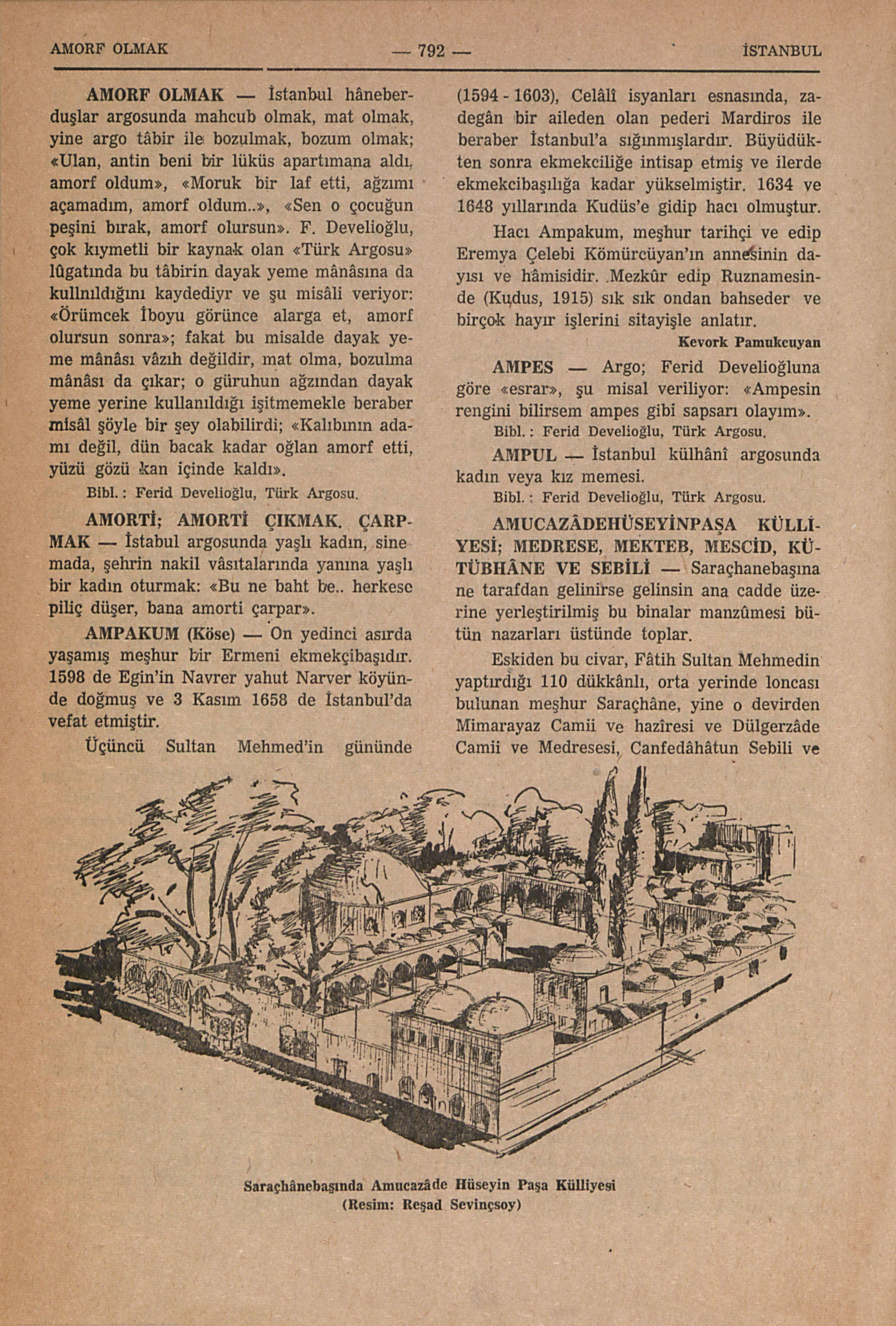 İstanbul hâneberduşlar argosunda mahcub olmak, mat olmak, yine argo tâbir ile bozulmak, bozum olmak; “Ulan, antin beni bir lüküs apartımana aldı, amorf oldum”, “Moruk bir laf etti, ağzımı açamadım, amorf oldum..”, “Sen o çocuğun peşini bırak, amorf olursun”. F. Develioğlu, çok kıymetli bir kaynak olan “Türk Argosu” lûgatında bu tâbirin dayak yeme mânâsına da kullnıldığını kaydediyor ve şu misâli veriyor: “Örümcek İboyu görünce alarga et, amorf olursun sonra”; fakat bu misalde dayak yeme mânâsı vâzıh değildir, mat olma, bozulma mânâsı da çıkar; o güruhun ağzından dayak yeme yerine kullanıldığı işitmemekle beraber misâl şöyle bir şey olabilirdi; “Kalıbının adamı değil, dün bacak kadar oğlan amorf etti, yüzü gözü kan içinde kaldı”.