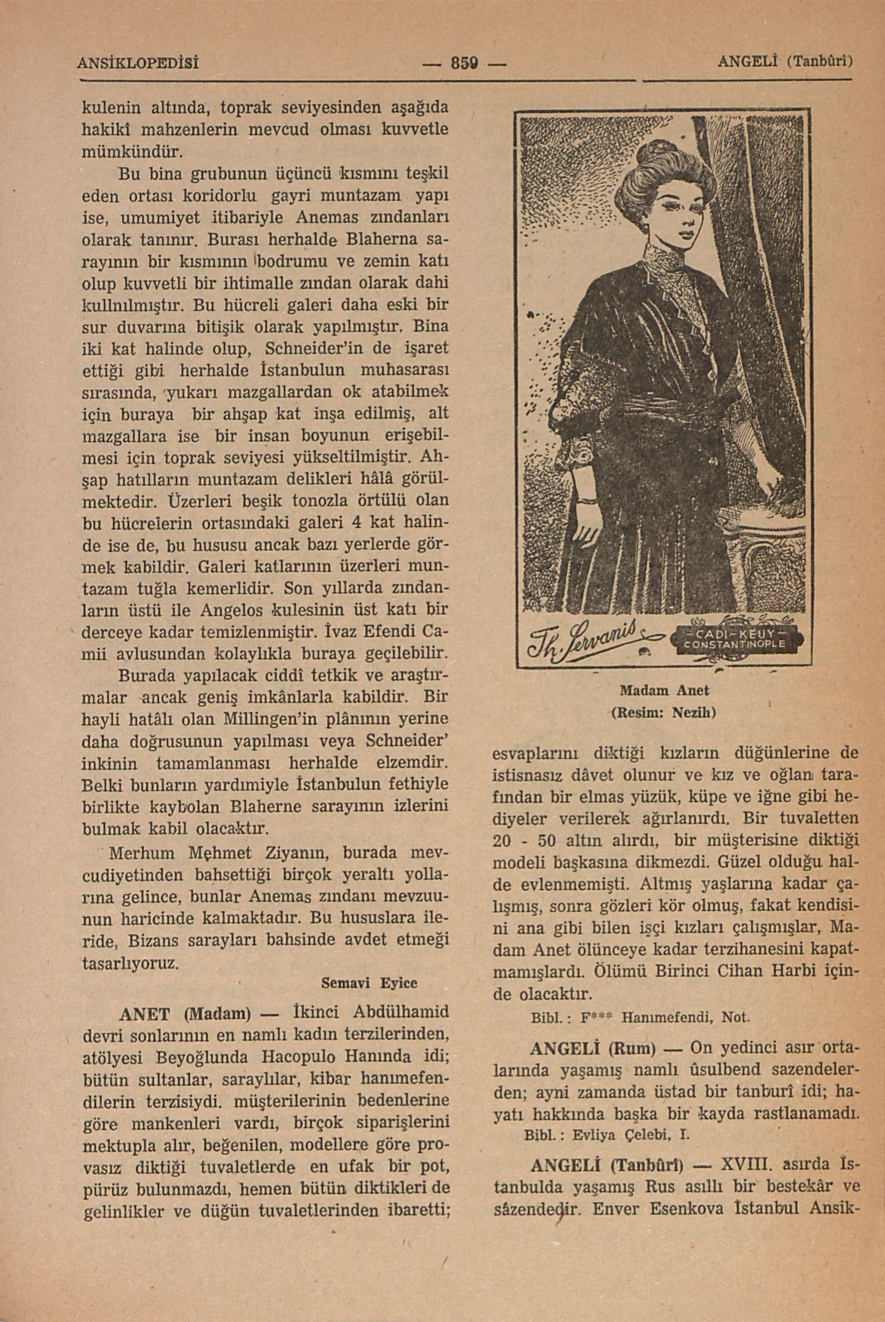 İkinci Abdülhamid devri sonlarının en namlı kadın terzilerinden, atölyesi Beyoğlunda Hacopulo Hanında idi; bütün sultanlar, saraylılar, kibar hanımefendilerin terzisiydi. müşterilerinin bedenlerine göre mankenleri vardı, birçok siparişlerini mektupla alır, beğenilen, modellere göre provasız diktiği tuvaletlerde en ufak bir pot, pürüz bulunmazdı, hemen bütün diktikleri de gelinlikler ve düğün tuvaletlerinden ibaretti; esvaplarını diktiği kızların düğünlerine de istisnasız dâvet olunur ve kız ve oğlan tarafından bir elmas yüzük, küpe ve iğne gibi hediyeler verilerek ağırlanırdı. Bir tuvaletten 20 - 50 altın alırdı, bir müşterisine diktiği modeli başkasına dikmezdi. Güzel olduğu halde evlenmemişti. Altmış yaşlarına kadar çalışmış, sonra gözleri kör olmuş, fakat kendisini ana gibi bilen işçi kızları çalışmışlar, Madam Anet ölünceye kadar terzihanesini kapatmamışlardı. Ölümü Birinci Cihan Harbi içinde olacaktır.