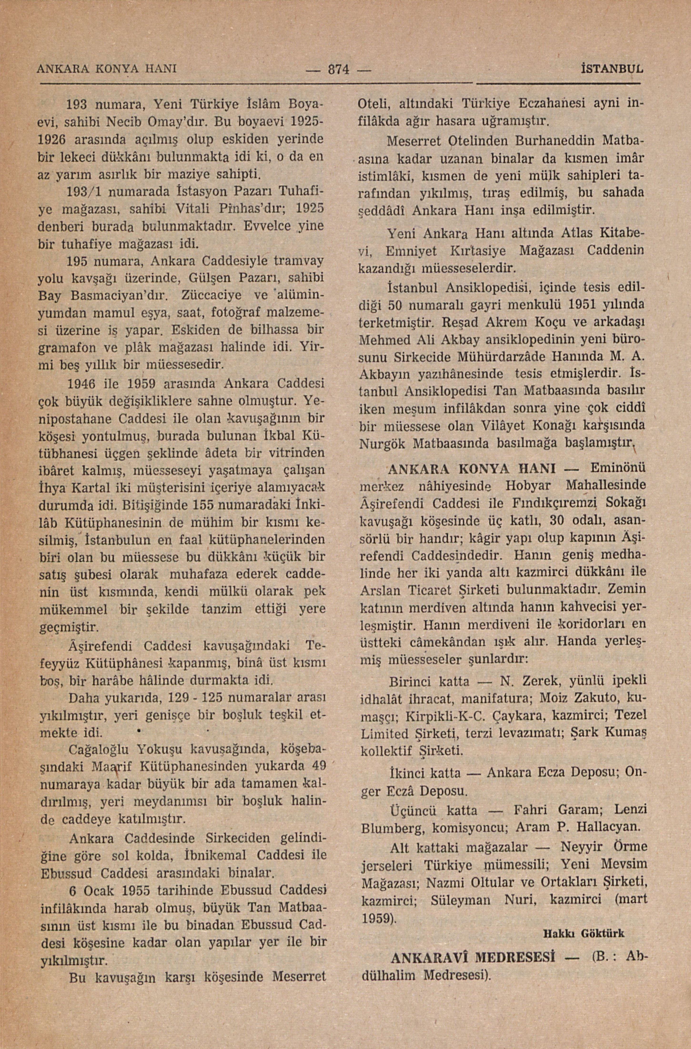 İkinci katta — Ankara Ecza Deposu; Onger Eczâ Deposu.