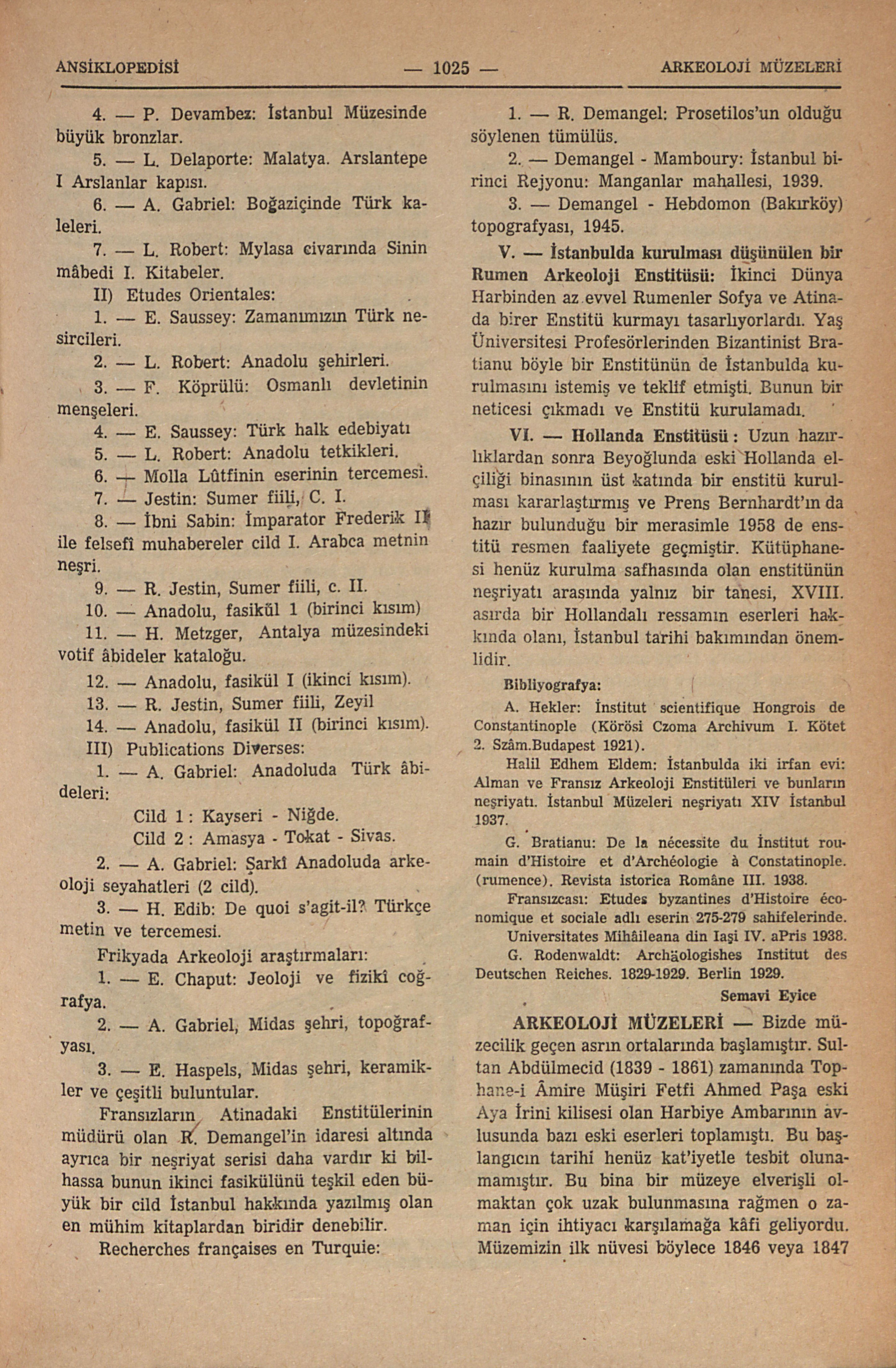 8. İst. Ark. Müzeleri yıllığı (basılmakta).