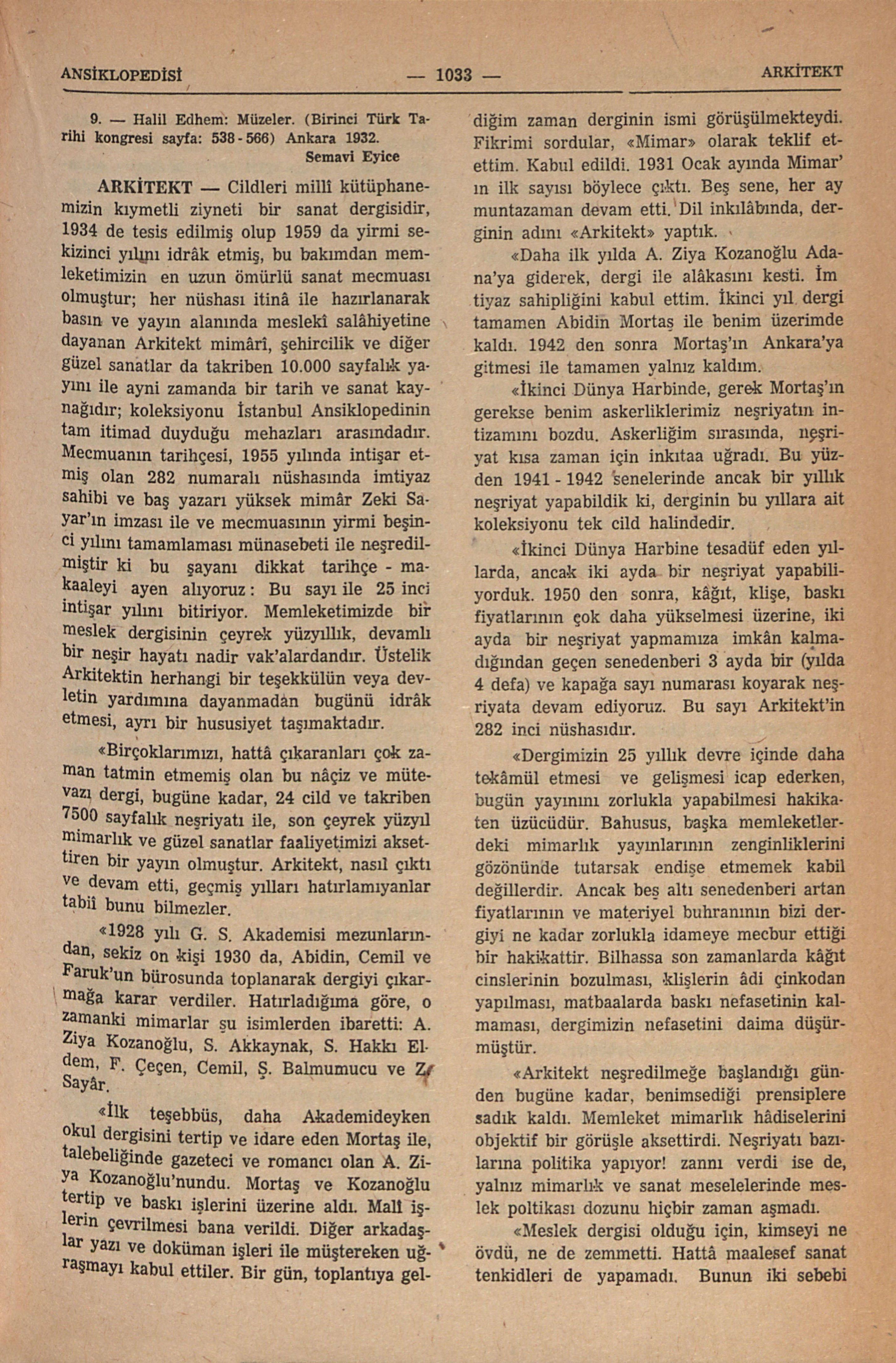 8. — E. Behnan Şapolyo: Müzeciliğin tarihi. Ülkü cild: III sayı: 18 sayfa 428-434 Ankara 1934.