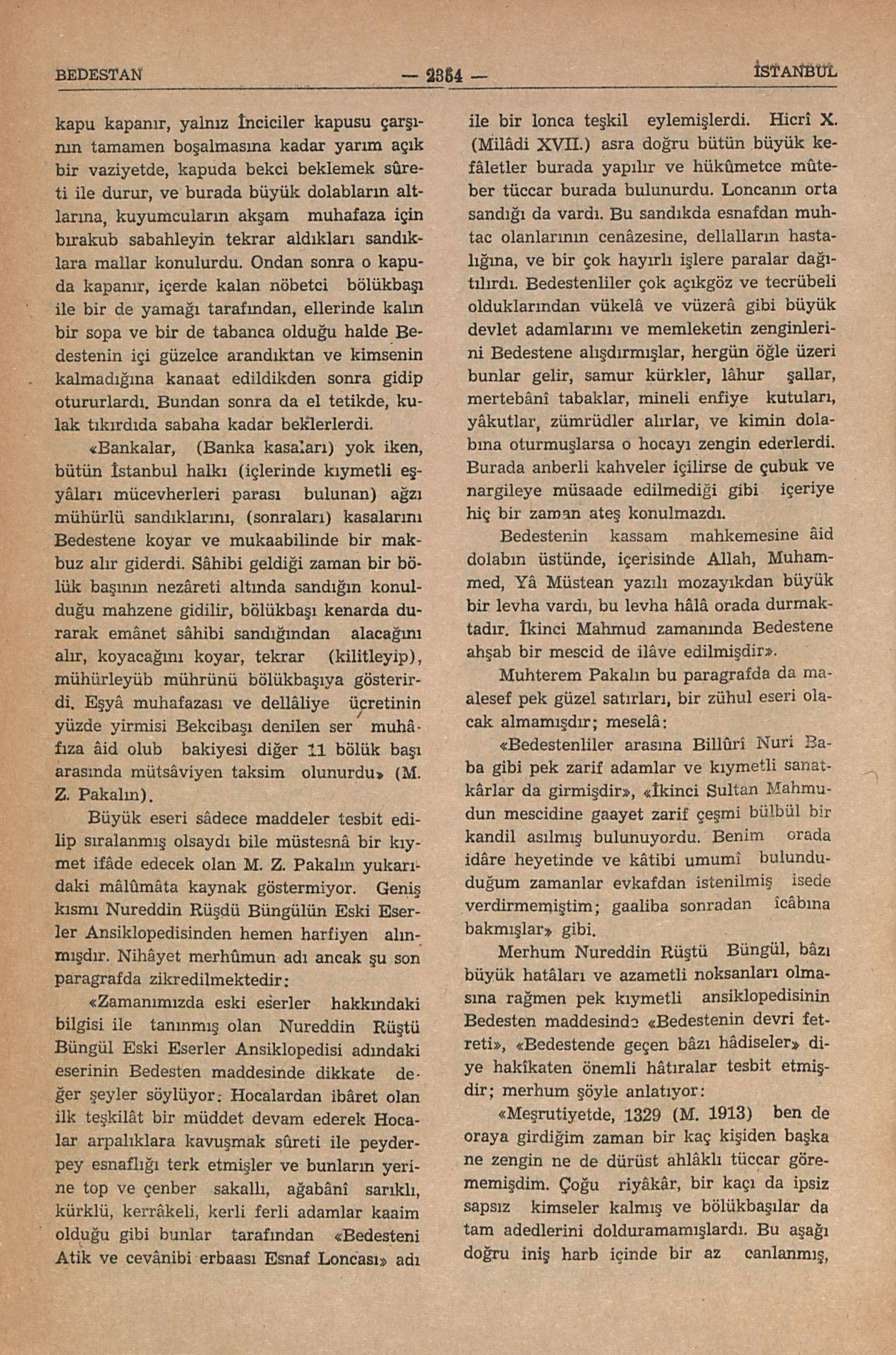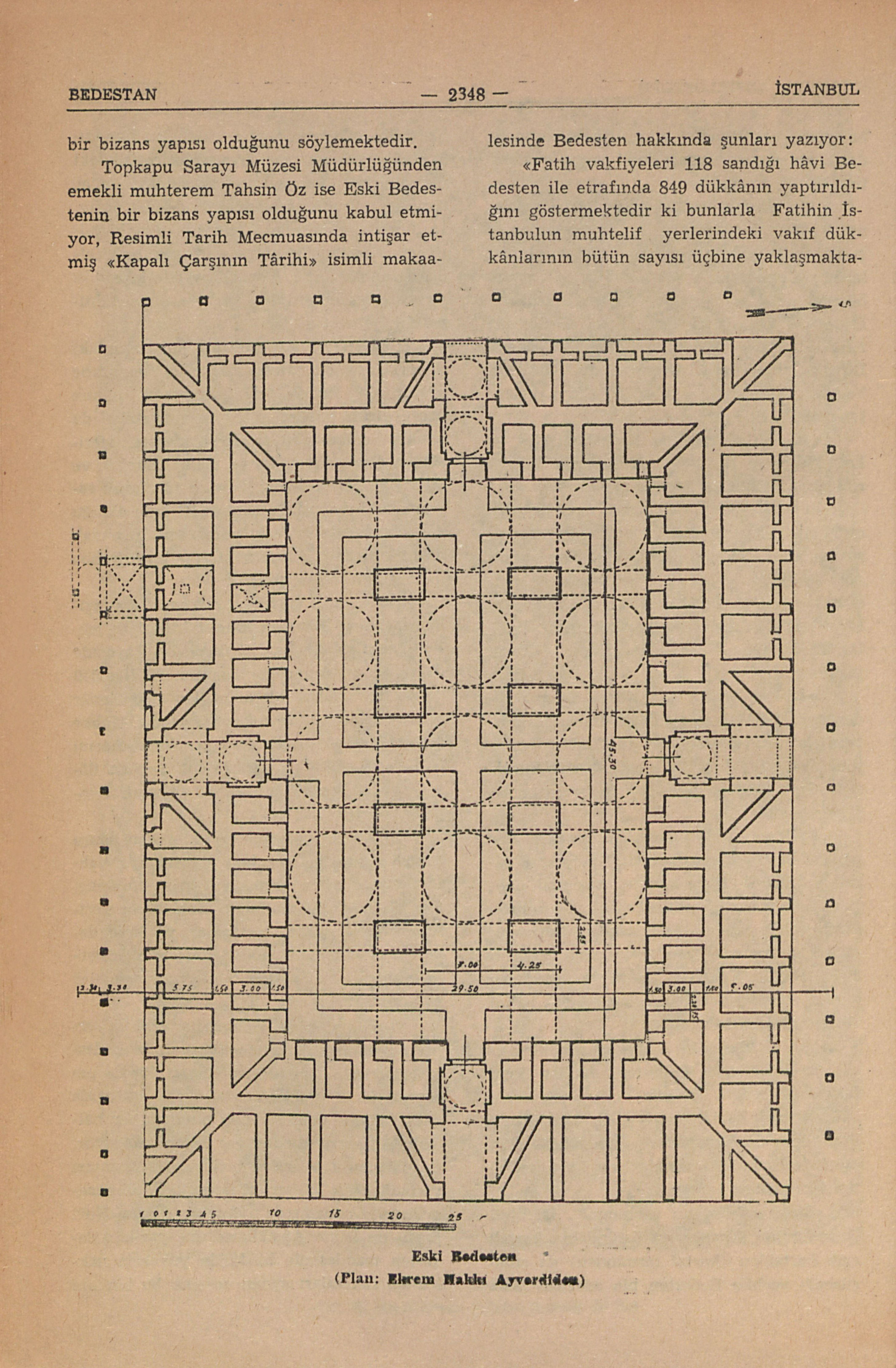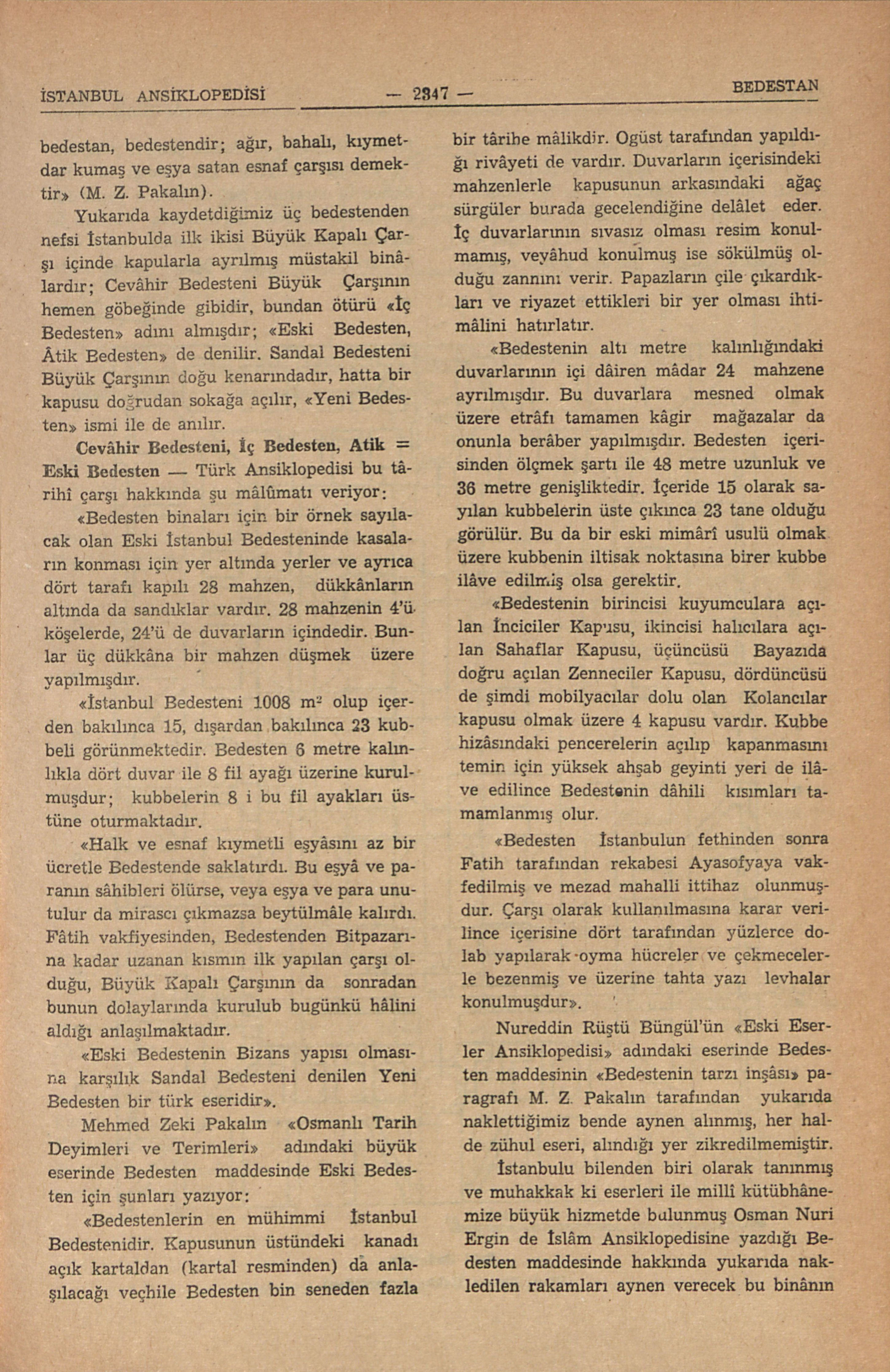 Bibl.: Ekrem Hakkı Ayverdi, Fâtih Devri Mimârisi; Nureddin Rüştü Büngül, Eski Eserler Ansiklopedisi; Mehmed Zeki Pakalın, Osmanlı Tarih Deyimleri ve Terimleri; Osman Nuri Ergin, İslâm Ansiklopedisinde Bedestan maddesi: Türk Ansiklopedisi, Bedestan maddesi; Ahmed Refik, Onuncu Hicrî asırda İstanbul Hayatı.