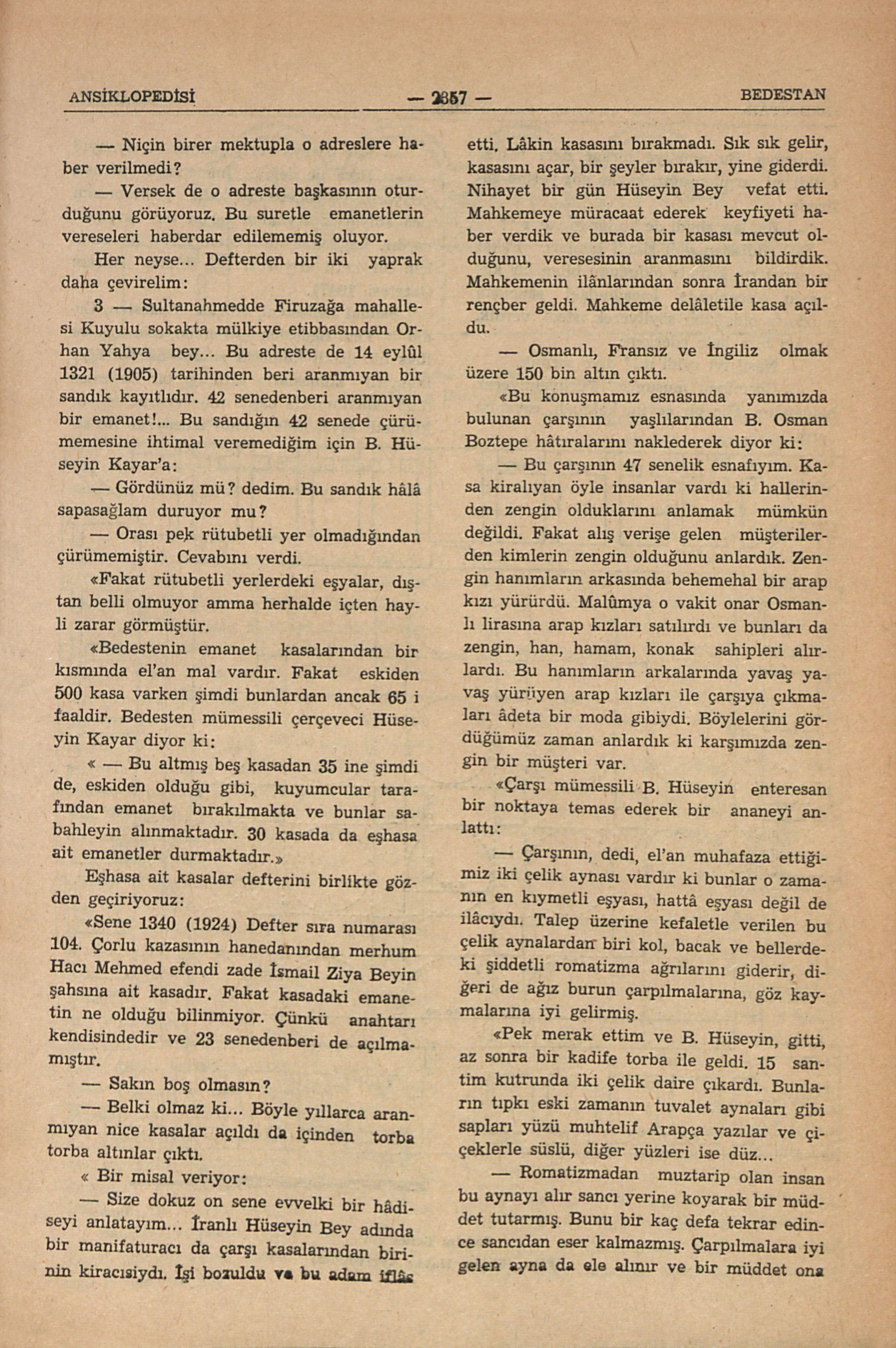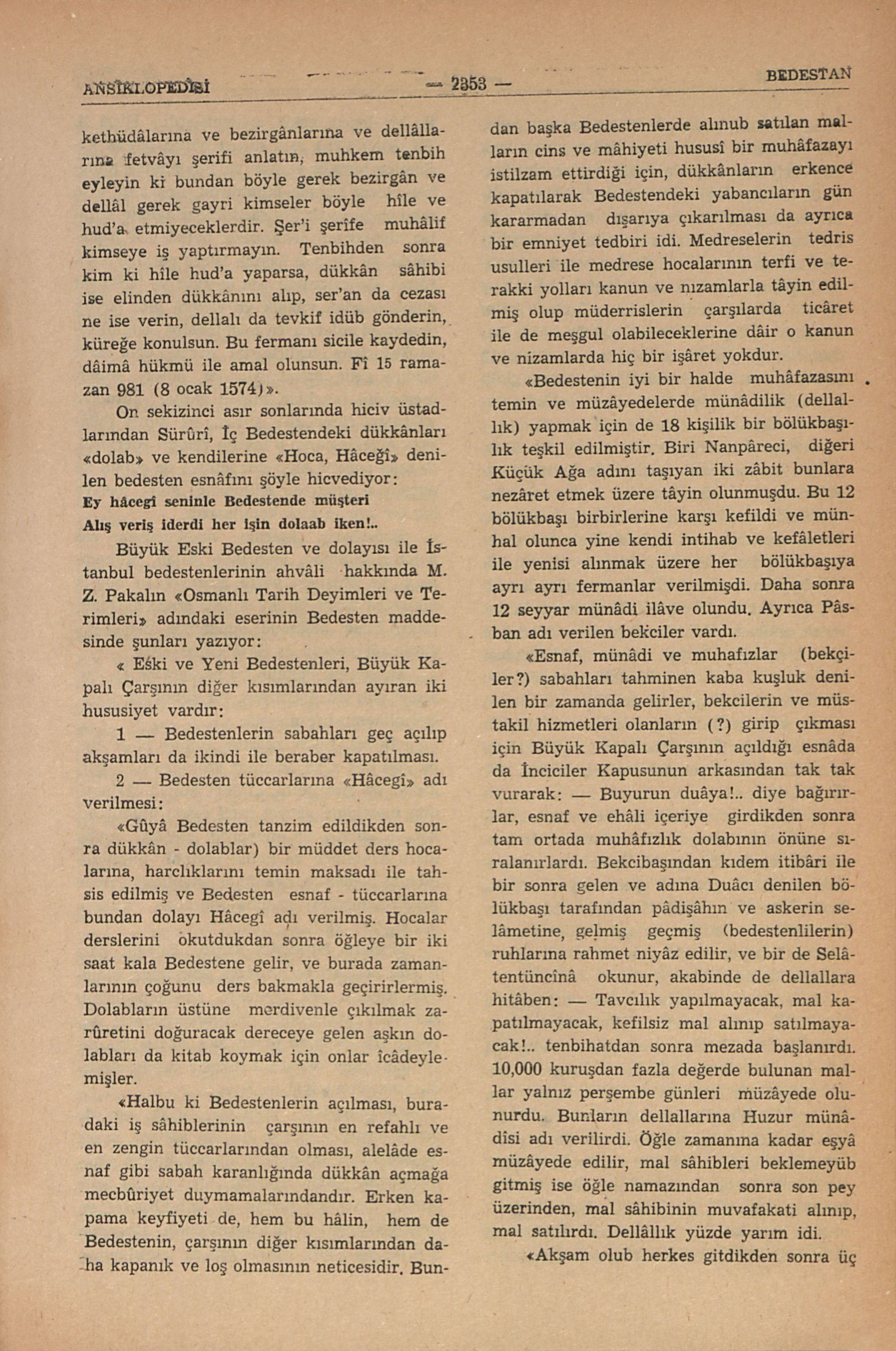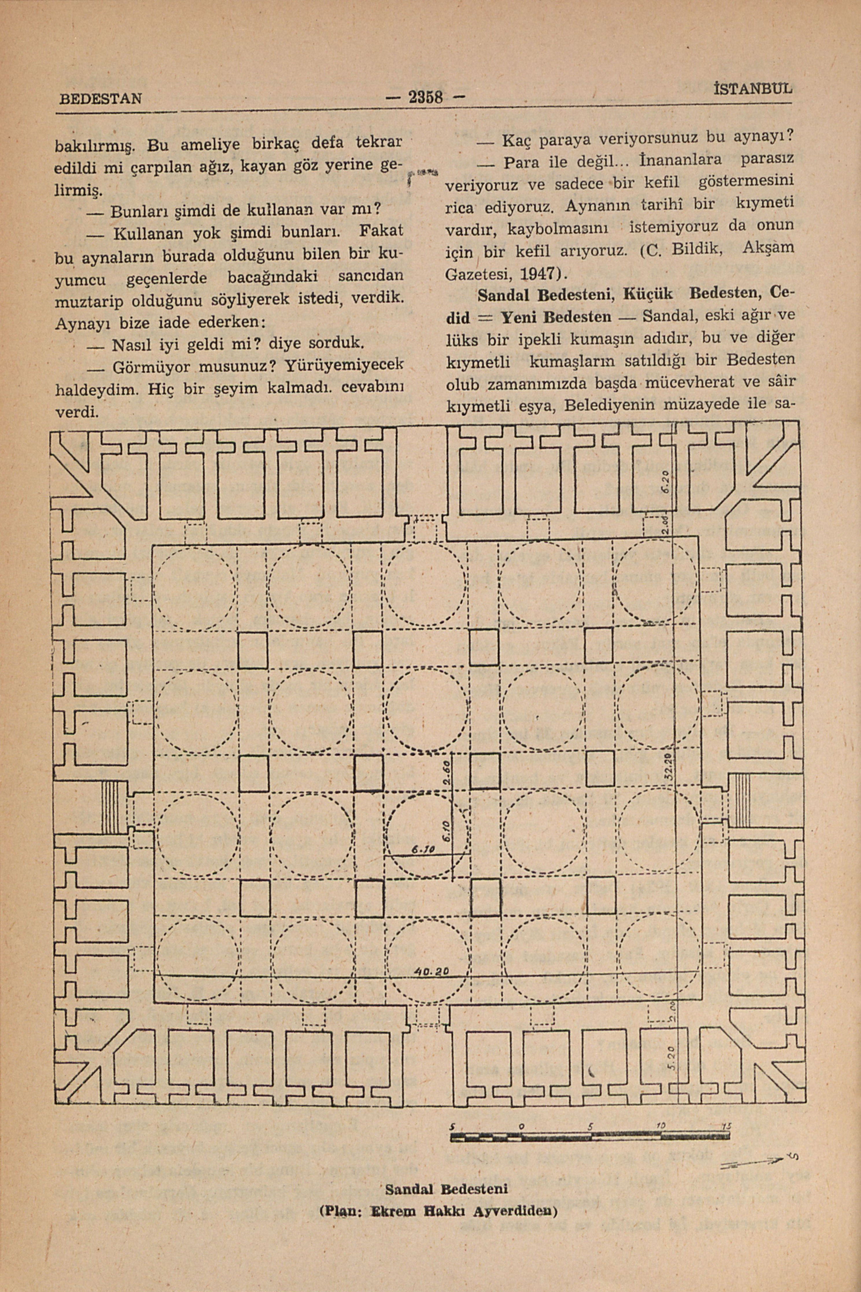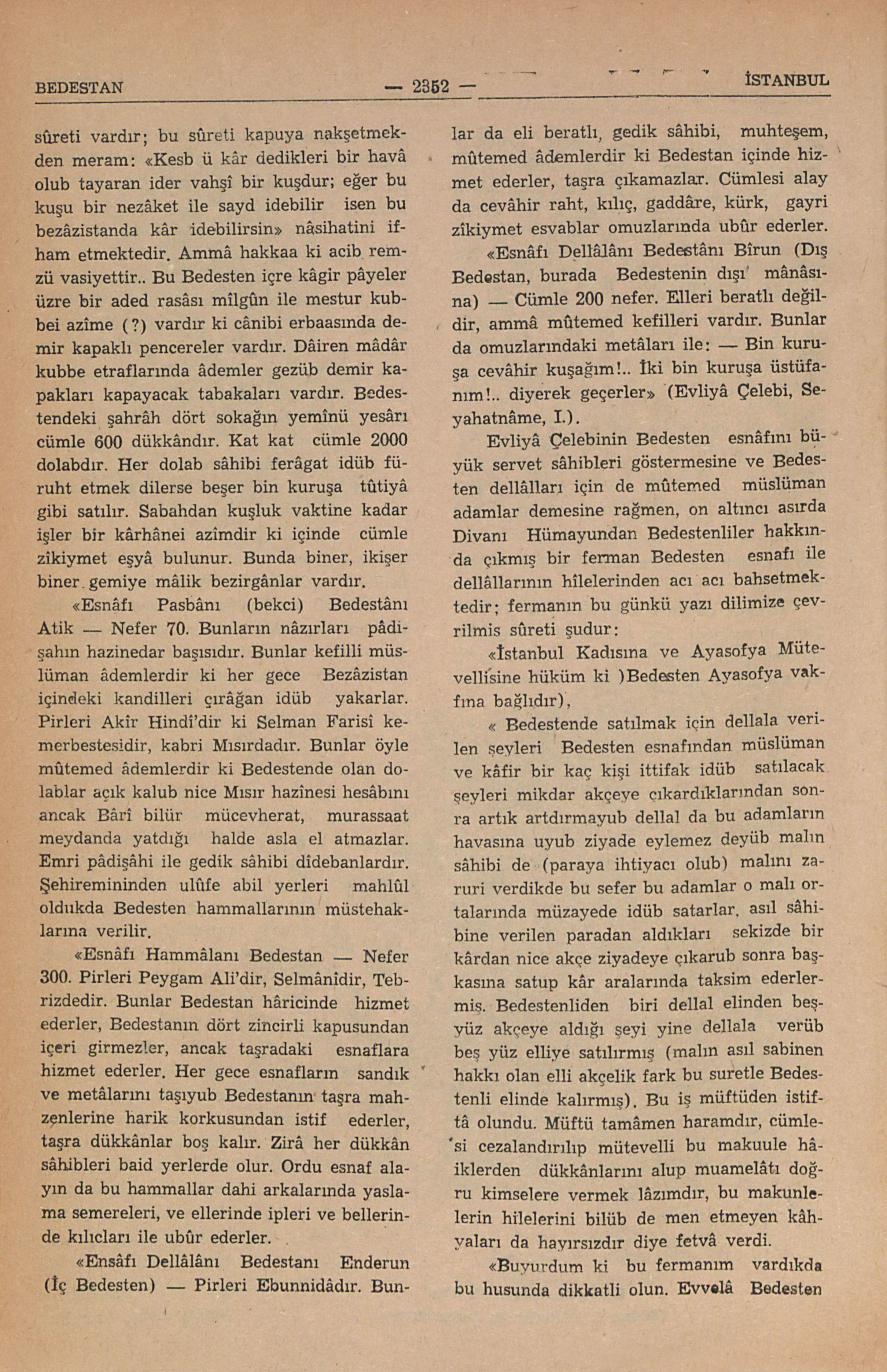 Bibl.: Ekrem Hakkı Ayverdi, Fâtih Devri Mimârisi; Nureddin Rüştü Büngül, Eski Eserler Ansiklopedisi; Mehmed Zeki Pakalın, Osmanlı Tarih Deyimleri ve Terimleri; Osman Nuri Ergin, İslâm Ansiklopedisinde Bedestan maddesi: Türk Ansiklopedisi, Bedestan maddesi; Ahmed Refik, Onuncu Hicrî asırda İstanbul Hayatı.