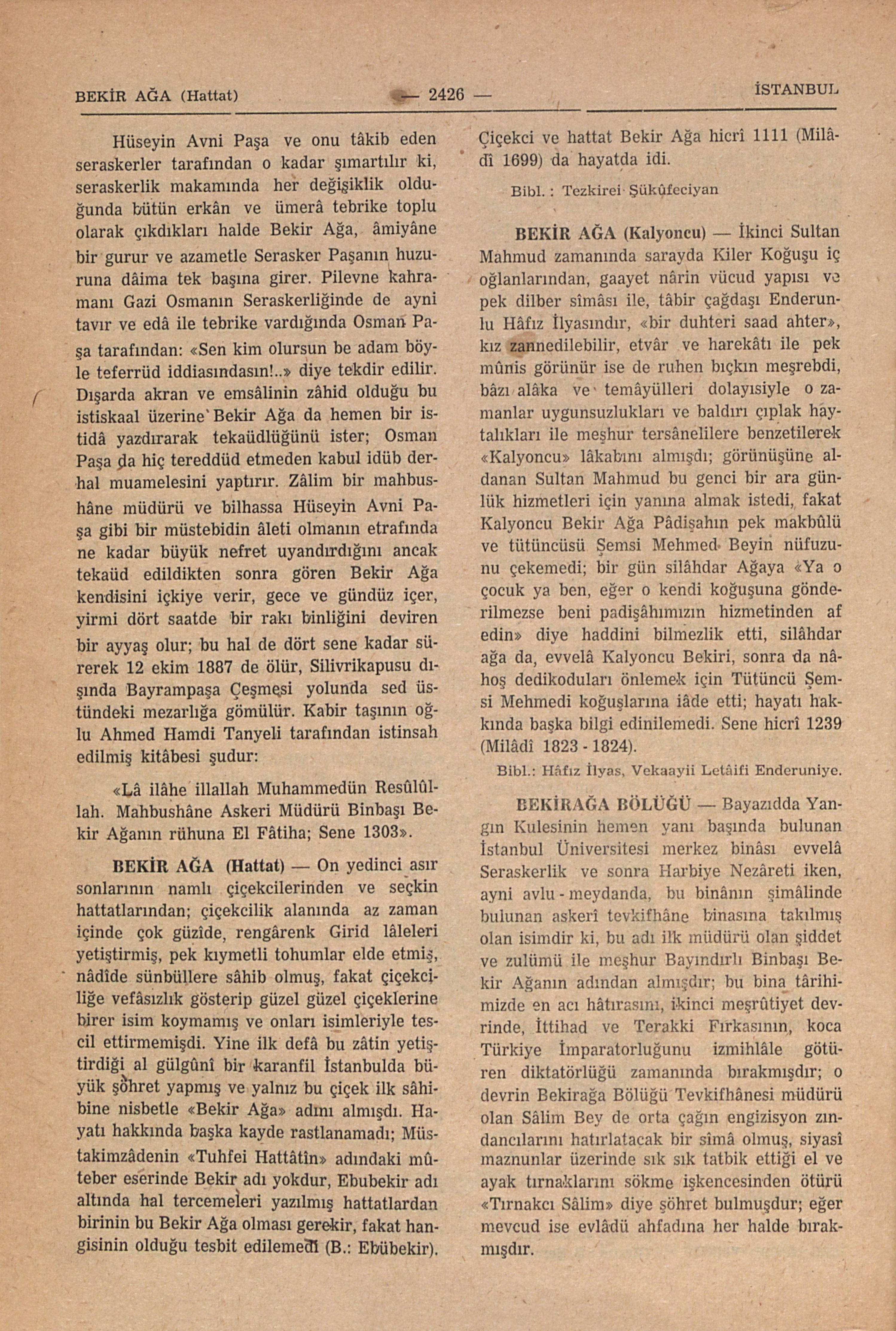 Geçen asrın ikinci yarısında Bayazıdda Seraskerlik Dâiresindeki askerî mahbushânenin müdürlerinden; şiddeti, merhametsizliği, mevkuflara ve mahkûmlara hattâ zâlimâne muamelesi ile İstanbulda muhitine dehşet saçmış bir sîmâ; öylesineki bu mahbushânenin idâresi ve muhâfazası için bütün efrâdı bu Bekir Ağa tarafından teker teker seçilmiş zehri kaatil misâli adamlardan müteşekkil bir bölük de kumandanlarına nisbetle “Bekirağa Bölüğü” adını almış, ayni isim bu askerî mahbushâneye de alem olmuşdu. Zamanımızda İstanbul Üniversitesinin merkez binâsı olan Seraskerlik Dâiresi avlusunun Süleymâniye tarafında olan Bekirağa Bölüğü 1950 -1955 arasında yıktırılmıştır. Bilhassa 1908 meşrutiyetinden sonra İttihad ve Terakki Fırkasının tahakküm ve istibdad devrinde Bekirağa Bölüğü denilen mahbushâne nice mâsum vatandaşların zâlimâne işkenceler altında inim inim inlediği meş’um bir binâ olmuşdu.