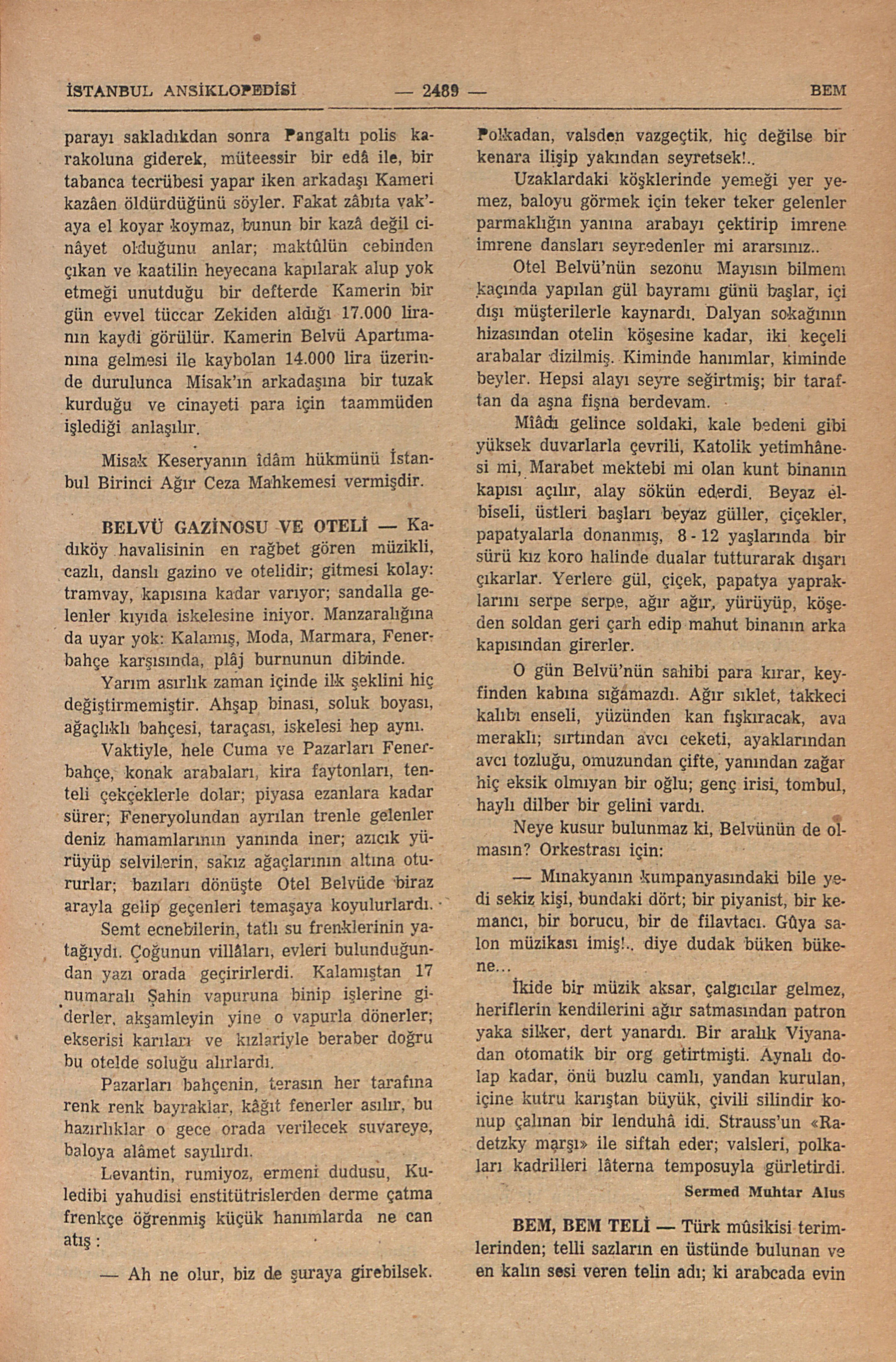 1943 yılında İstanbulda bilhassa ermeni ekalliyeti arasında derin akisler yapmış bir vak’adır; Misak Keseryan adında bir delikanlı, samimî arkadaşı Kamer Nerses Merian’ı parasına tamah ederek tabanca ile öldürmüş, kaatil, uzun ve heyecanlı muhâkeme safhalarından sonra taammüd sâbit olarak îdame mahkûm olmuş, 29 ocak 1947 günü sabahı Sultanmed Meydanında asılmışdır.