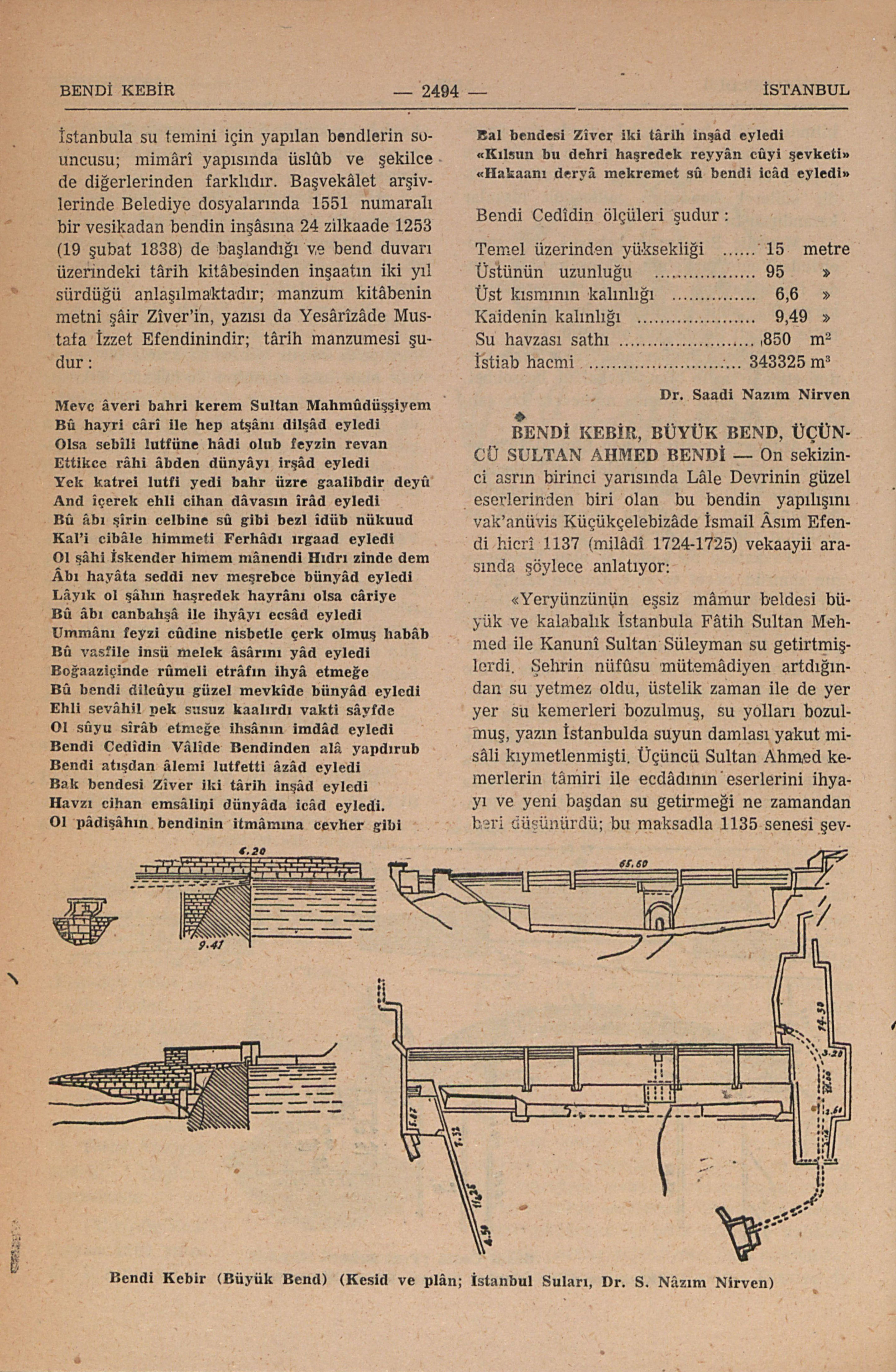 (Kesid ve plân; İstanbul Suları, Dr. S. Nâzım Nirven)