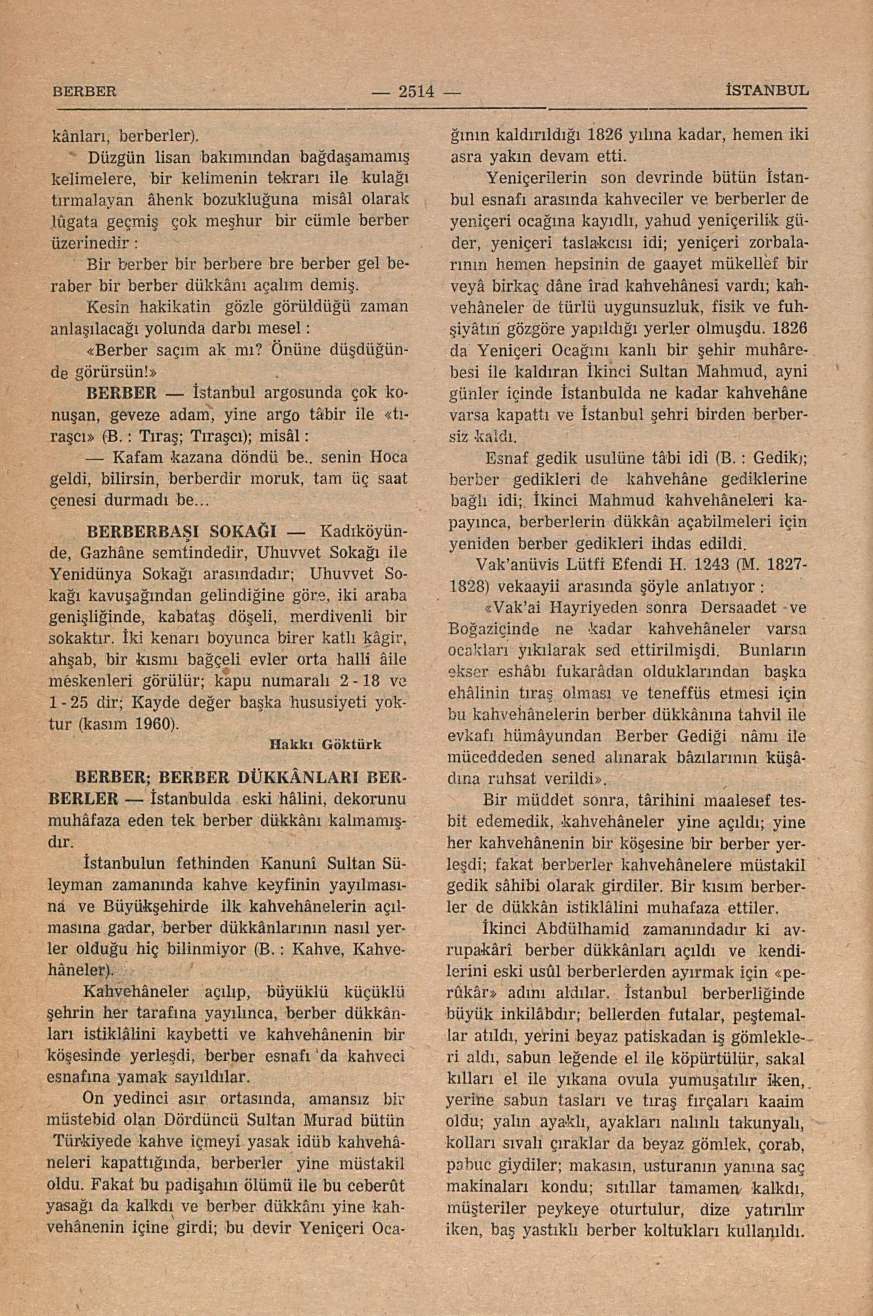 Garb türkçesinde italyancadan girmiş bir kelimedir, “barbiere” den bozmadır; sakal kesen mânâsına ise de, saç ve sakal kesen ve düzelten esnafa verilmiş isimdir; arabcası “hallâk” dır (B.: Berber, berser dükkânları, berberler).