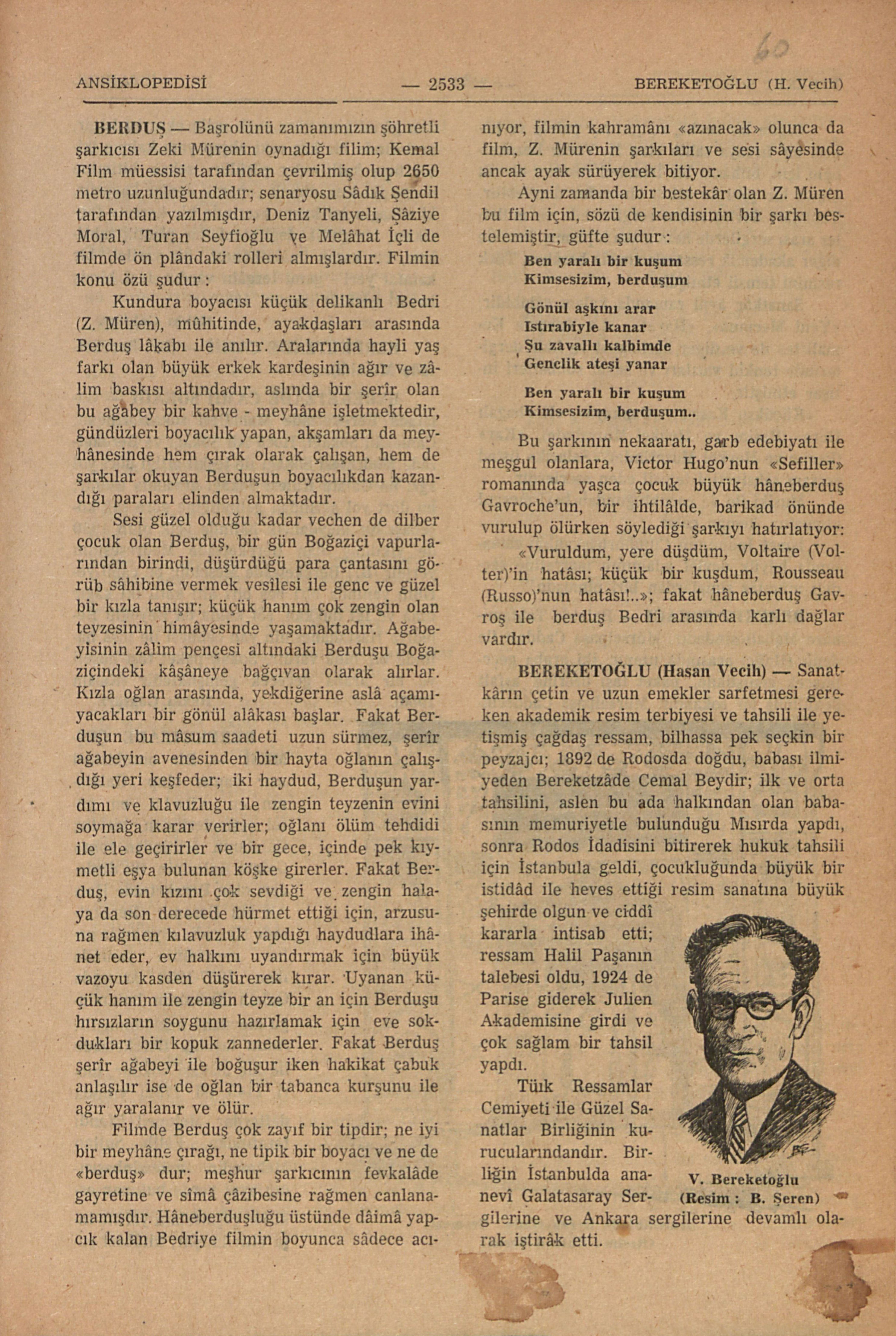 Sanatkârın çetin ve uzun emekler sarfetmesi gereken akademik resim terbiyesi ve tahsili ile yetişmiş çağdaş ressam, bilhassa pek seçkin bir peyzajcı; 1892 de Rodosda doğdu, babası ilmiyeden Bereketzâde Cemal Beydir; ilk ve orta tahsilini, aslen bu ada halkından olan babasının memuriyetle bulunduğu Mısırda yapdı, sonra Rodos İdadisini bitirerek hukuk tahsili için İstanbula geldi, çocukluğunda büyük bir istidâd ile heves ettiği resim sanatına büyük şehirde olgun ve ciddi kararla İhtisab etti; ressam Halil Paşanın talebesi oldu, 1924 de Parise giderek Julien Akademisine girdi ve çok sağlam bir tahsil yapdı.