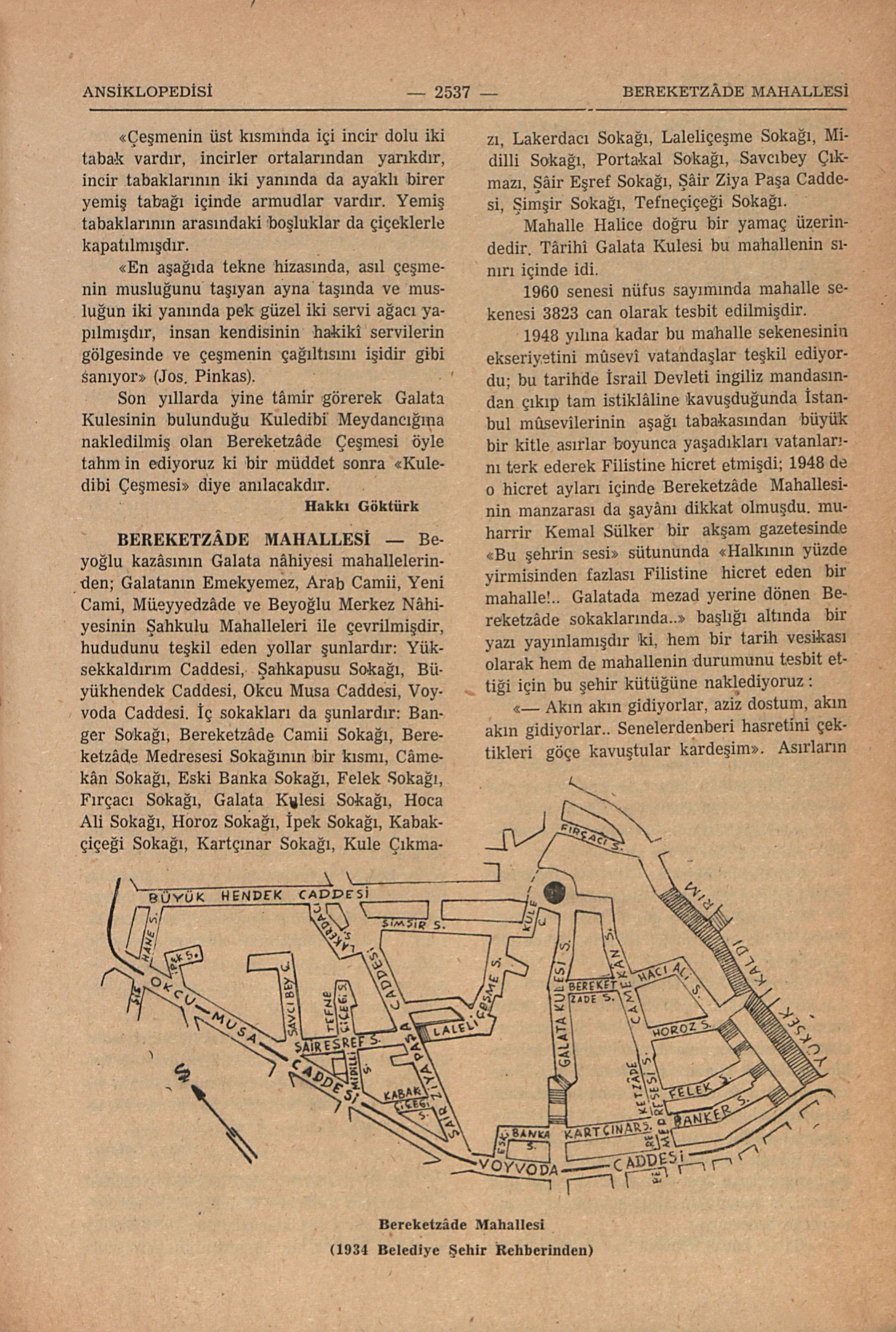 Son yıllarda yine tâmir görerek Galata Kulesinin bulunduğu Kuledibi Meydancığına nakledilmiş olan Bereketzâde Çeşmesi öyle tahmin ediyoruz ki bir müddet sonra “Kuledibi Çeşmesi” diye anılacakdır.