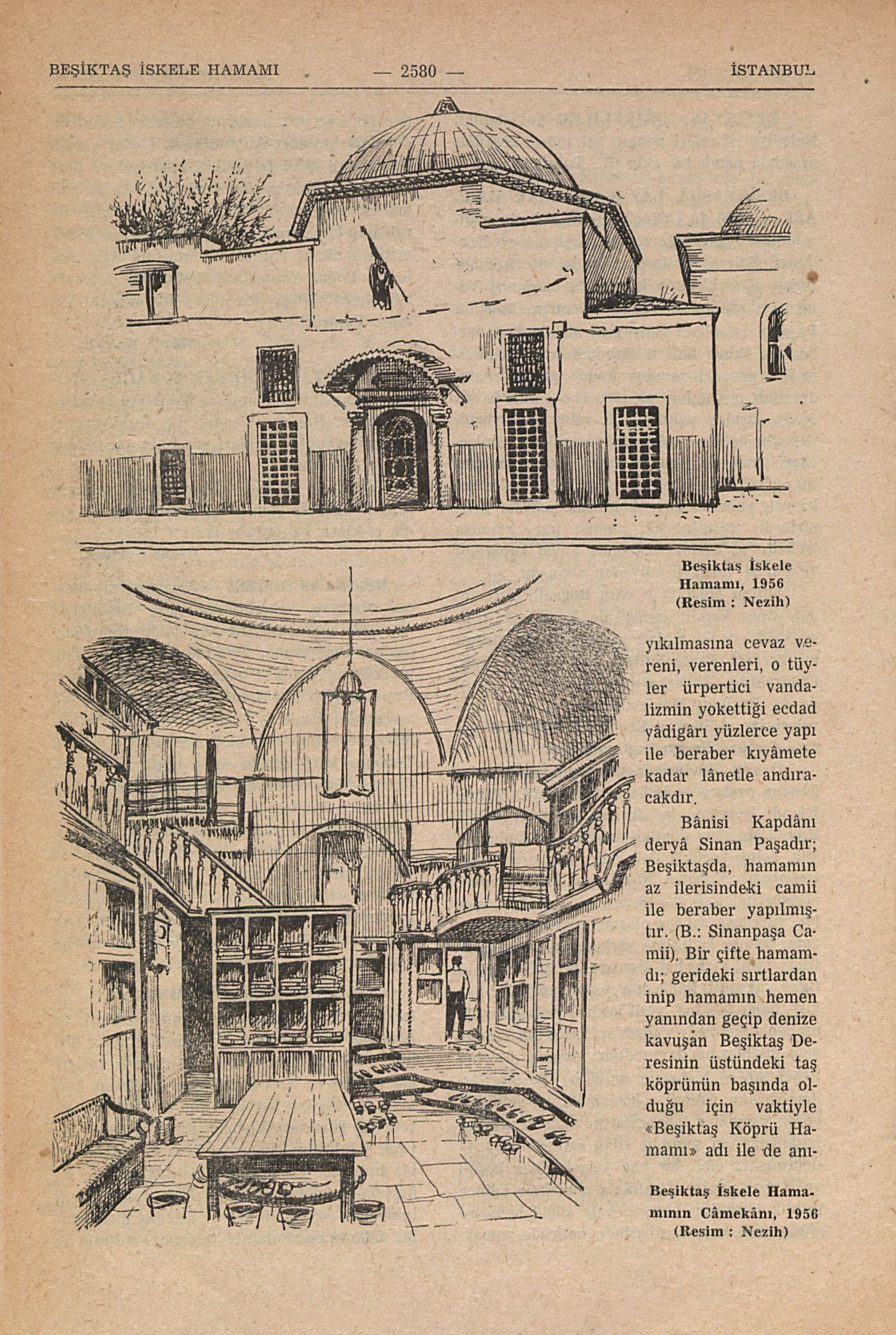 Beşiktaş İskele Hamamının Câmekânı, 1956