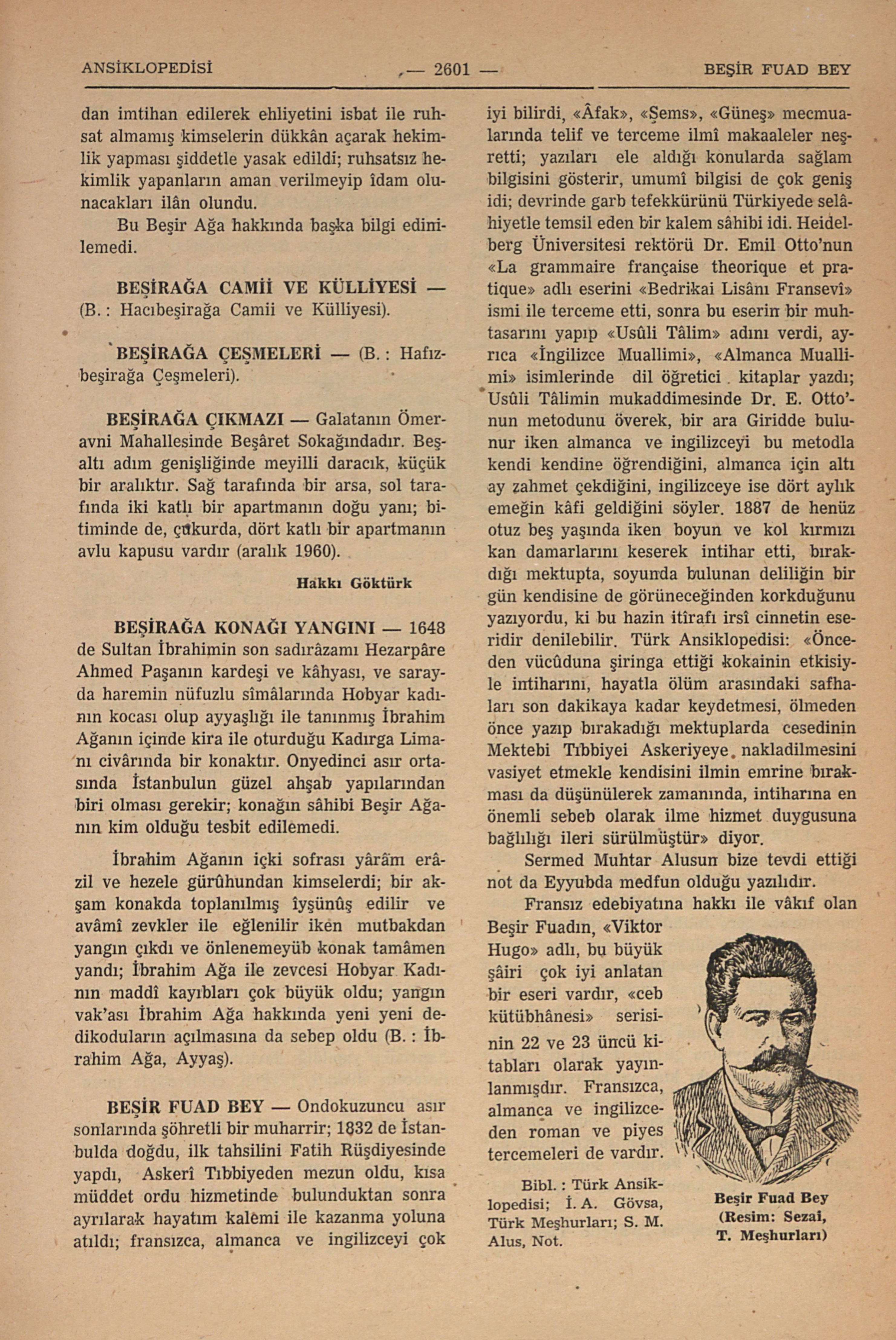 1648 de Sultan İbrahimin son sadırâzamı Hezarpâre Ahmed Paşanın kardeşi ve kâhyası, ve sarayda haremin nüfuzlu simâlarından Hobyar kadının kocası olup ayyaşlığı ile tanınmış İbrahim Ağanın içinde kira ile oturduğu Kadırga Limanı civârında bir konakdır. Onyedinci asır ortasında İstanbulun güzel ahşab yapılarından biri olması gerekir; konağın sâhibi Beşir Ağanın kim olduğu tesbit edilemedi.