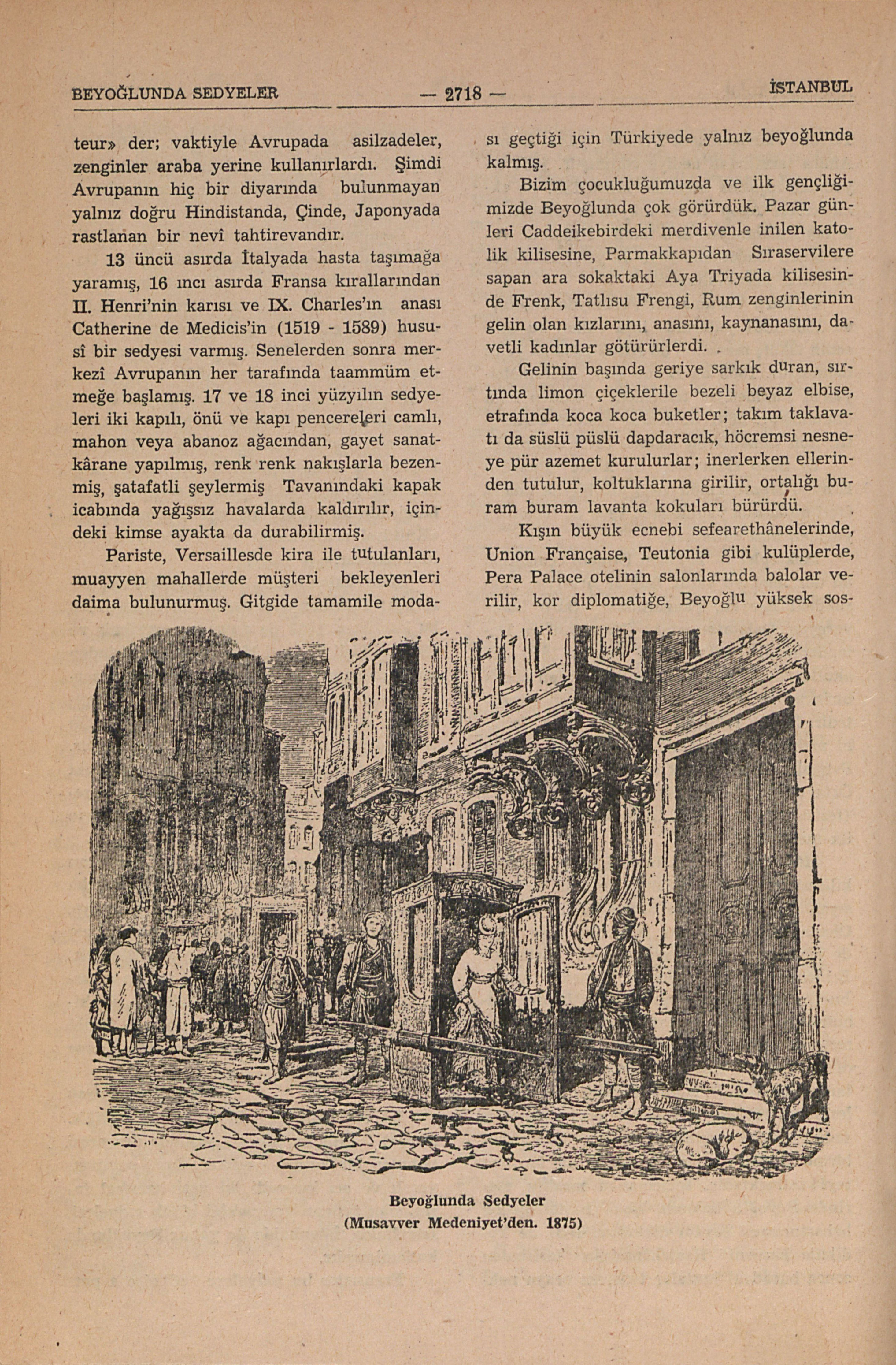 BEYOĞLUNDA SEDYELER (XIX. asırda)