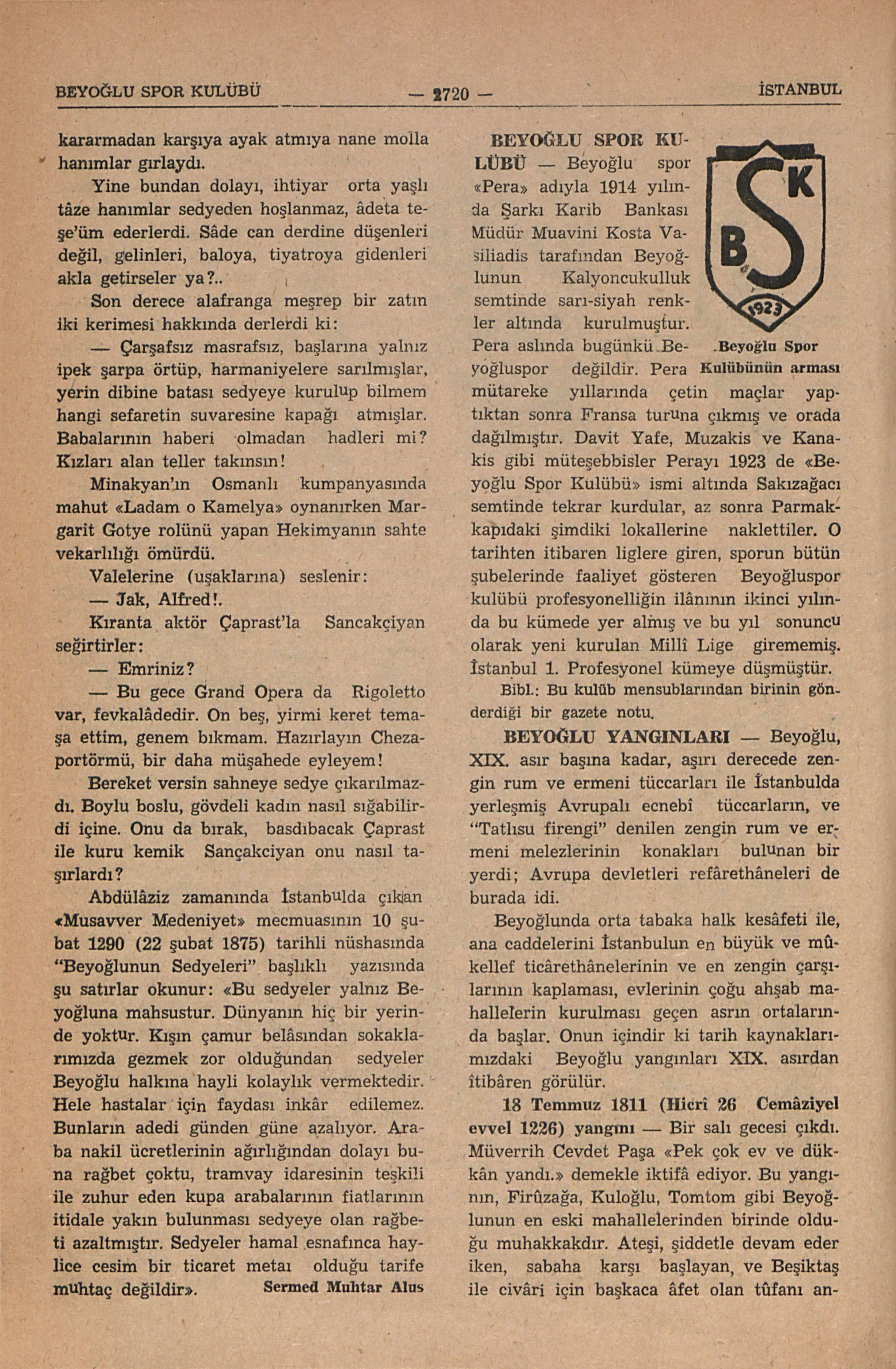 Beyoğlunda orta tabaka halk kesâfeti ana caddeleri İstanbulun en büyük ve mükellef ticârethânelerinin ve en zengin çarşılarının kaplaması, evlerinin çoğu ahşab mahallerin kurulması geçen asrın ortalarında başlar. Onun içindir ki tarih kaynaklarımızdaki Beyoğlu yangınları XIX. asırdan itibâren görülür.