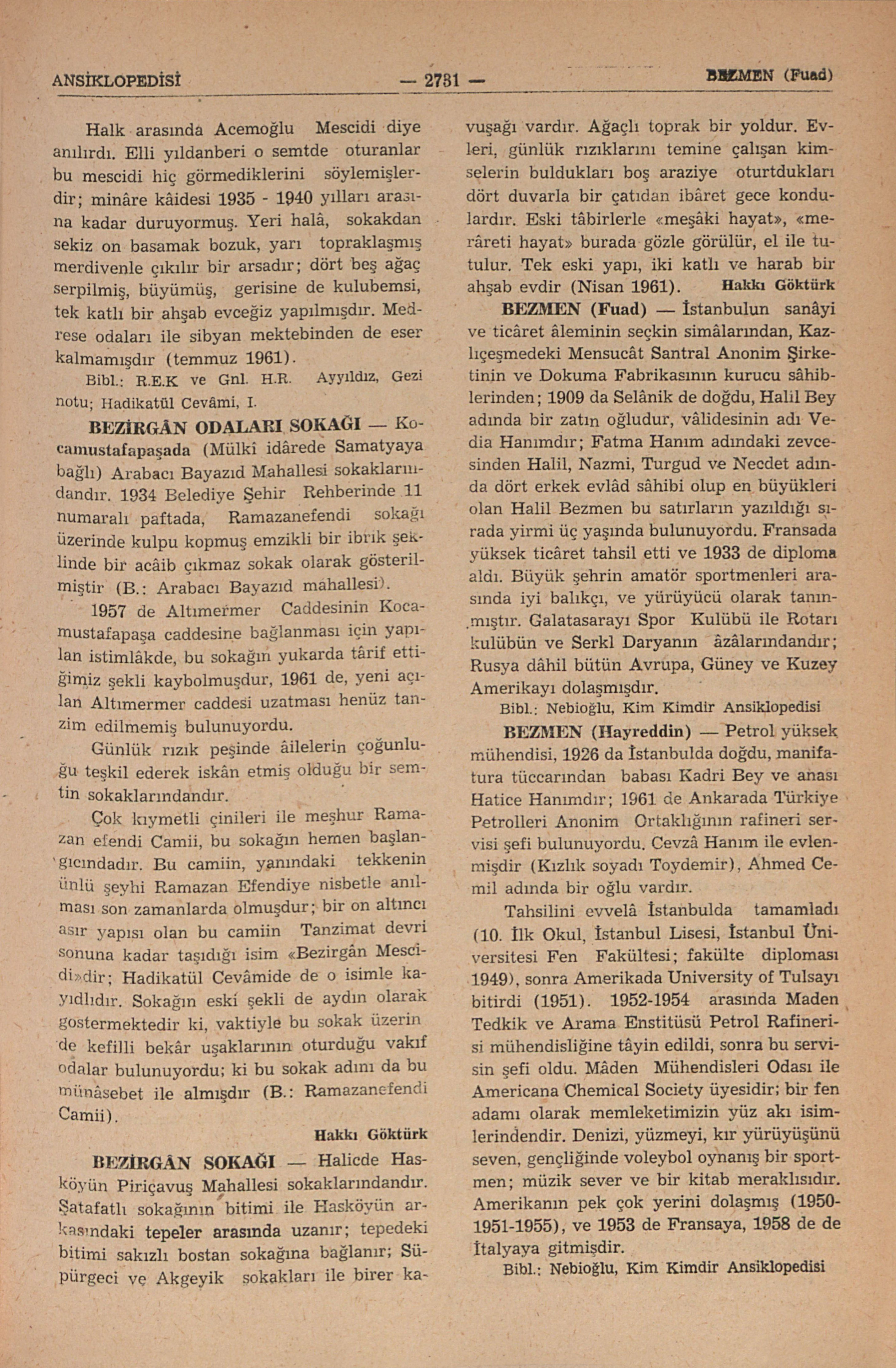 B.: Arabacı Bayazıd mahallesi; B.: Ramazanefendi Camii