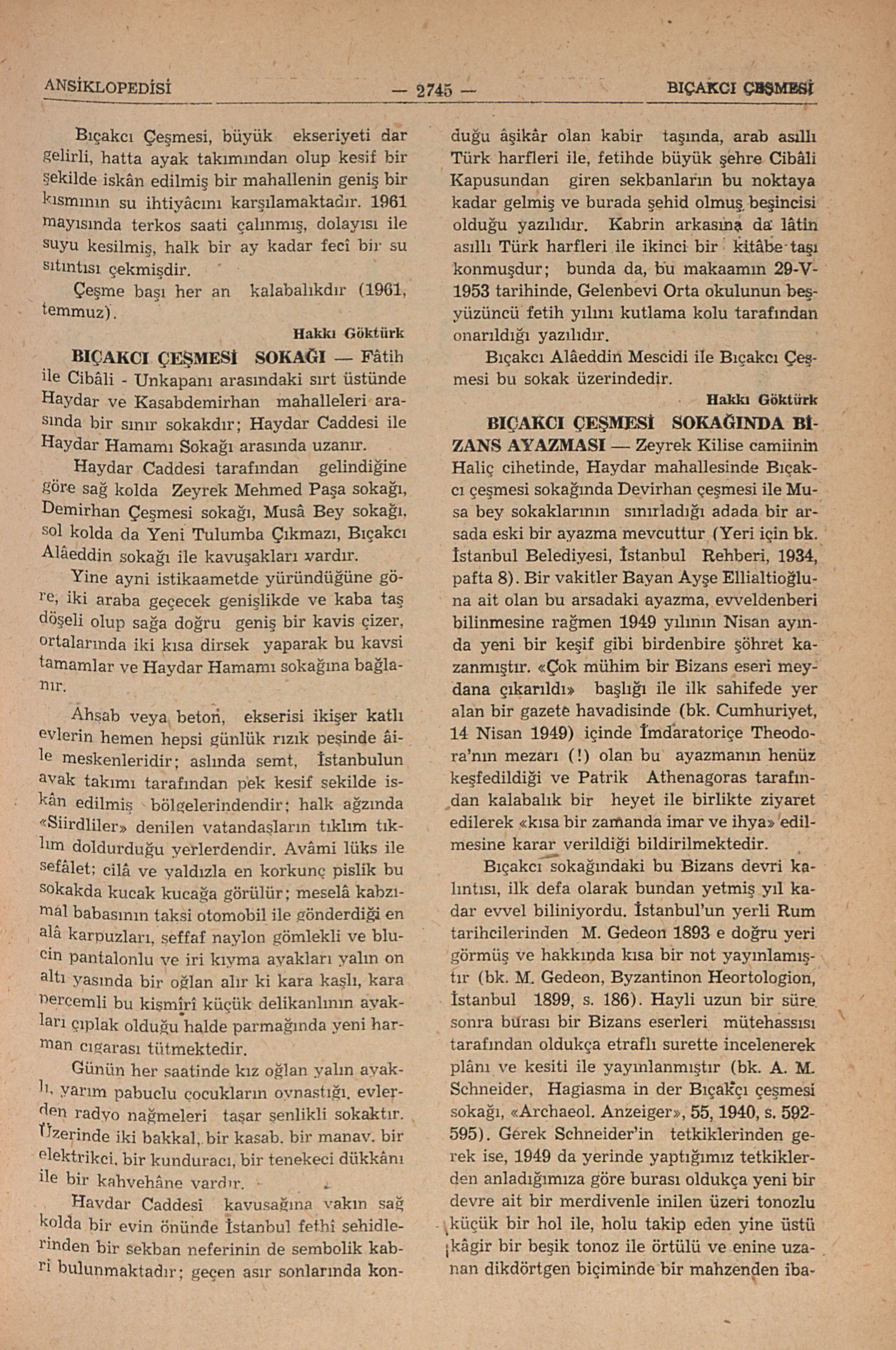 BIÇAKCI ÇEŞMESİ SOKAĞI