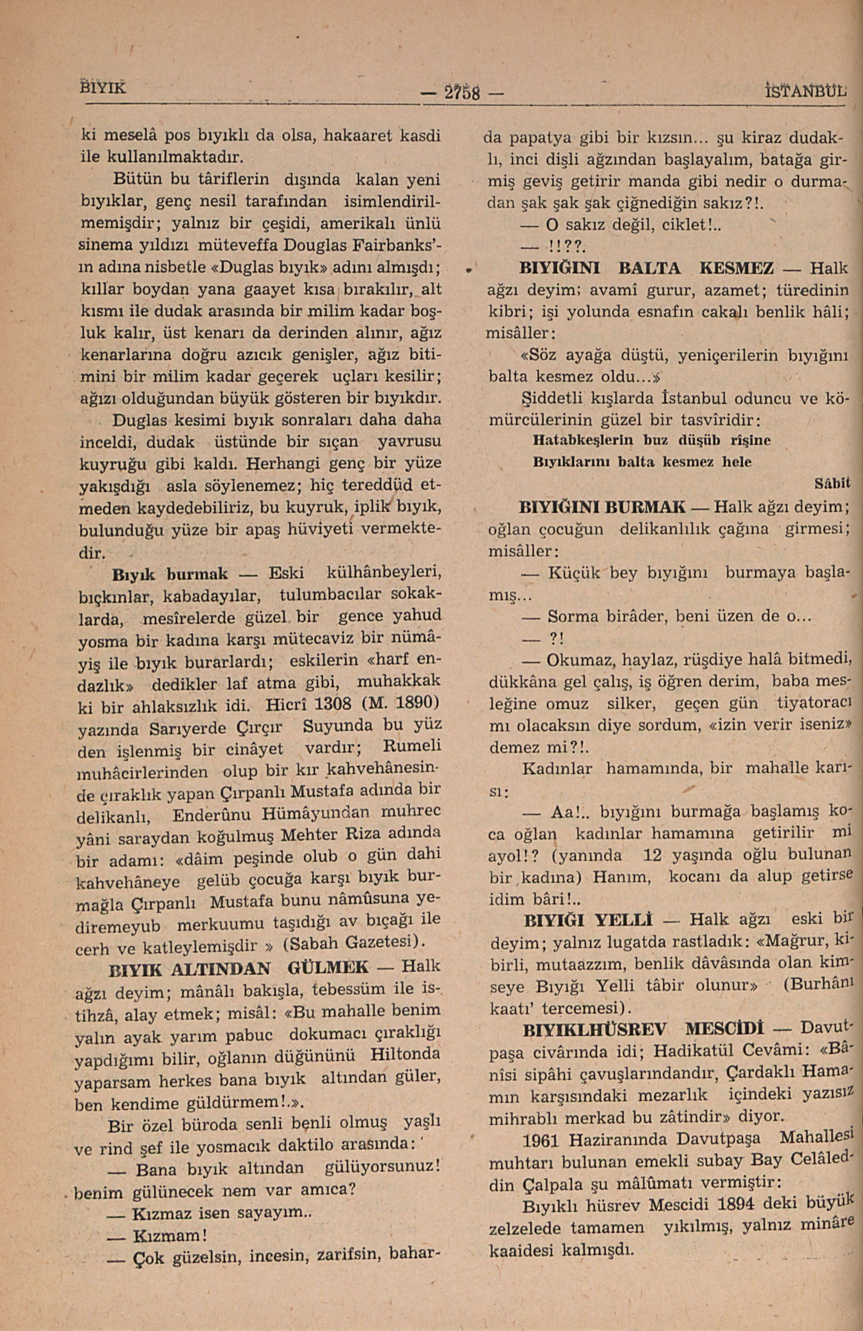 — Aa!..bıyığını burmağa başlamış koca oğlan kadınlar hamamına getirilir mi ayol!?. (yanında 12 yaşında oğlu bulunan bir kadına) Hanım, kocanı da alıp getirse idim bâri!..