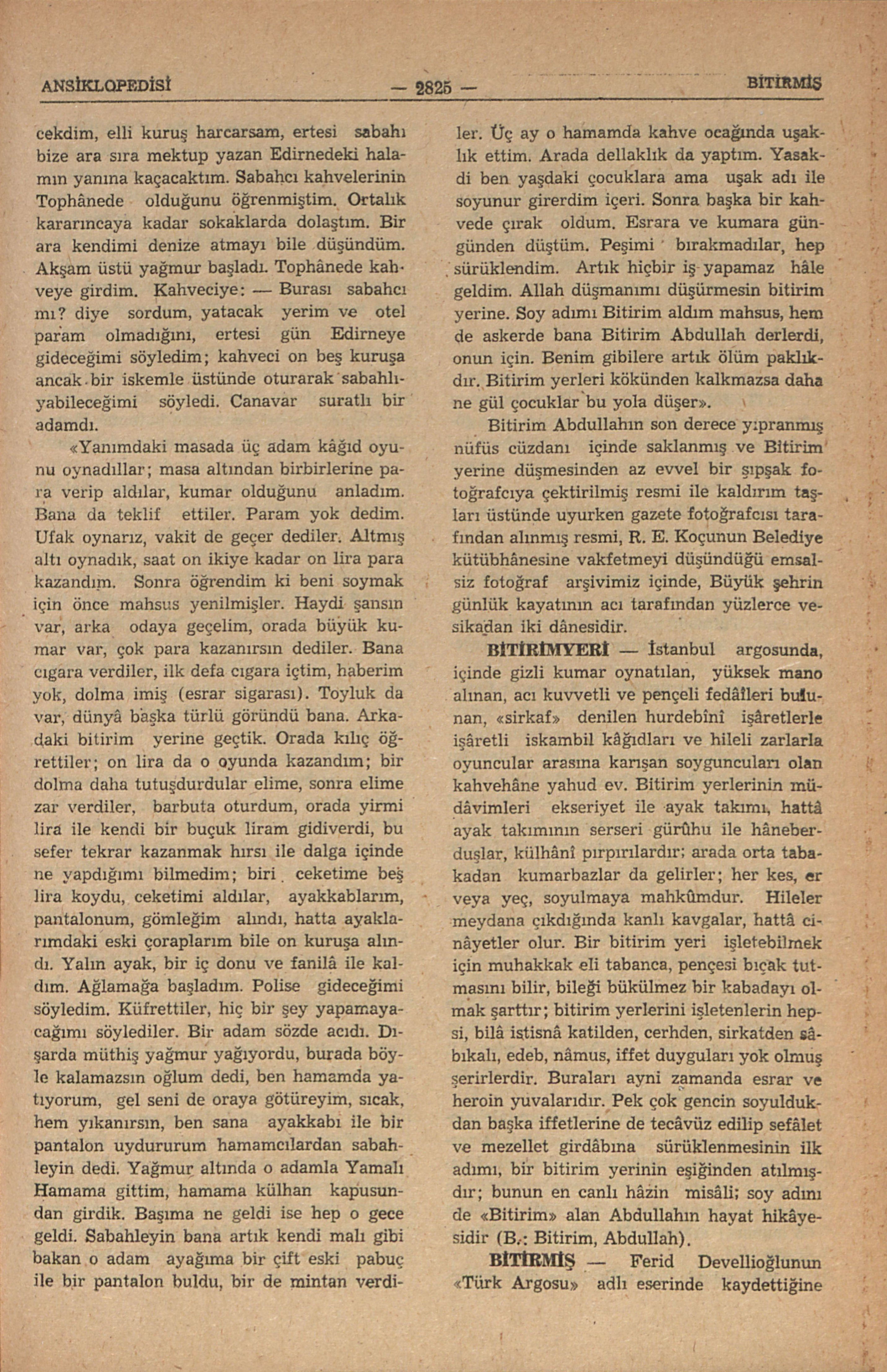 Ferid Develioğlunun “Türk Argosu” adlı eserinde kaydettiğine göre İstanbulun külhâniler argosunda “tecrübeli, bilgili, açıkgöz” kimse; müellif şu misâli veriyor: “Herifi görme, bitirmiş..”