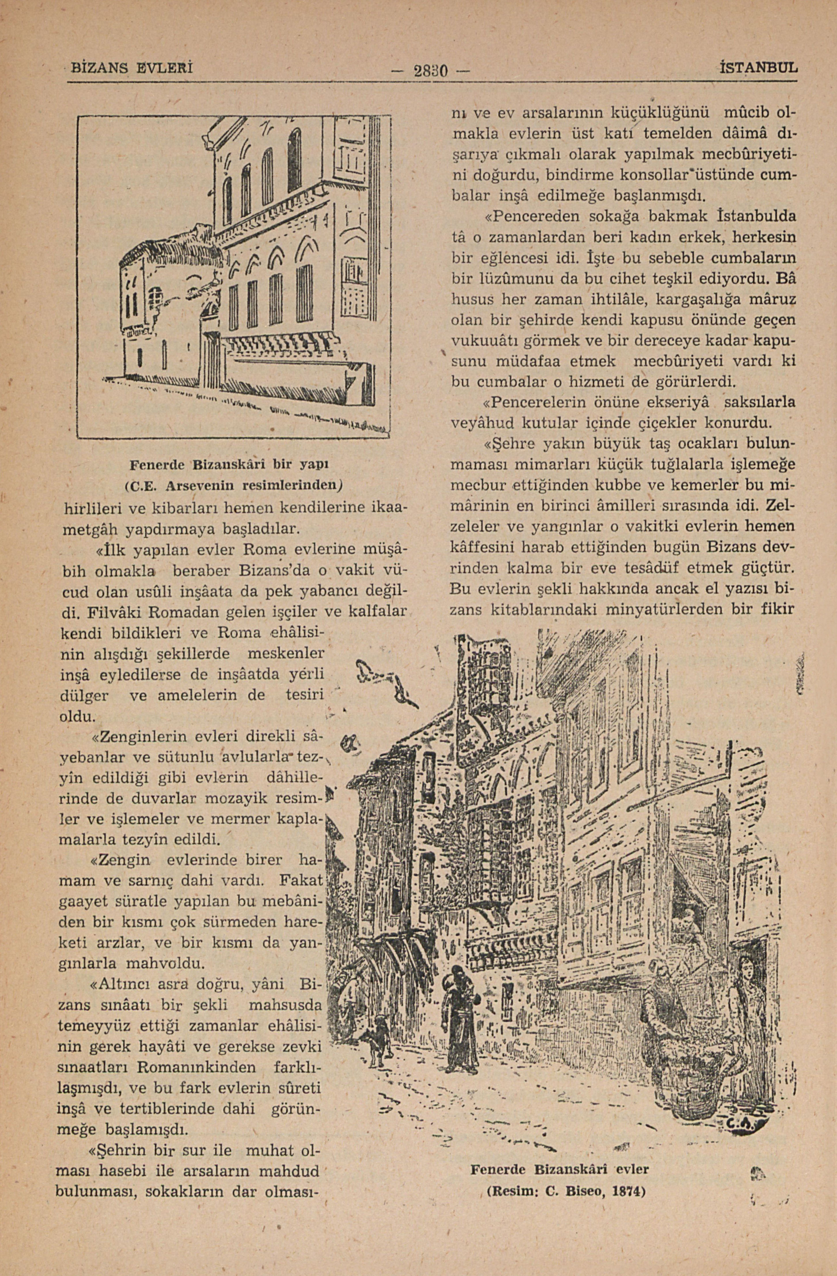 “İstanbulda dokuzuncu asırdan itibâren yapılan Bizans evlerinin eşkâli mümeyyizesi şunlardır.