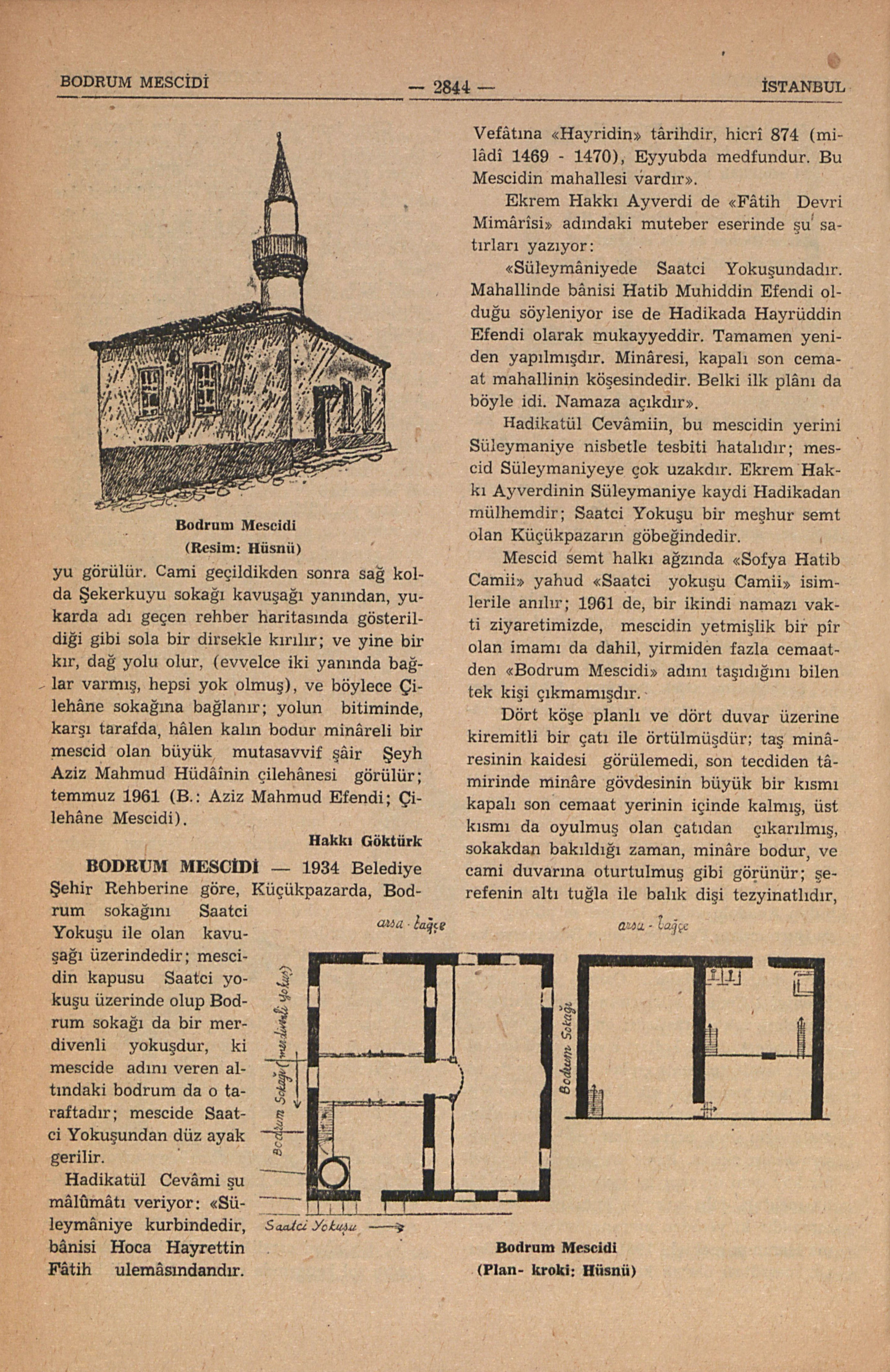 Bibl.: Hadikatül Cevâmi, I; E. H. Ayverdi, Fâtih Devri Mimârisi; R.E.K. Gezi notu.