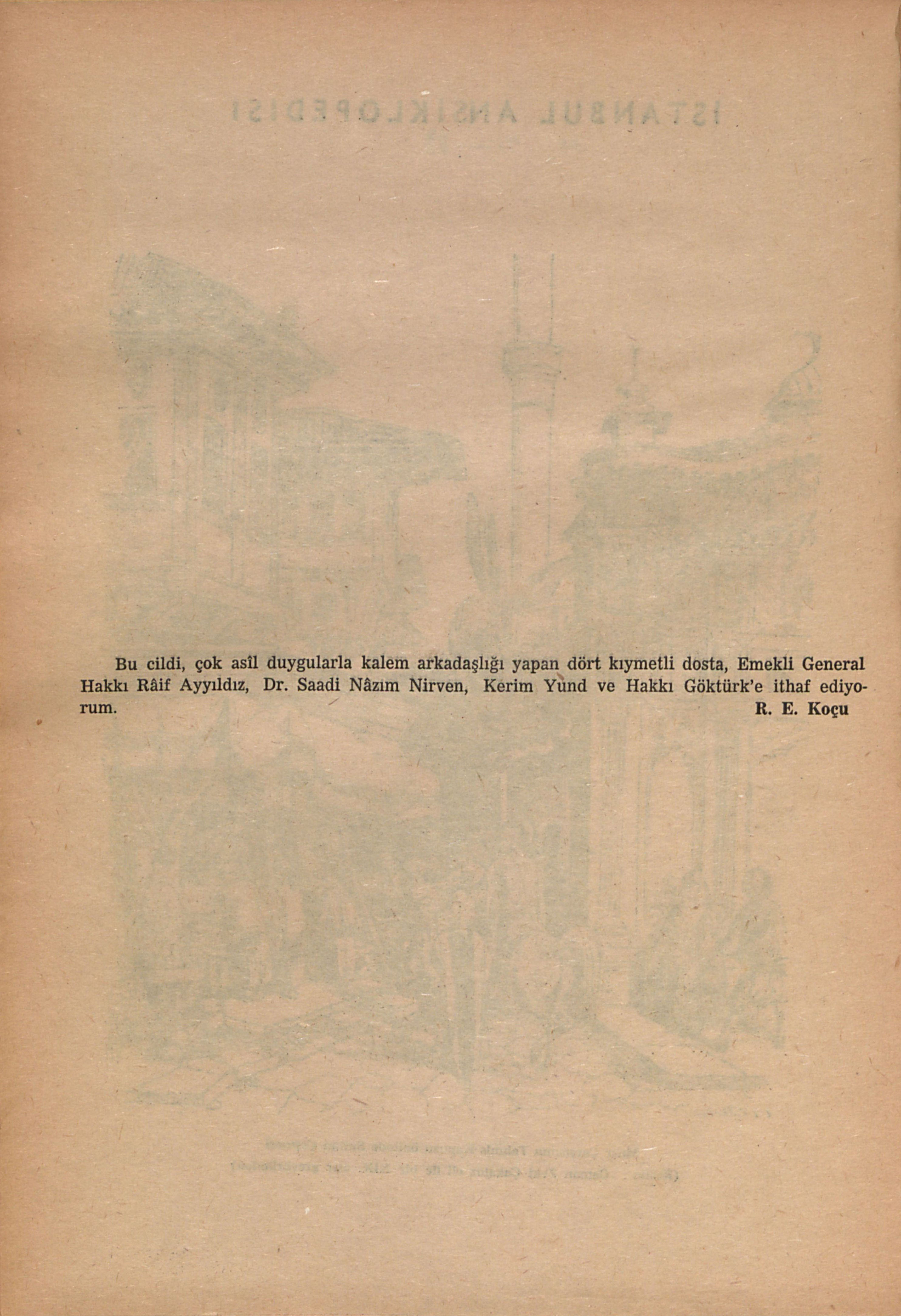 Bu cildi, çok asîl duygularla kalem arkadaşlığı yapan dört kıymetli dosta, Emekli General Hakkı Râif Ayyıldız, Dr. Saâdi Nâzım Nirven, Kerim Yund ve Hakkı Göktürk’e ithaf ediyorum.