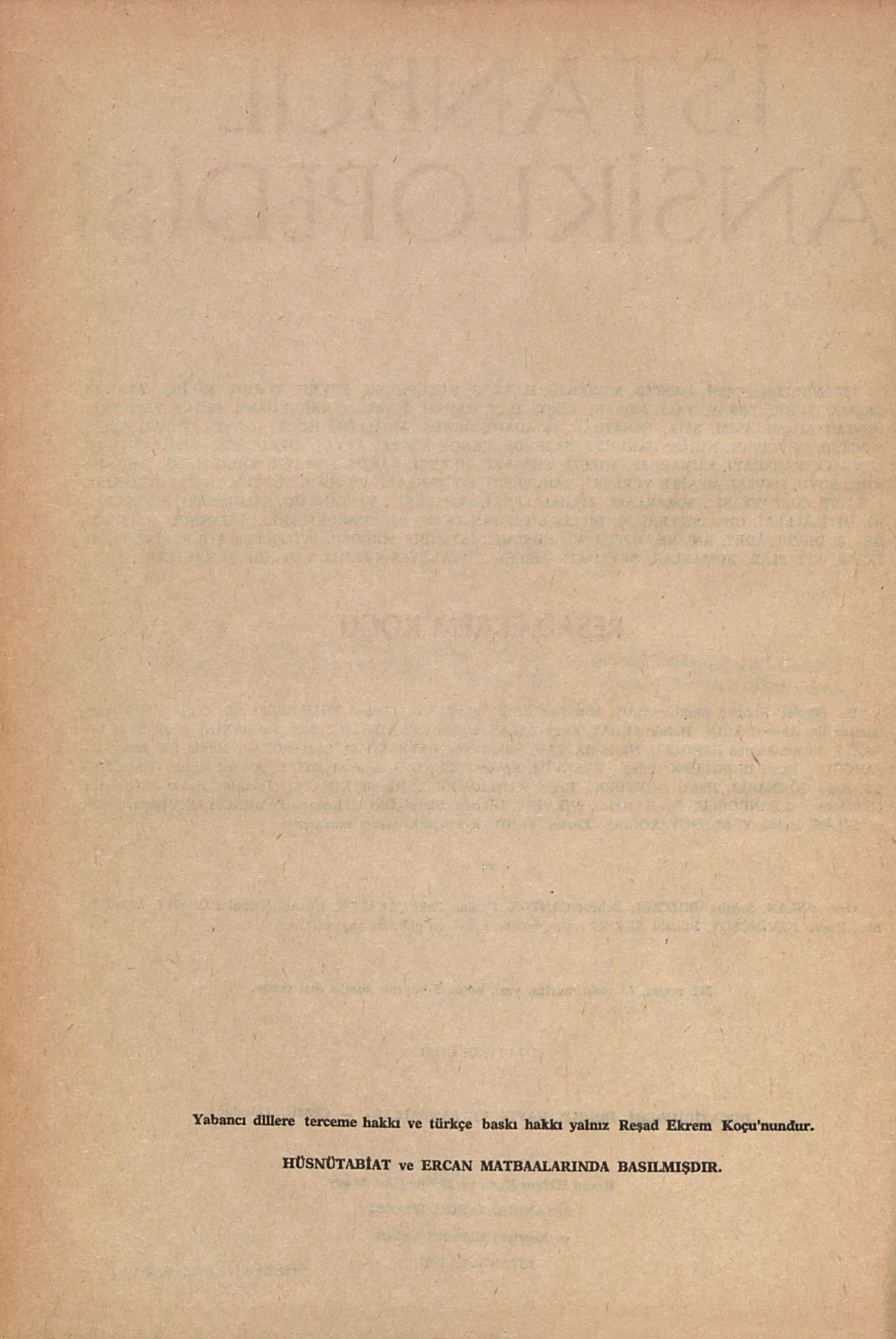 Yabancı dillere terceme hakkı ve türkçe baskı hakkı yalnız Reşad Ekrem Koçu’nundur.