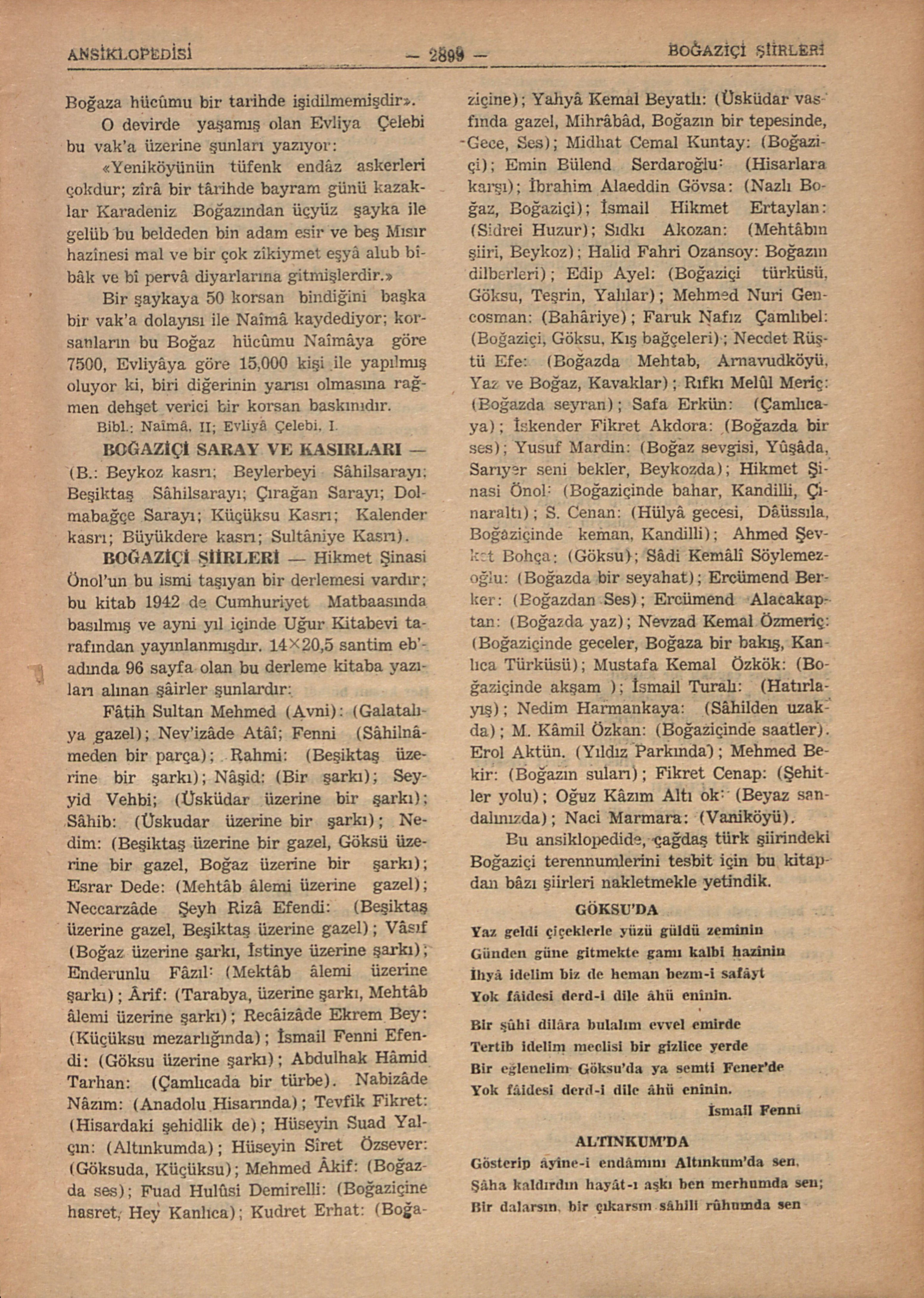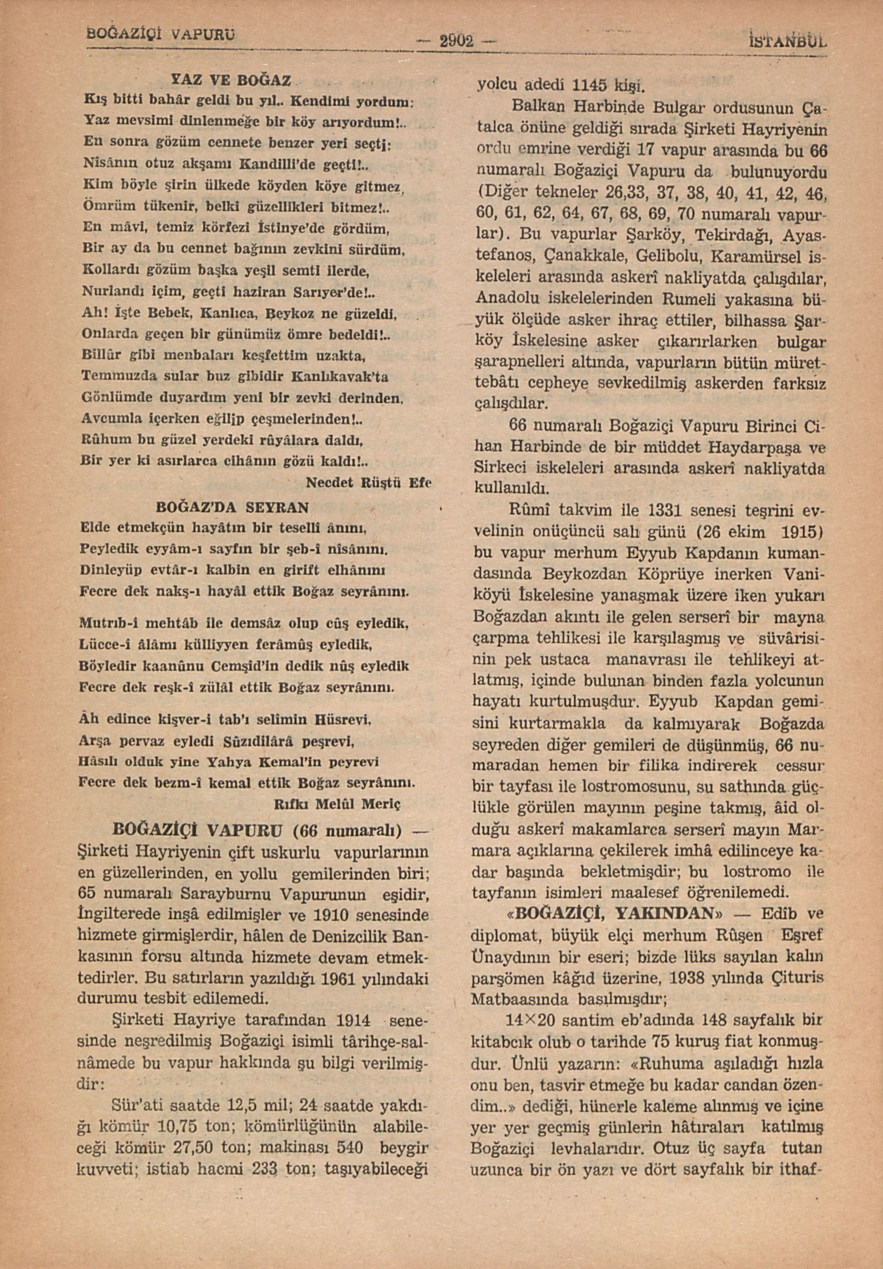 Bu ansiklopedide, çağdaş türk şiirindeki Boğaziçi terennumlerini tesbit için bu kitapdan bâzı şiirleri nakletmekle yetindik.