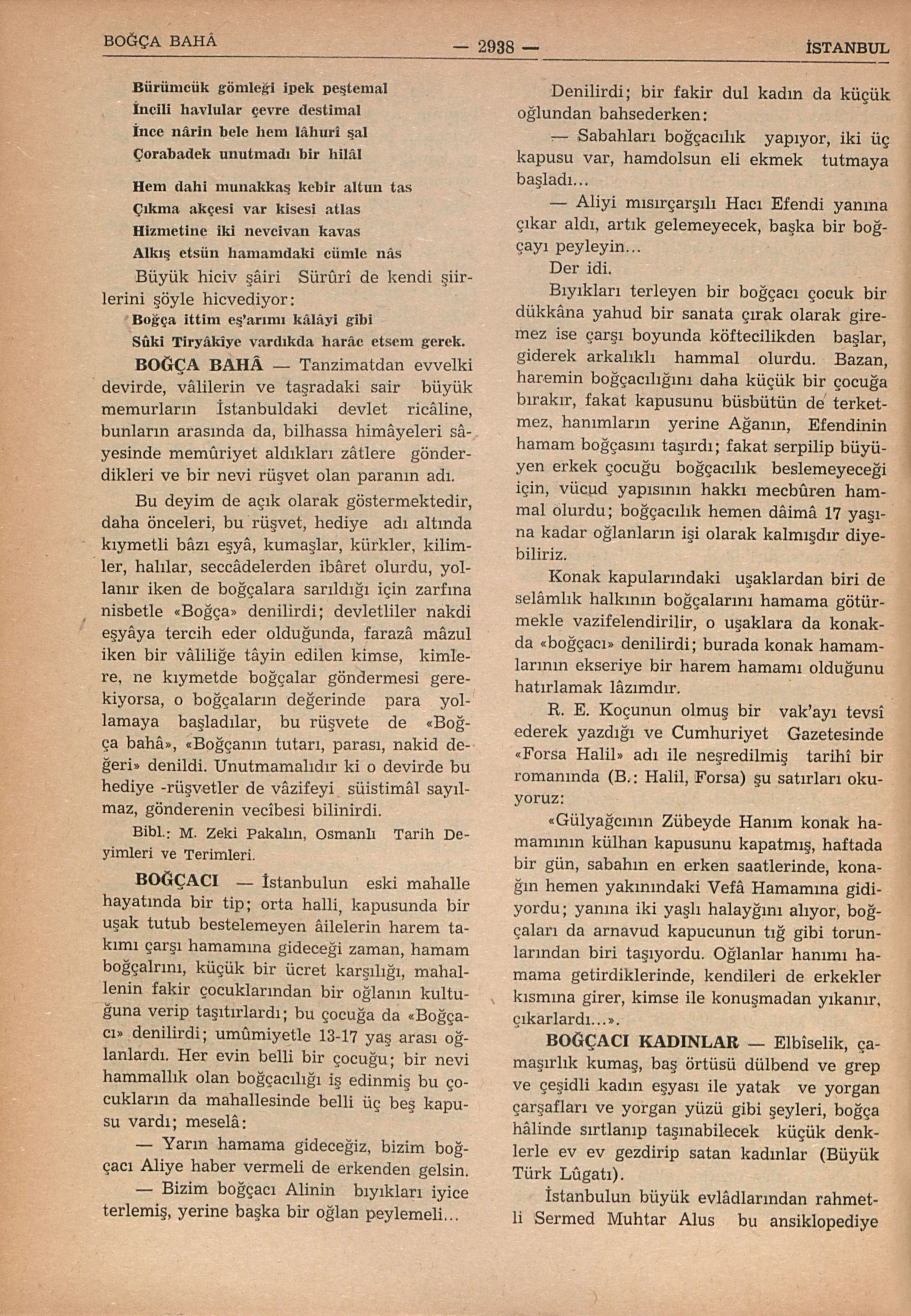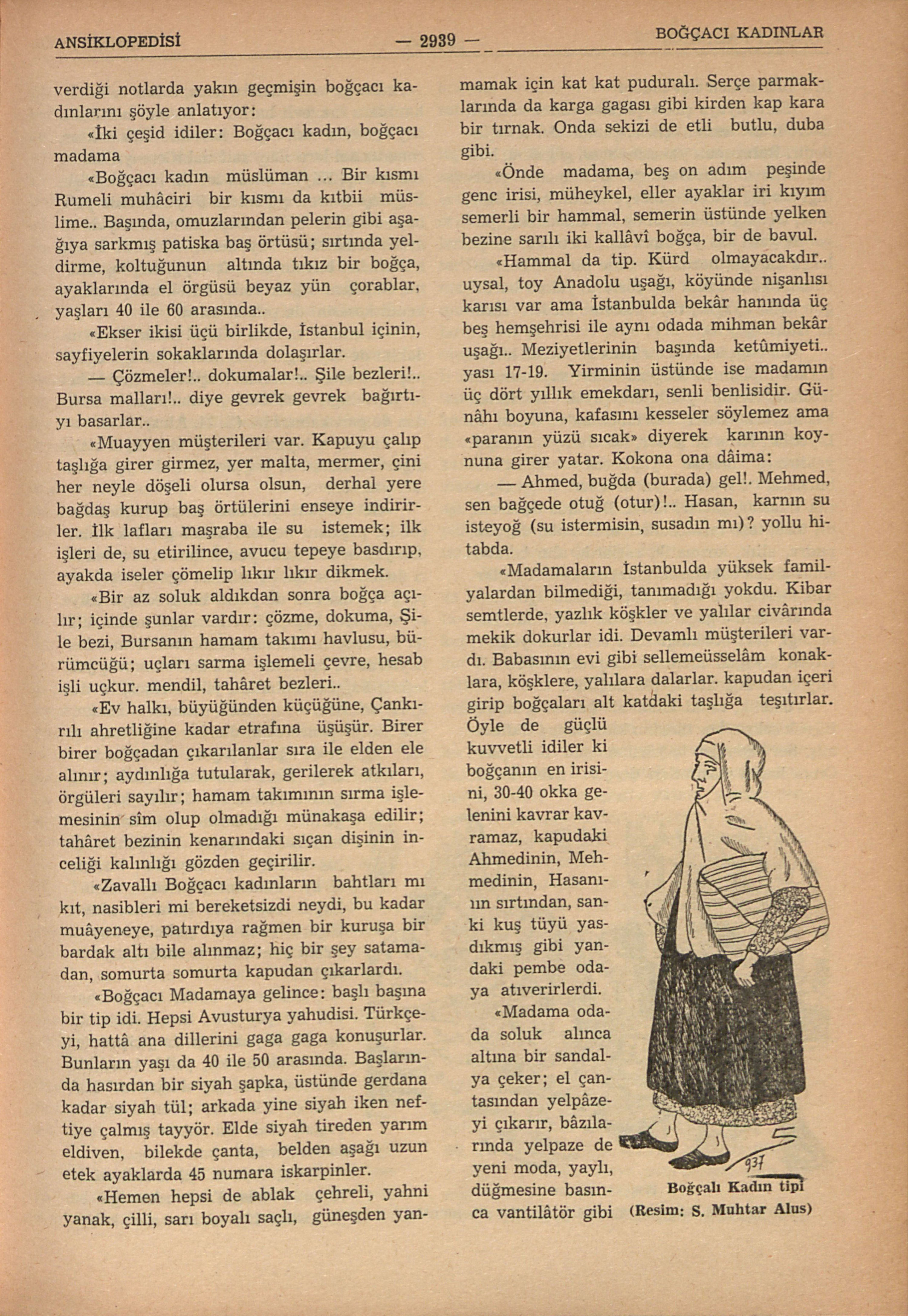 İstanbulun büyük evlâdlarından rahmetli Sermed Muhtar Alus bu ansiklopediye verdiği notlarda yakın geçmişin boğçacı kadınlarını şöyle anlatıyor:
