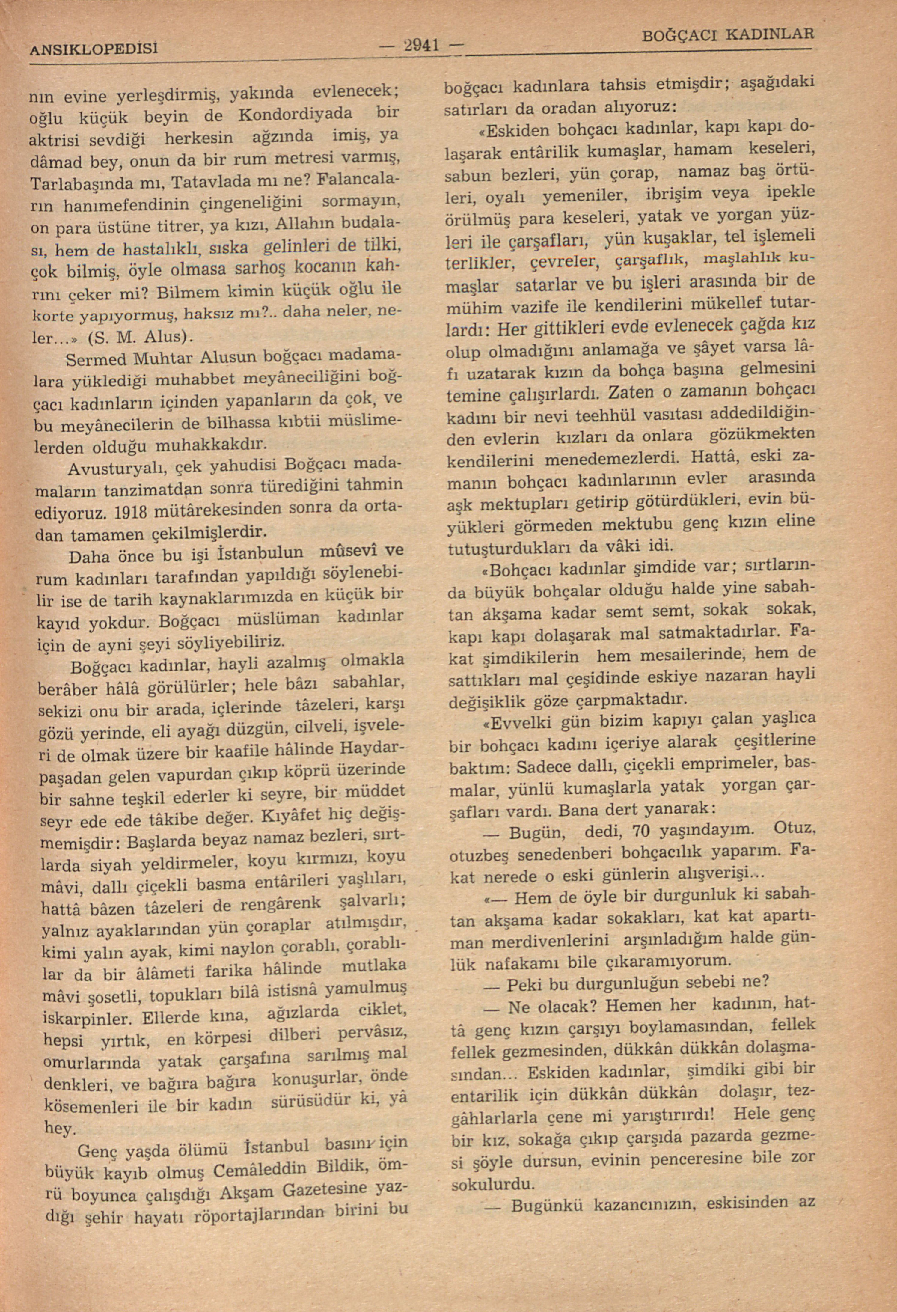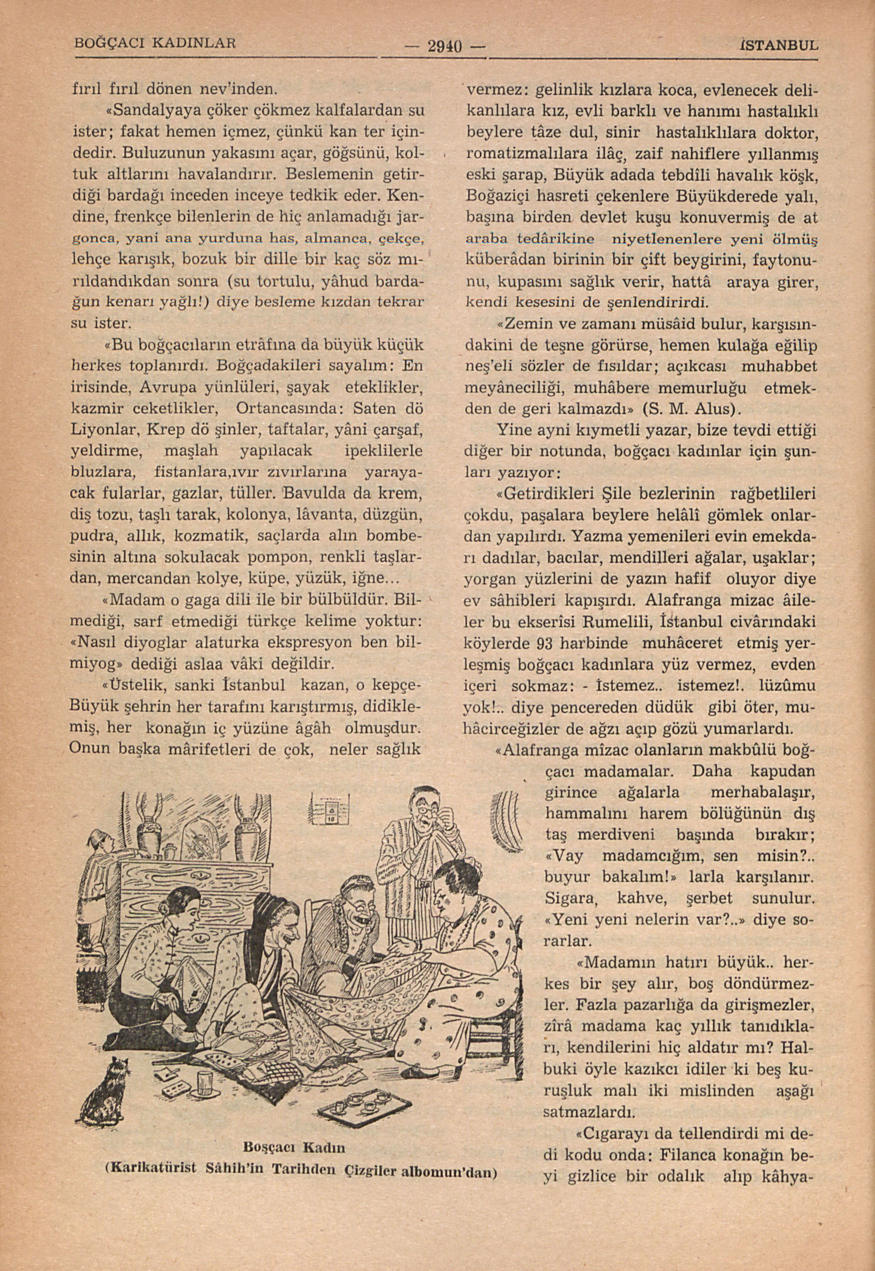 “Bohçacı kadınlar şimdide var; sırtlarında büyük bohçalar olduğu halde yine sabahtan akşama kadar semt semt, sokak sokak, kapı kapı dolaşarak mal satmaktadırlar. Fakat şimdikilerin hem mesailerinde, hem de sattıkları mal çeşidinde eskiye nazaran hayli değişiklik göze çarpmaktadır.
