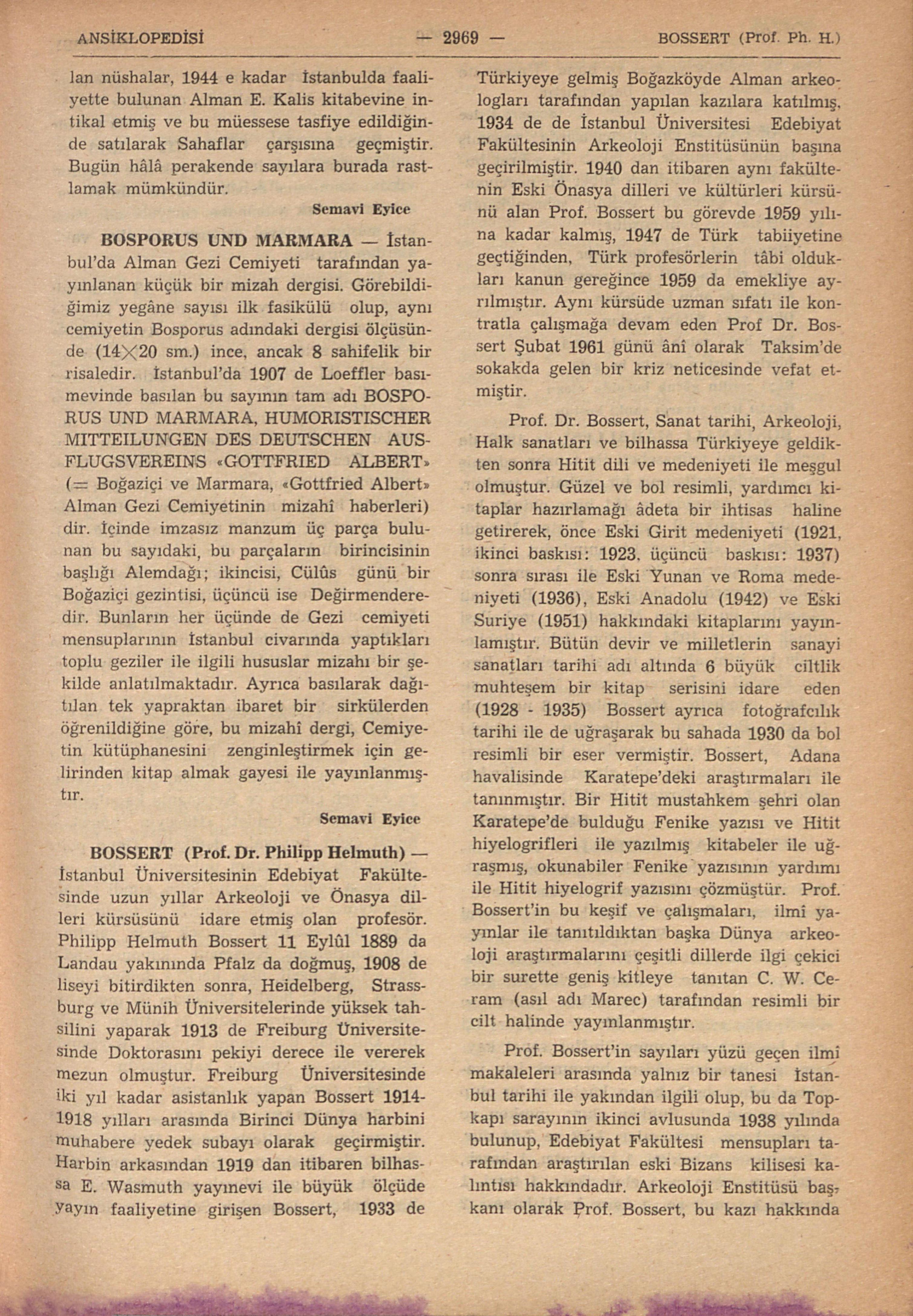 Tam adı: BOSPORUS, ORGAN DES DEUTSCHEN AUSFUGS - VEREINS G. ALBERT (= Boğaziçi, G. Albert Alman Gezi Cemiyeti Organı) olan yeni seri 1906 da intişara başlıyarak, tesbit ...