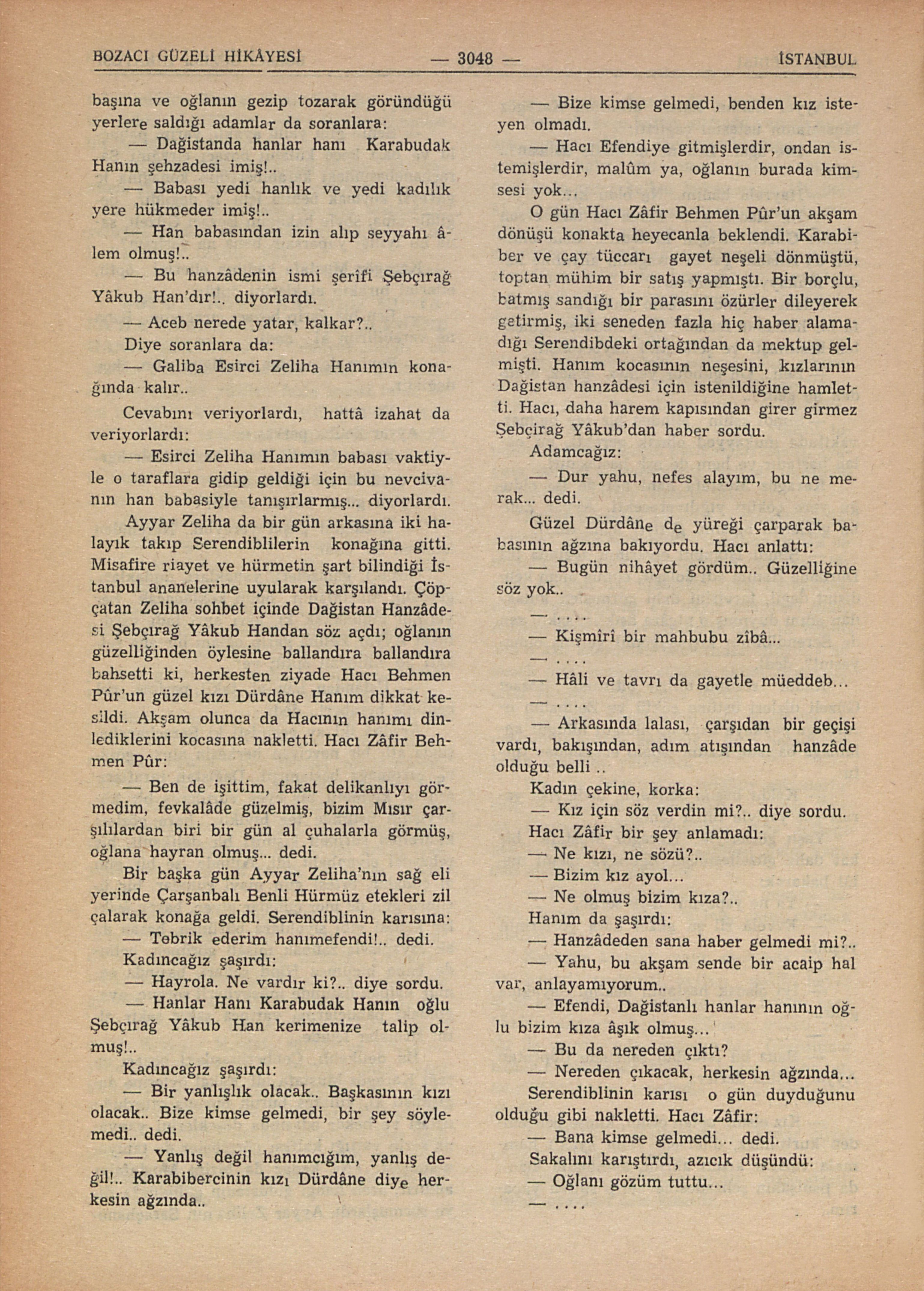 Ayyar Zeliha Serendiblilerin konağına tam onbeş gün sonra geldi, o gelinceye kadar Dağistanlı civan da Saraçhanebaşında görünmemişti.