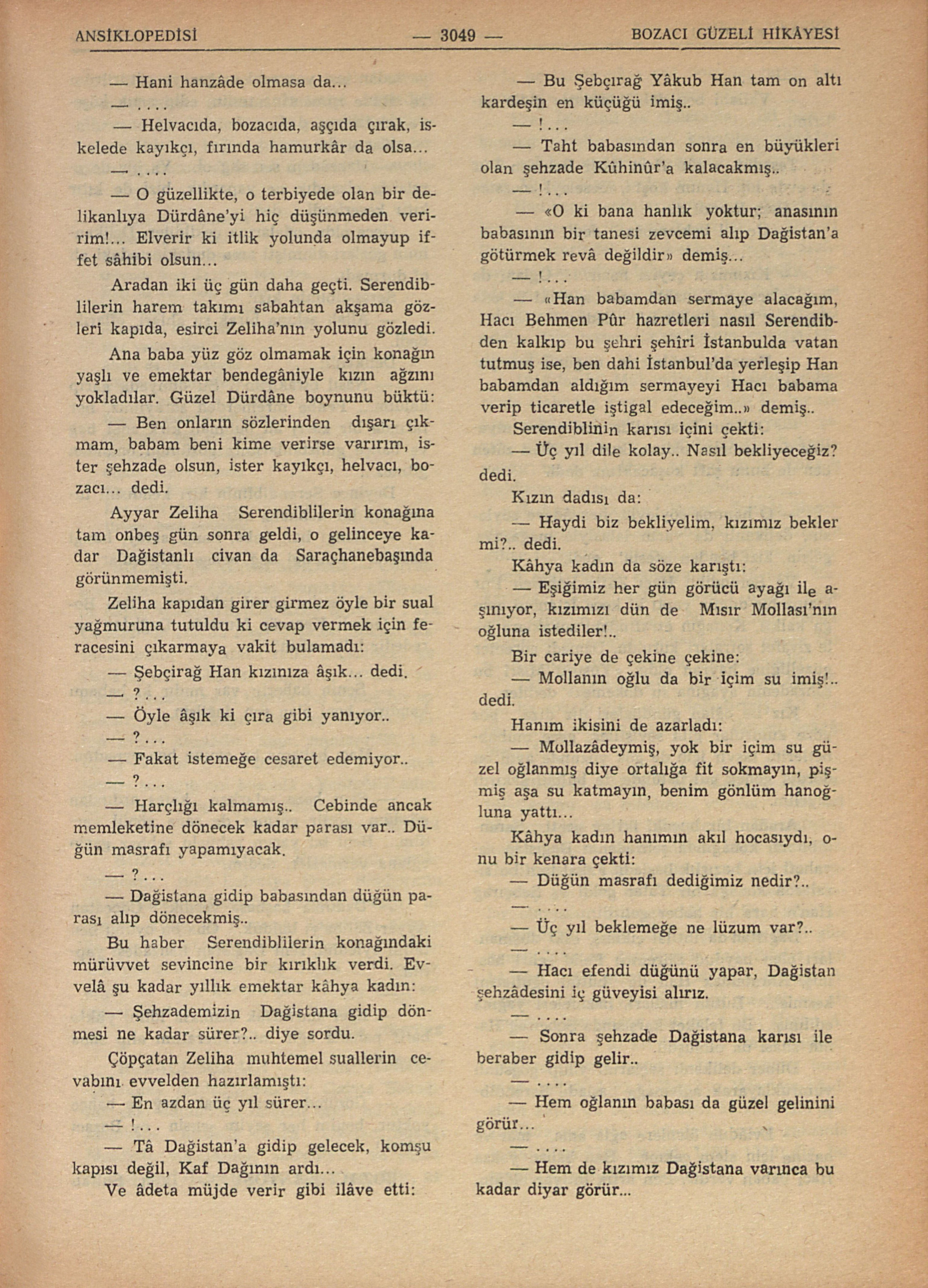 — Yanlış değil hanımcığım, yanlış değil!.. Karabibercinin kızı Dürdâne diye herkesin ağzında..