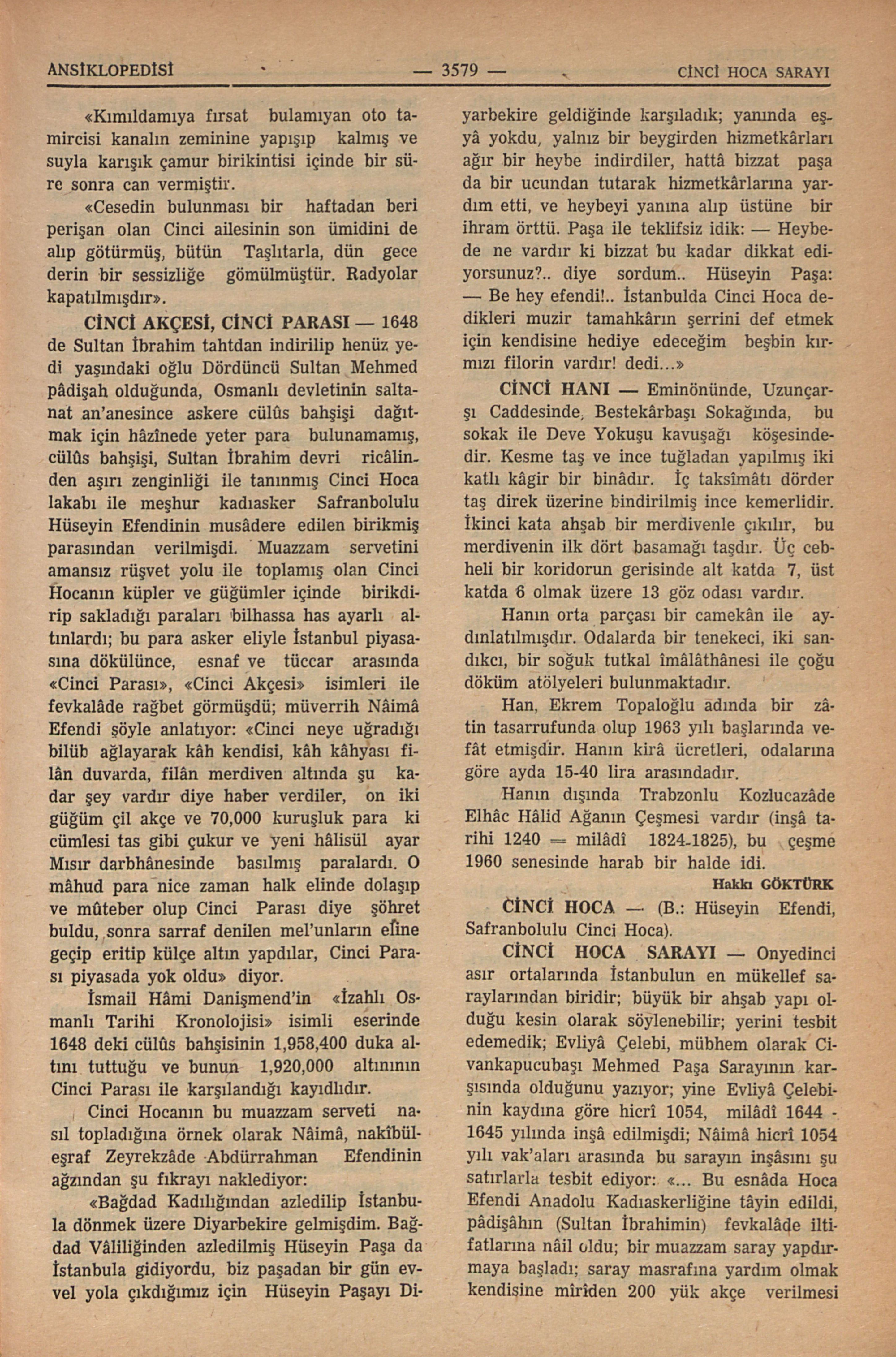B.: Hüseyin Efendi, Saframbolulu Cinci Hoca