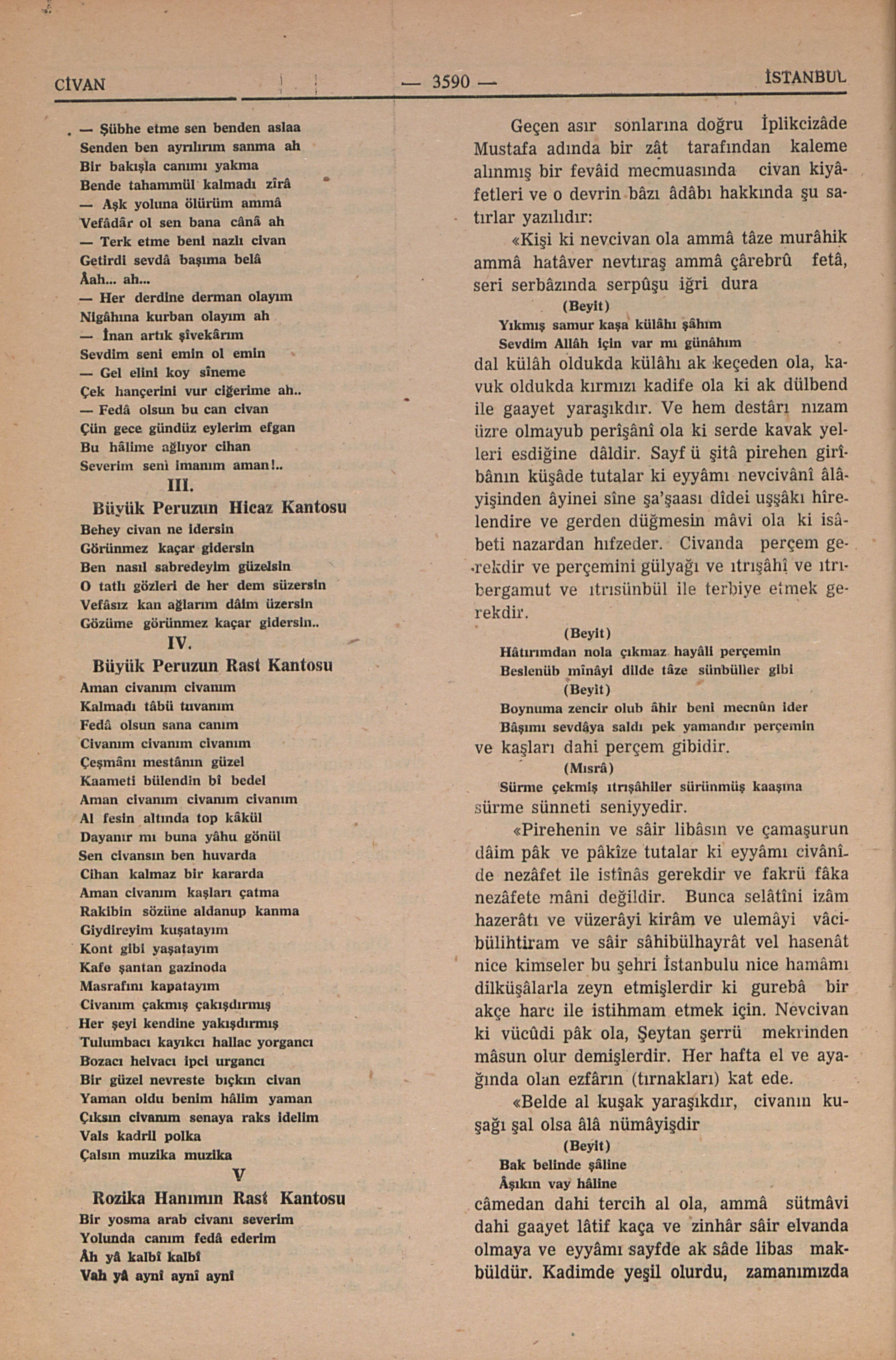 “Şehri İstanbul kânı melâik ve kânı şeyâtindir. Ol civan ki fatindir, bu makaalemize kulak tuta. Hem hüsnü ânın ve eyyâmı nevcivânînin şan ve âlâyişi yerin bula hem dahi râhi mustakimde nâzik ayağın incitmeye ve bizi dahi hayır dûa ile yâd ide”.