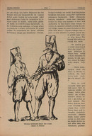 “Bunlar başlarının üstüne çaprasvârî bir sarık sarılı külâh takarlar, arkalarına kırmızı salta, bacaklarına mâvi salvar, ayaklarına da kırmızı yemeni giyerlerdi. Bellerine mâdenî bir kemer bağlarlardı”.