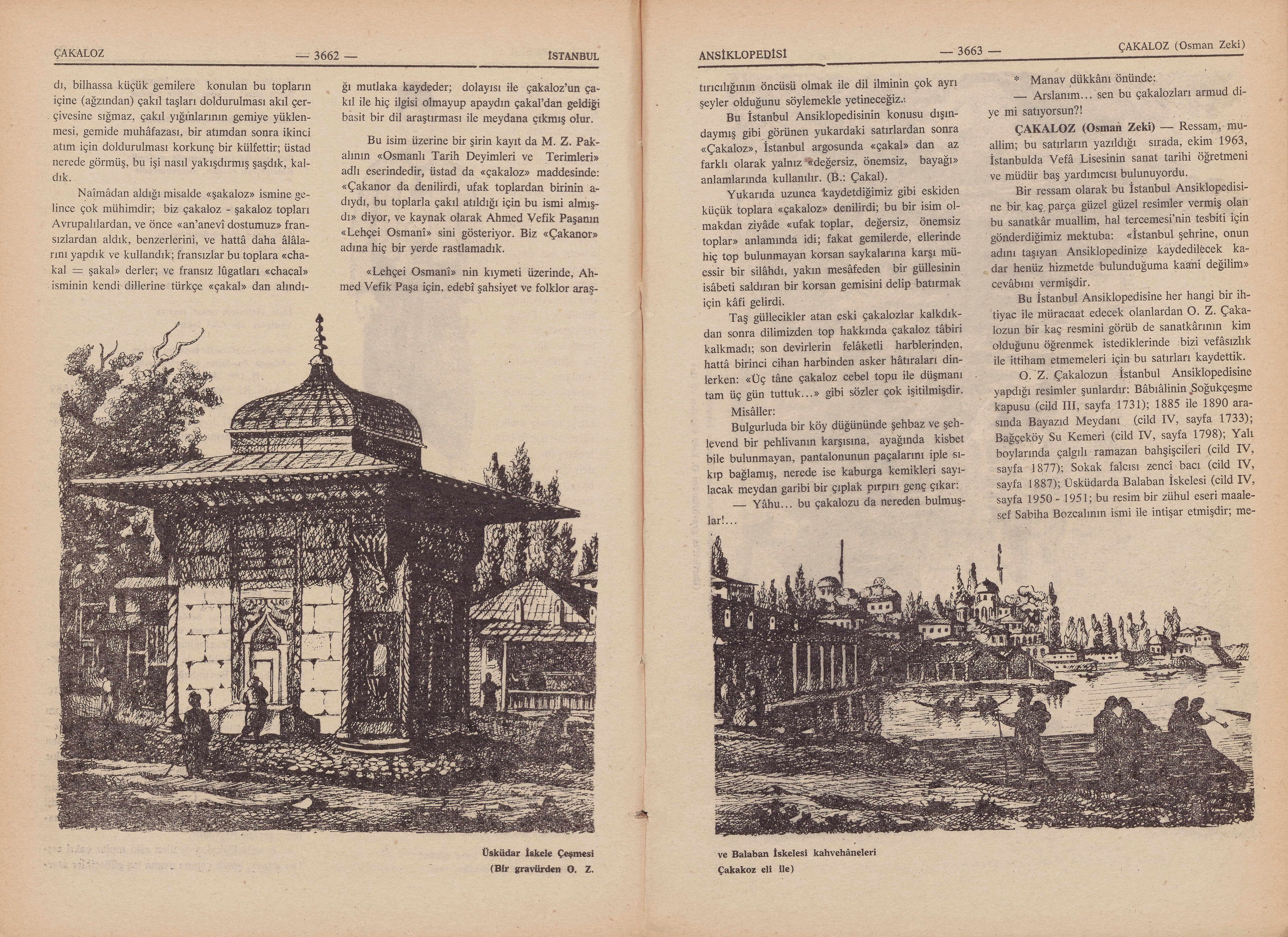 Bu İstanbul Ansiklopedisine her hangi bir ihtiyac ile müracaat edecek olanlarda O: Z. Çakalozun bir kaç resmini görüb de sanatkârının kim olduğunu öğrenmek istediklerinde bizi vefâsızlık ile ittiham etmemeleri için bu satırları kaydettik.