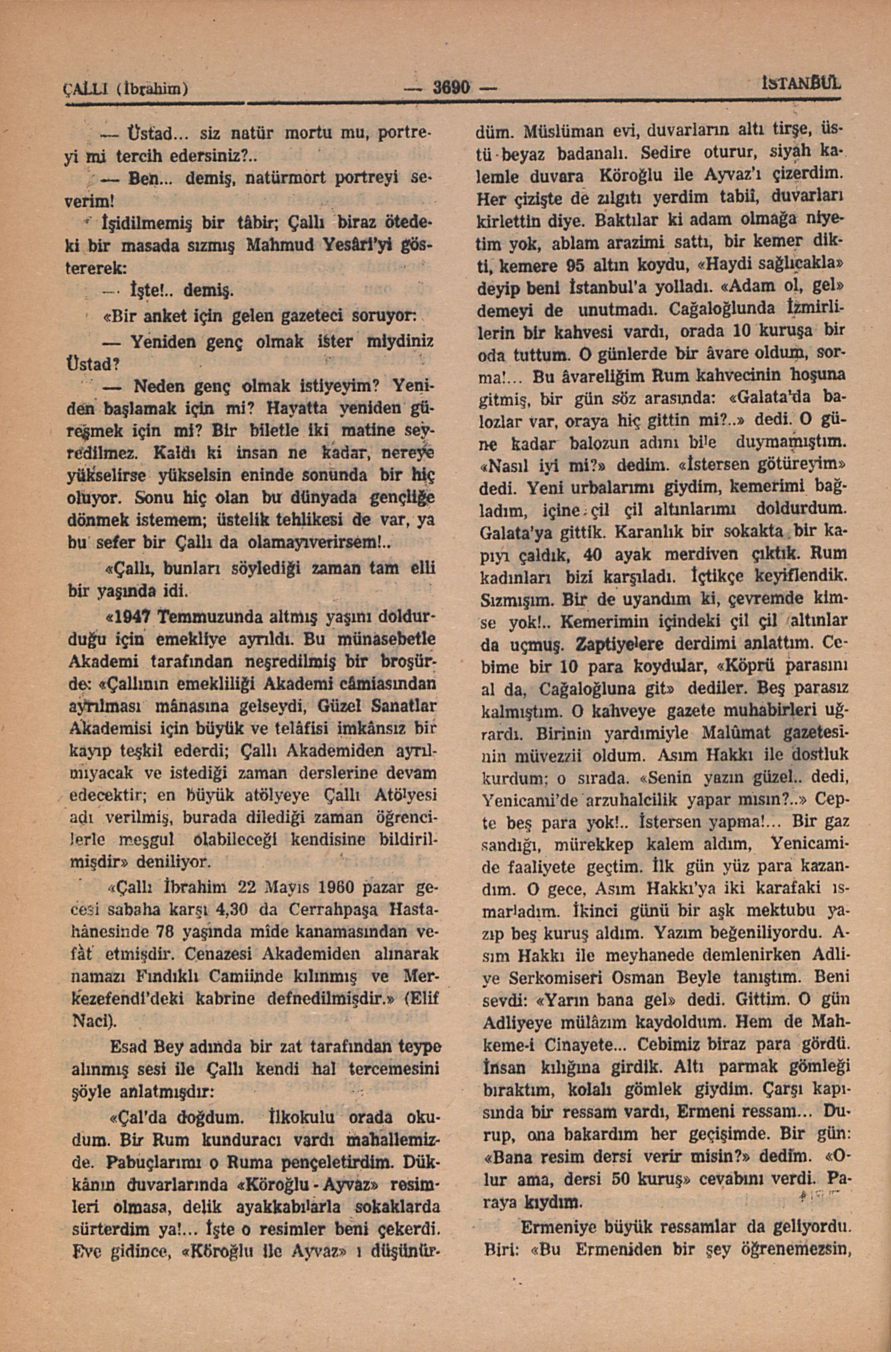 “Çallı, bunları söylediği zaman tam elli bir yaşında idi.