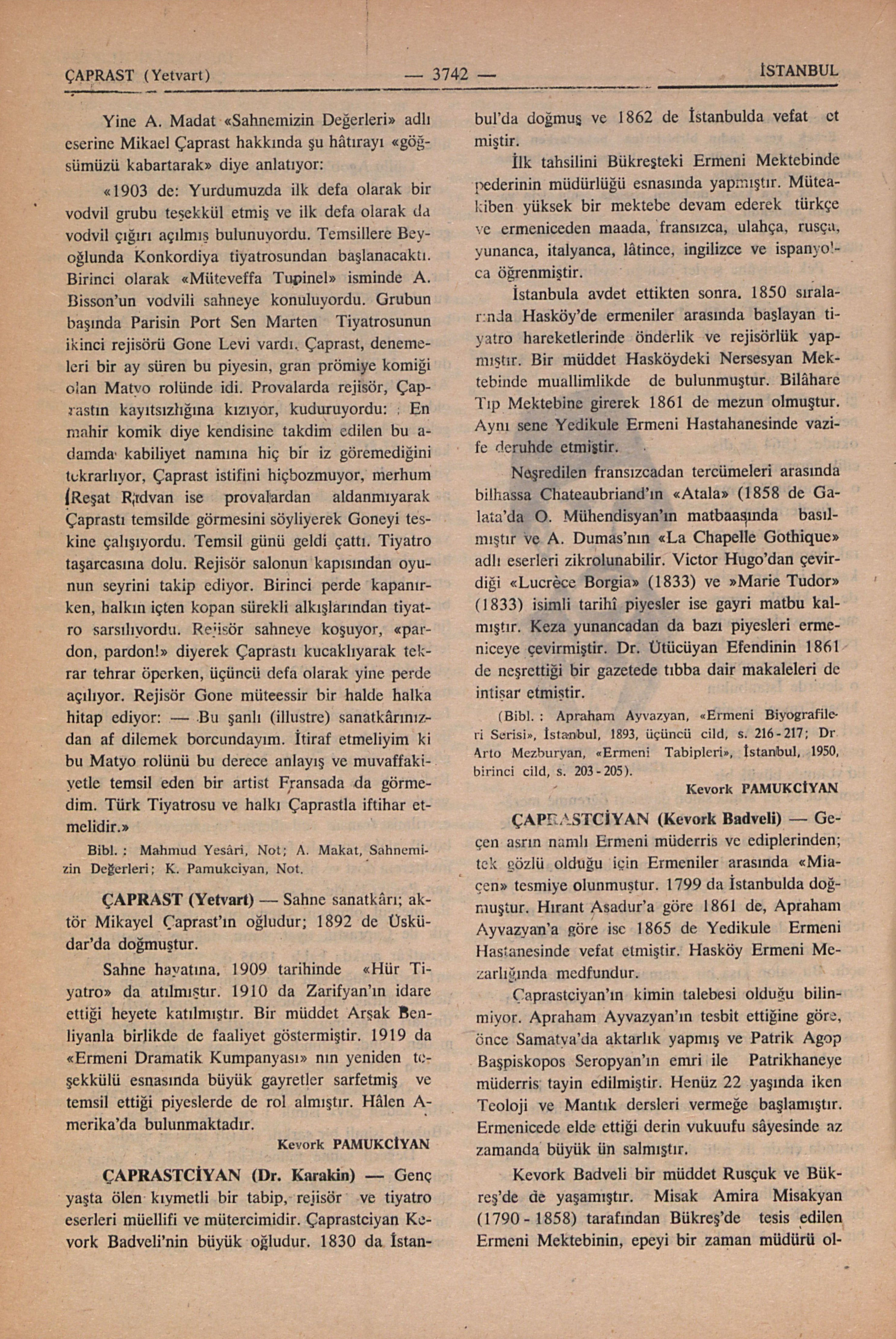Bibl. : Mahmud Yesâri, Not; A. Makat, Sahnemizin Değerleri; K. Pamukciyan, Not.