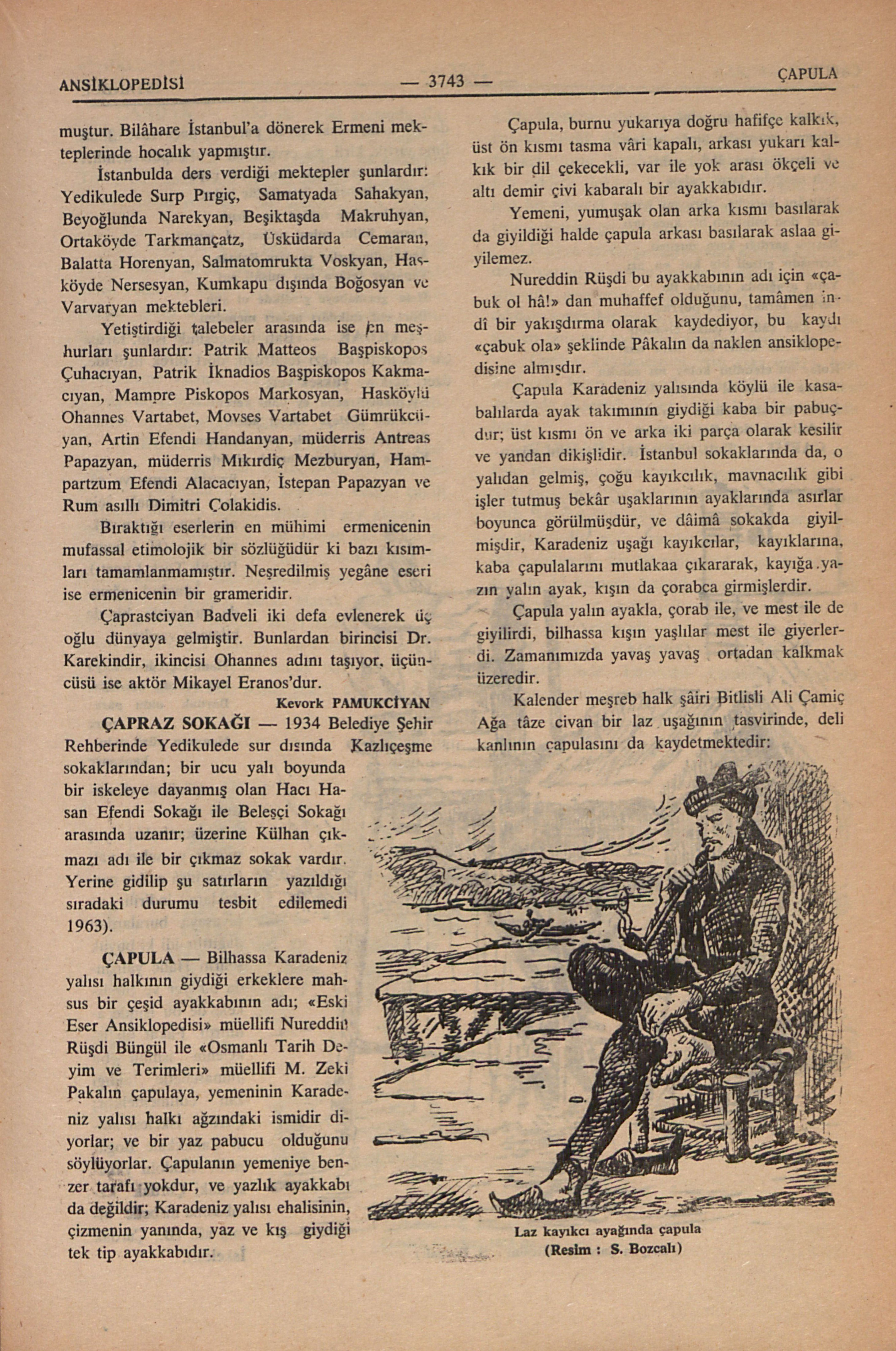Çapula Karadeniz yalısında köylü ile kasabalılarda ayak takımının giydiği kaba bir pabuçdur; üst kısmı ön ve arka iki parça olarak kesilir ve yandan dikişlidir. İstanbul sokaklarında da, o yalıdan gelmiş, çoğu kayıkcılık, mavnacılık gibi işler tutmuş bekâr uşaklarını ayaklarında asırlar boyunca görülmüşdür, ve dâimâ sokakda giyilmi...